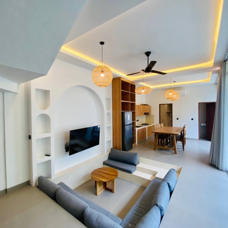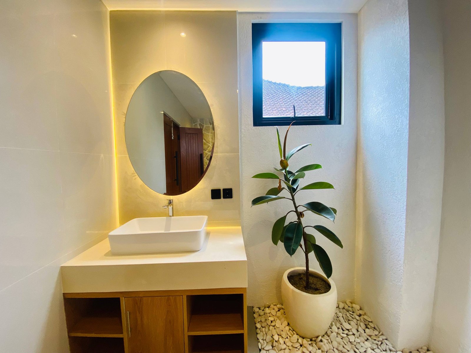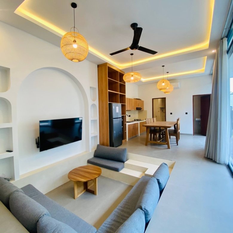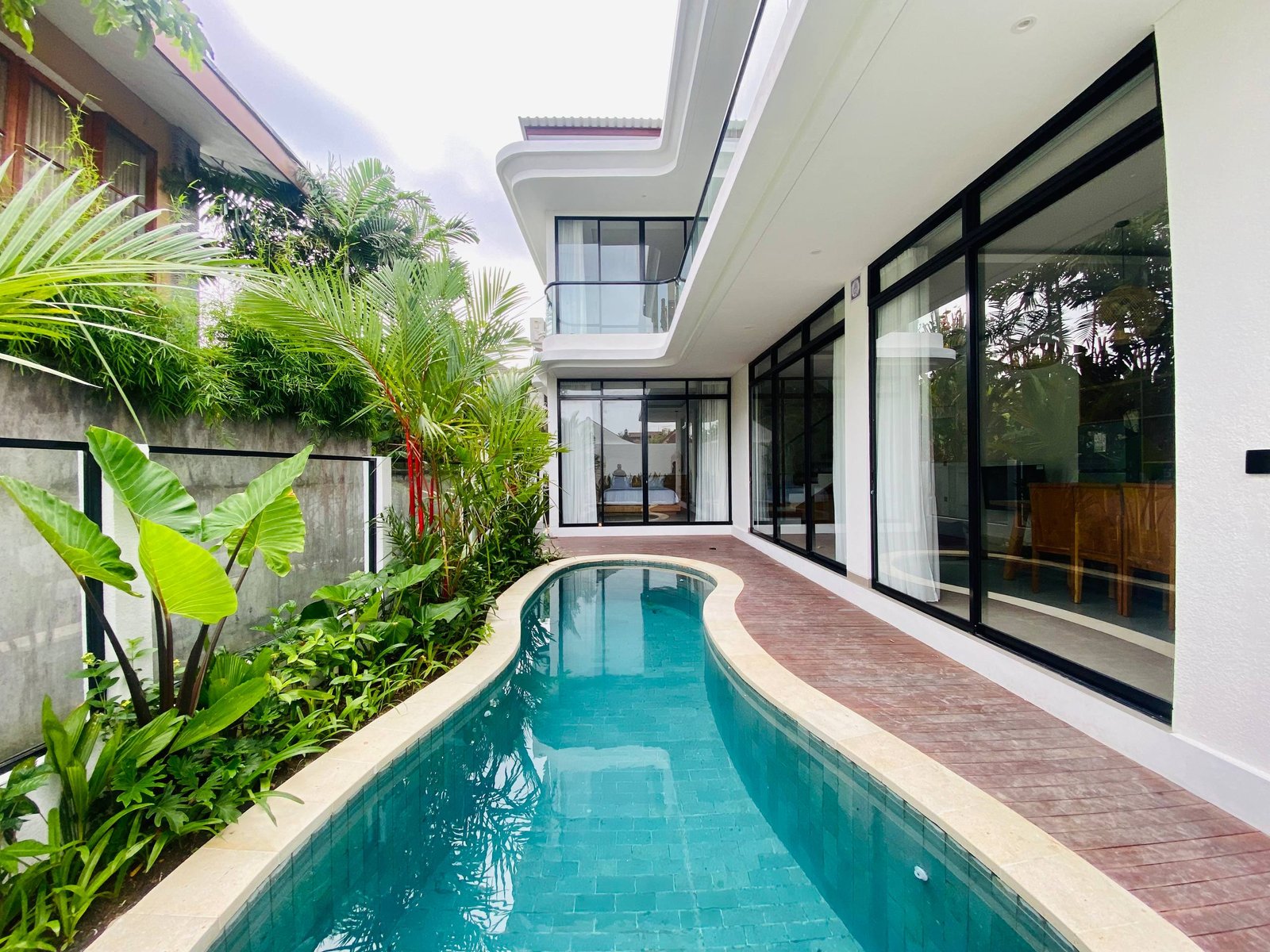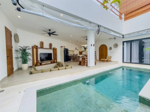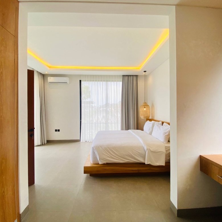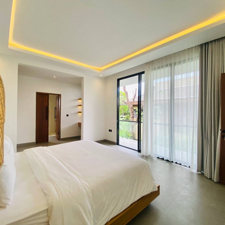 This brand new modern Mediterranean villa in the prime location of Pererenan is available 19 January 2026, for monthly and leasehold rent, and is currently ready for occupancy, although the IMB and SLF (Building Permit and Functional Worthiness Certificate) are still in progress (located in an orange zone). It offers a pool view and is surrounded by numerous amenities, including Surya Gym and Obsidian, as the area boasts a huge number of cafés, restaurants, and coffee shops. This villa is highly comfortable with excellent quality and furnishings, and is just an 8-minute drive to Pererenan Beach.