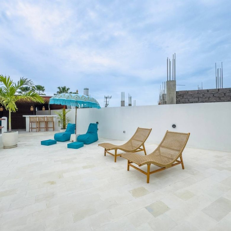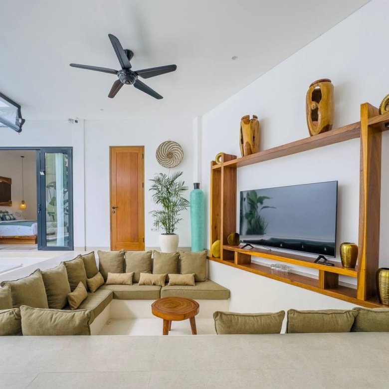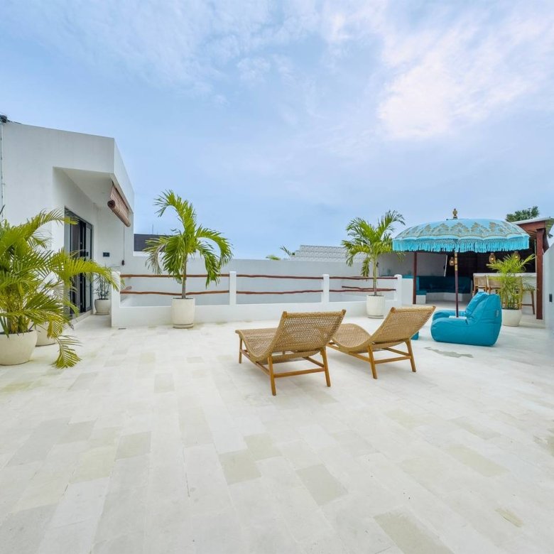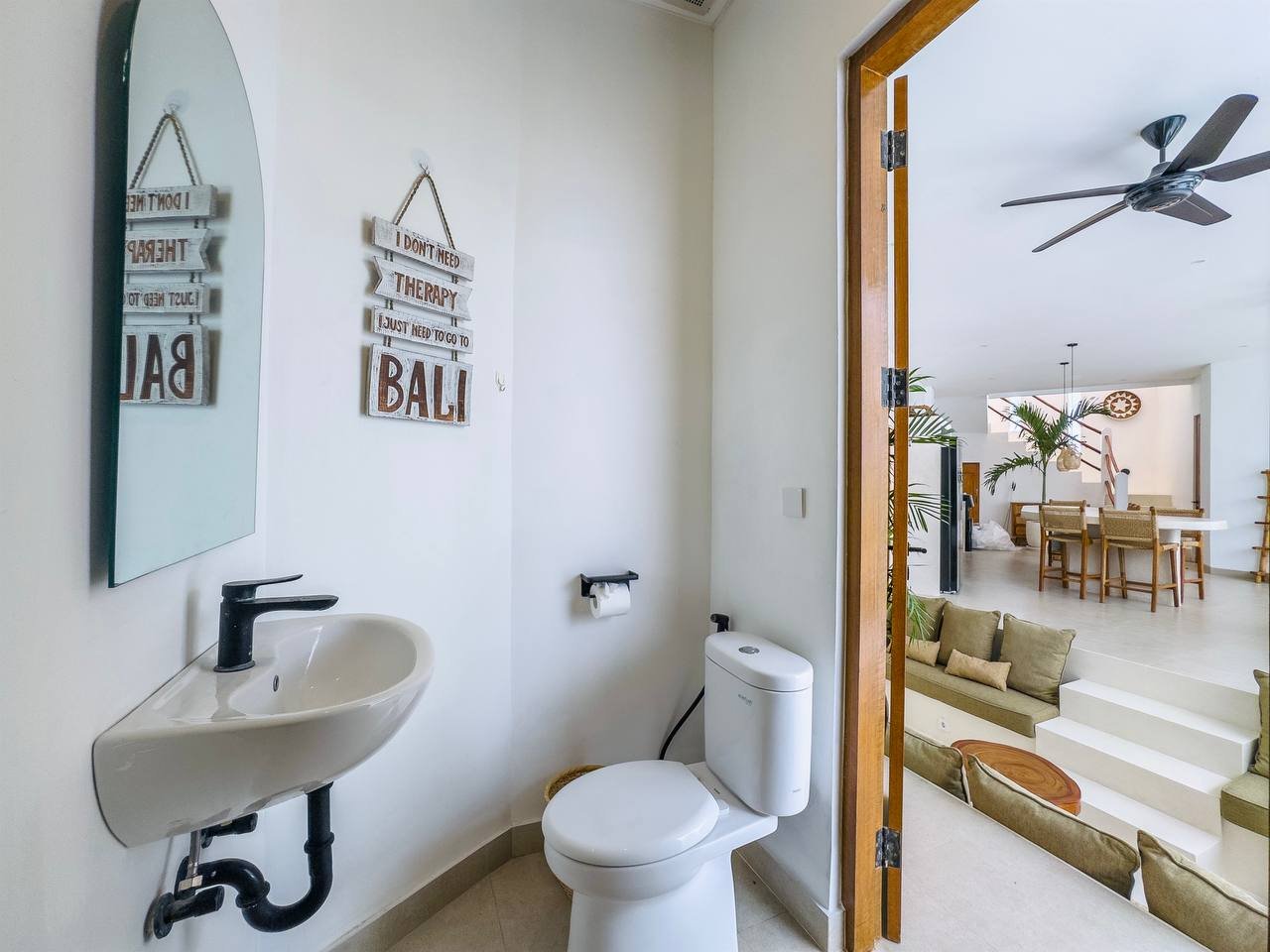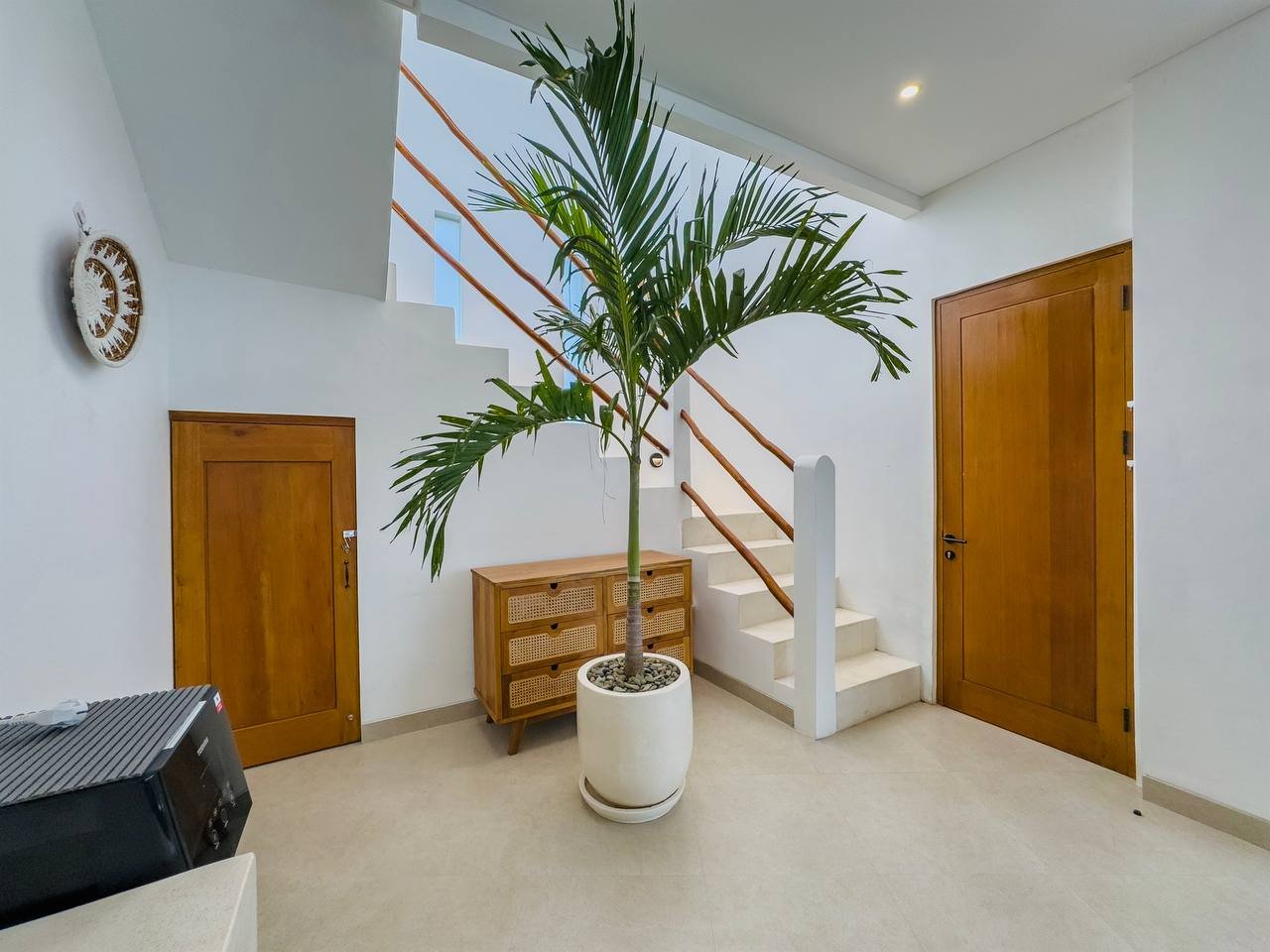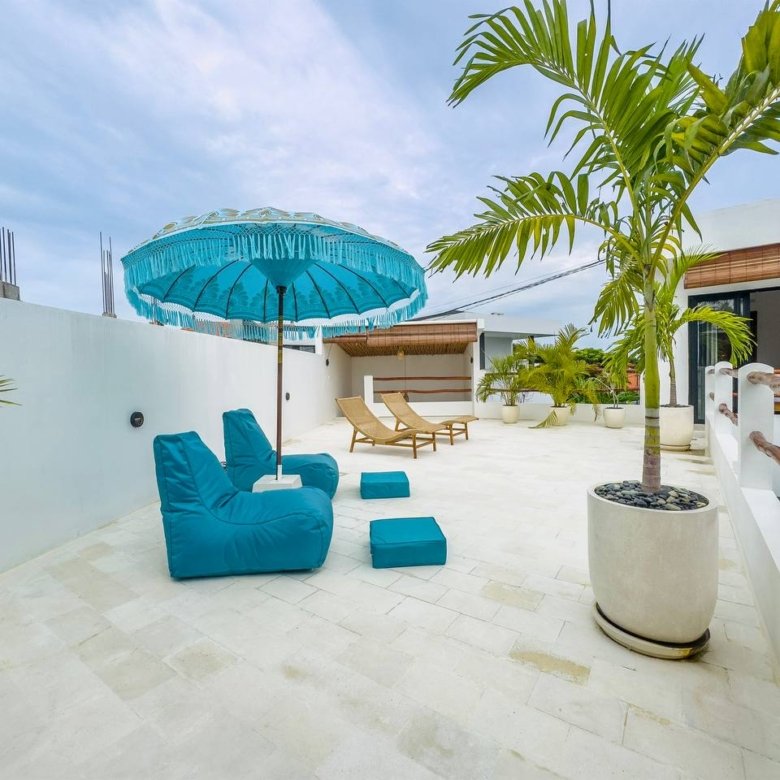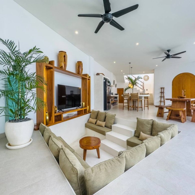 This modern tropical villa in the Tumbak Bayuh area is available for monthly, yearly, and leasehold rent, subject to current availability. Located in a Zone Kuning area with the IMB (building permit) in progress, the property offers views of the pool and the surrounding residential area. This villa is highly suitable for comfortable living due to its excellent strategic location and very elegant furniture, and the rooftop offers a peaceful and relaxing view. It is conveniently situated near Kaemon Bali and Torst Coffee, and is just a 10-minute drive to Pererenan Beach.