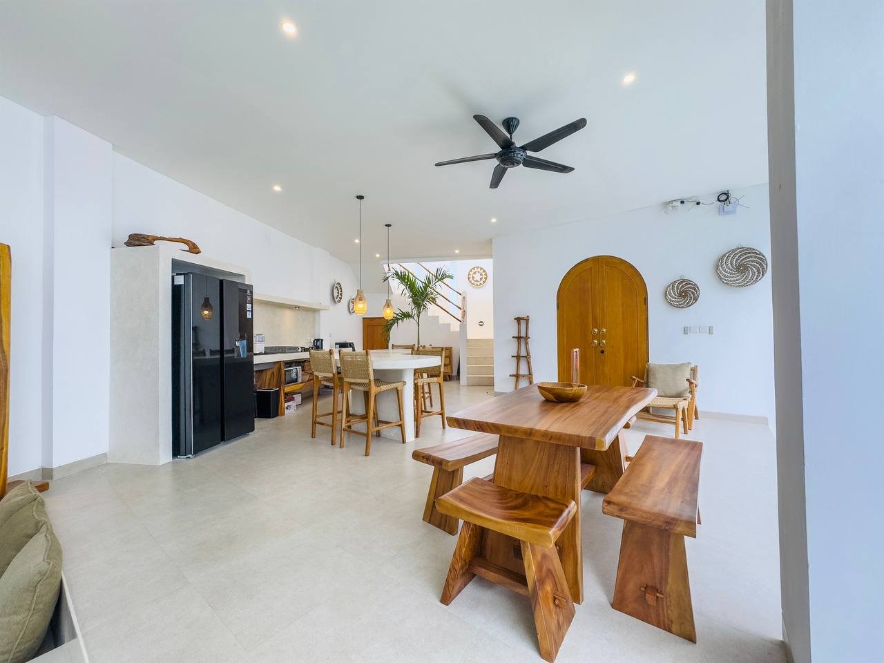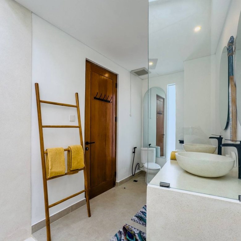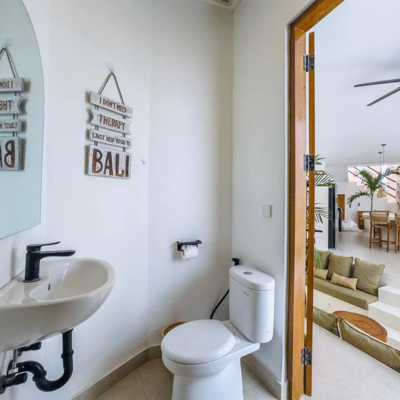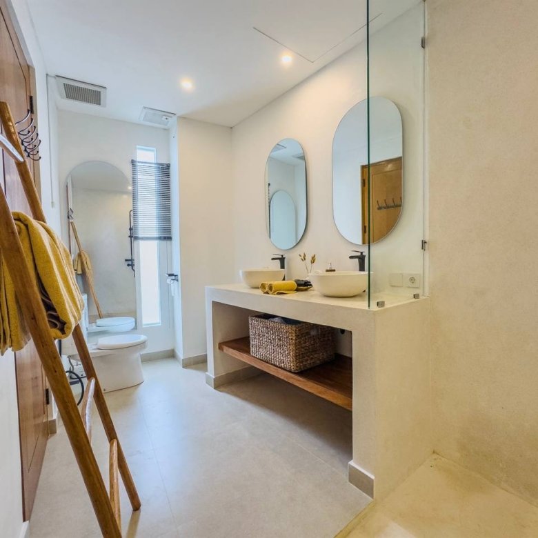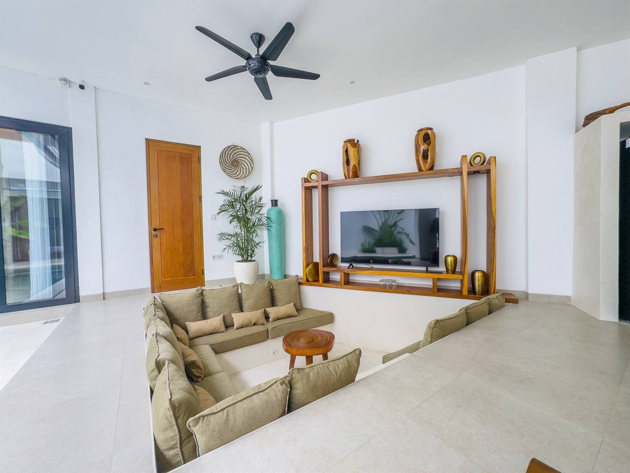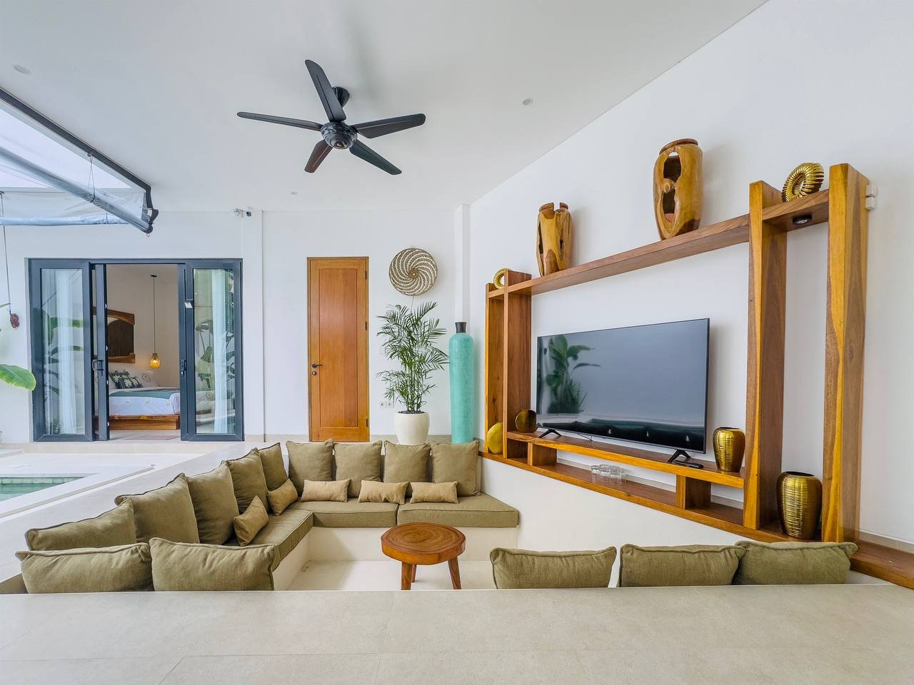 This modern tropical villa in the Tumbak Bayuh area is available for monthly, yearly, and leasehold rent, subject to current availability. Located in a Zone Kuning area with the IMB (building permit) in progress, the property offers views of the pool and the surrounding residential area. This villa is highly suitable for comfortable living due to its excellent strategic location and very elegant furniture, and the rooftop offers a peaceful and relaxing view. It is conveniently situated near Kaemon Bali and Torst Coffee, and is just a 10-minute drive to Pererenan Beach.