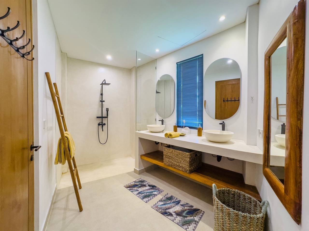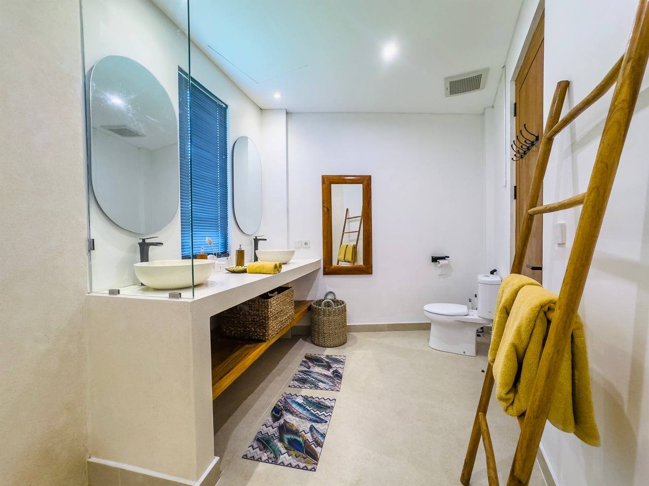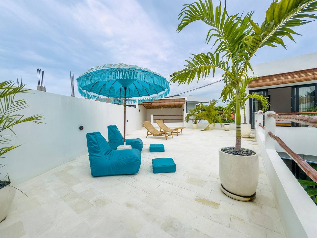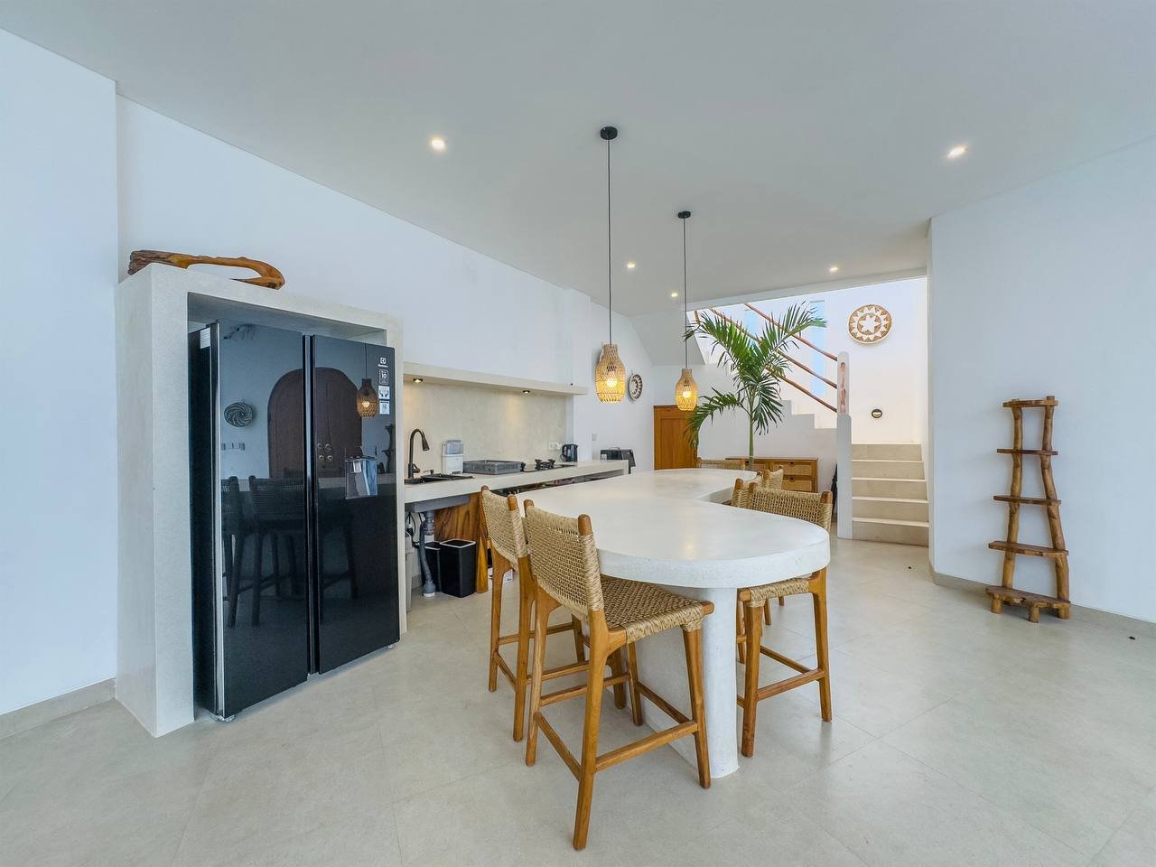 This modern tropical villa in the Tumbak Bayuh area is available for monthly, yearly, and leasehold rent, subject to current availability. Located in a Zone Kuning area with the IMB (building permit) in progress, the property offers views of the pool and the surrounding residential area. This villa is highly suitable for comfortable living due to its excellent strategic location and very elegant furniture, and the rooftop offers a peaceful and relaxing view. It is conveniently situated near Kaemon Bali and Torst Coffee, and is just a 10-minute drive to Pererenan Beach.