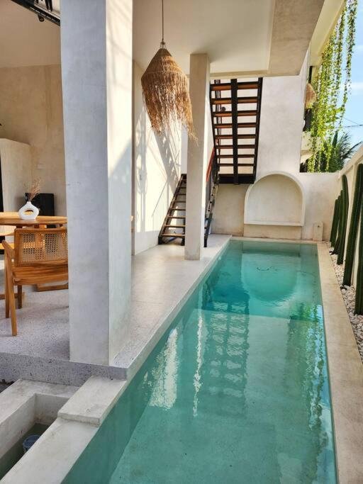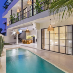This modern villa in Berawa is ready now for monthly and yearly rent. It features 2 floors plus a rooftop and offers a pool view. It is situated in a strategic location in one of the most popular areas for tourists and expats to live in, near many cafes and bars, and only 9 minutes to Berawa Beach.