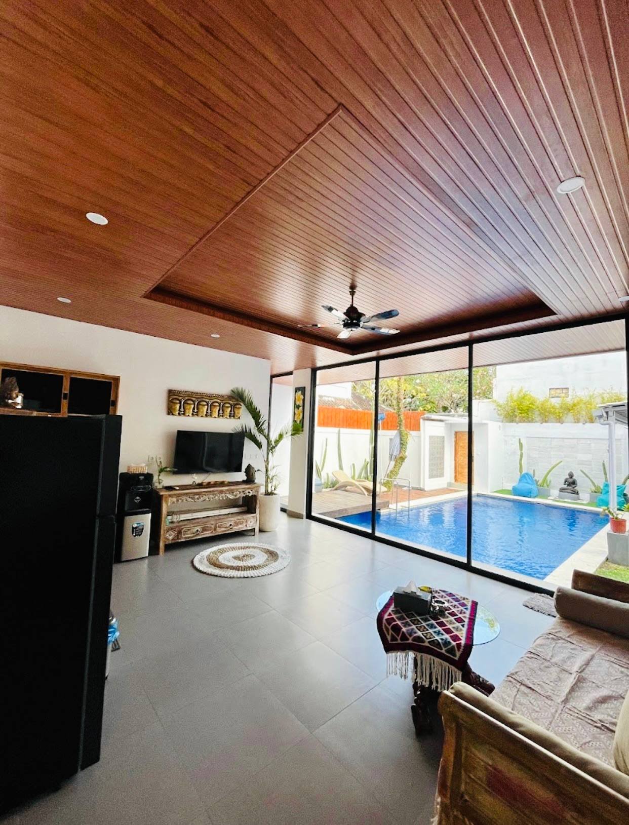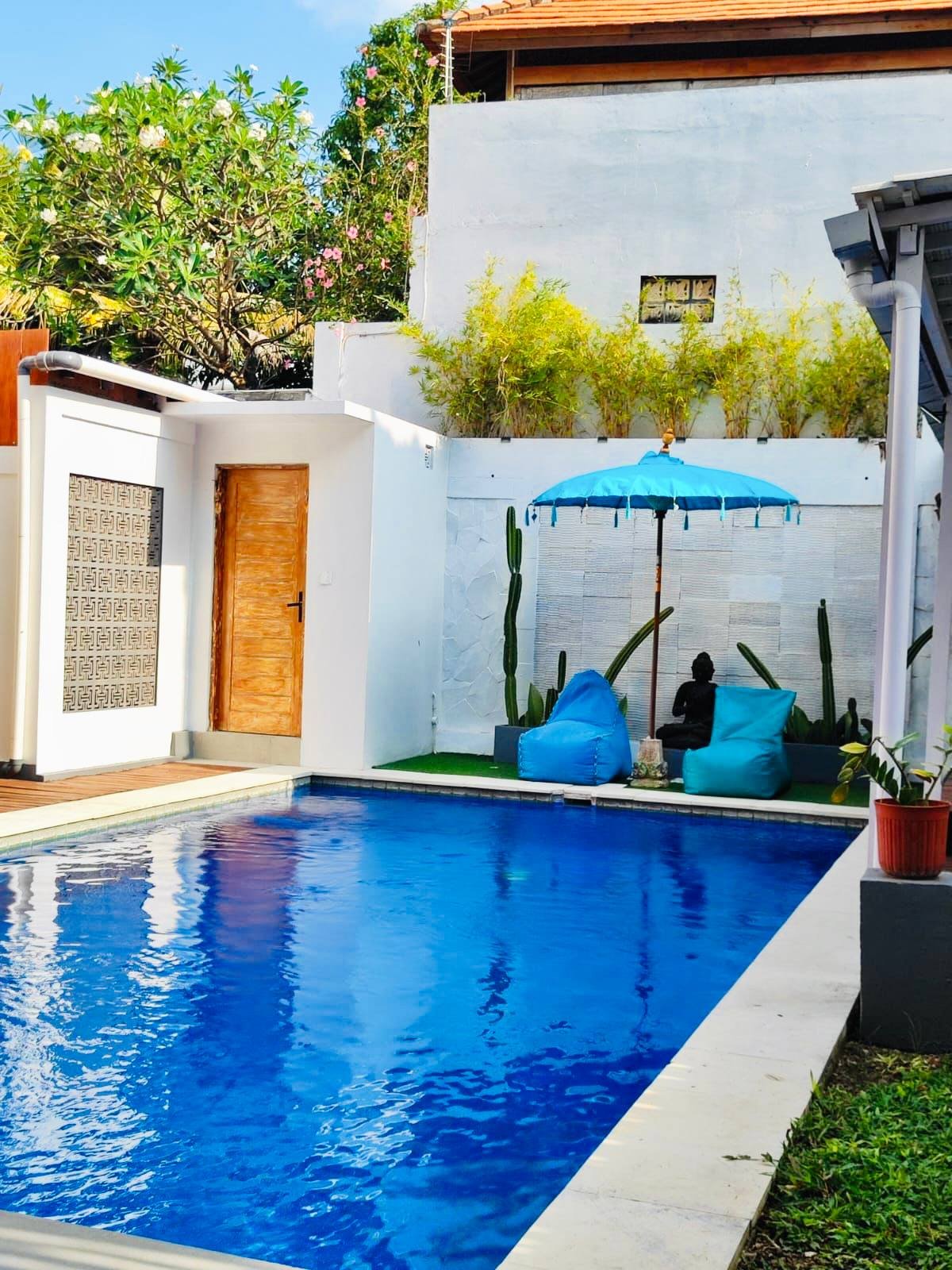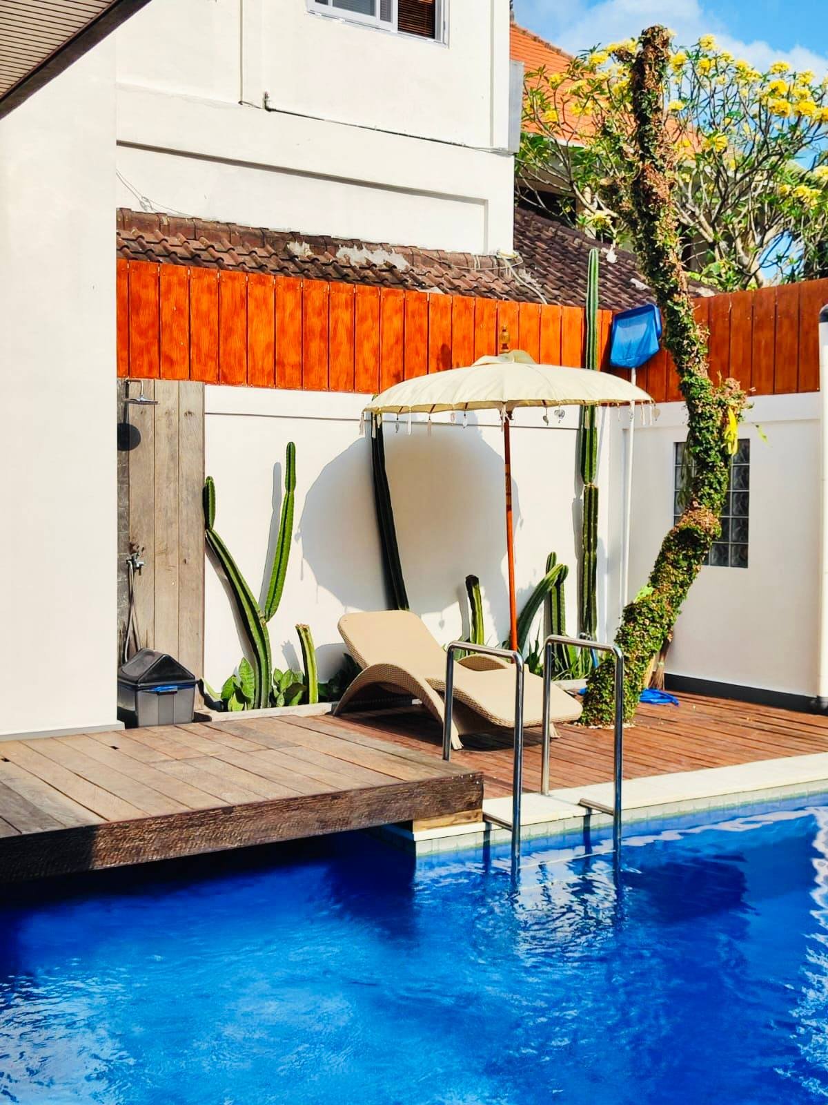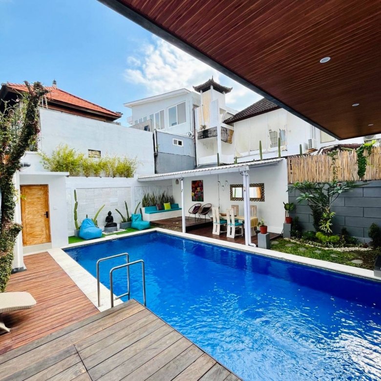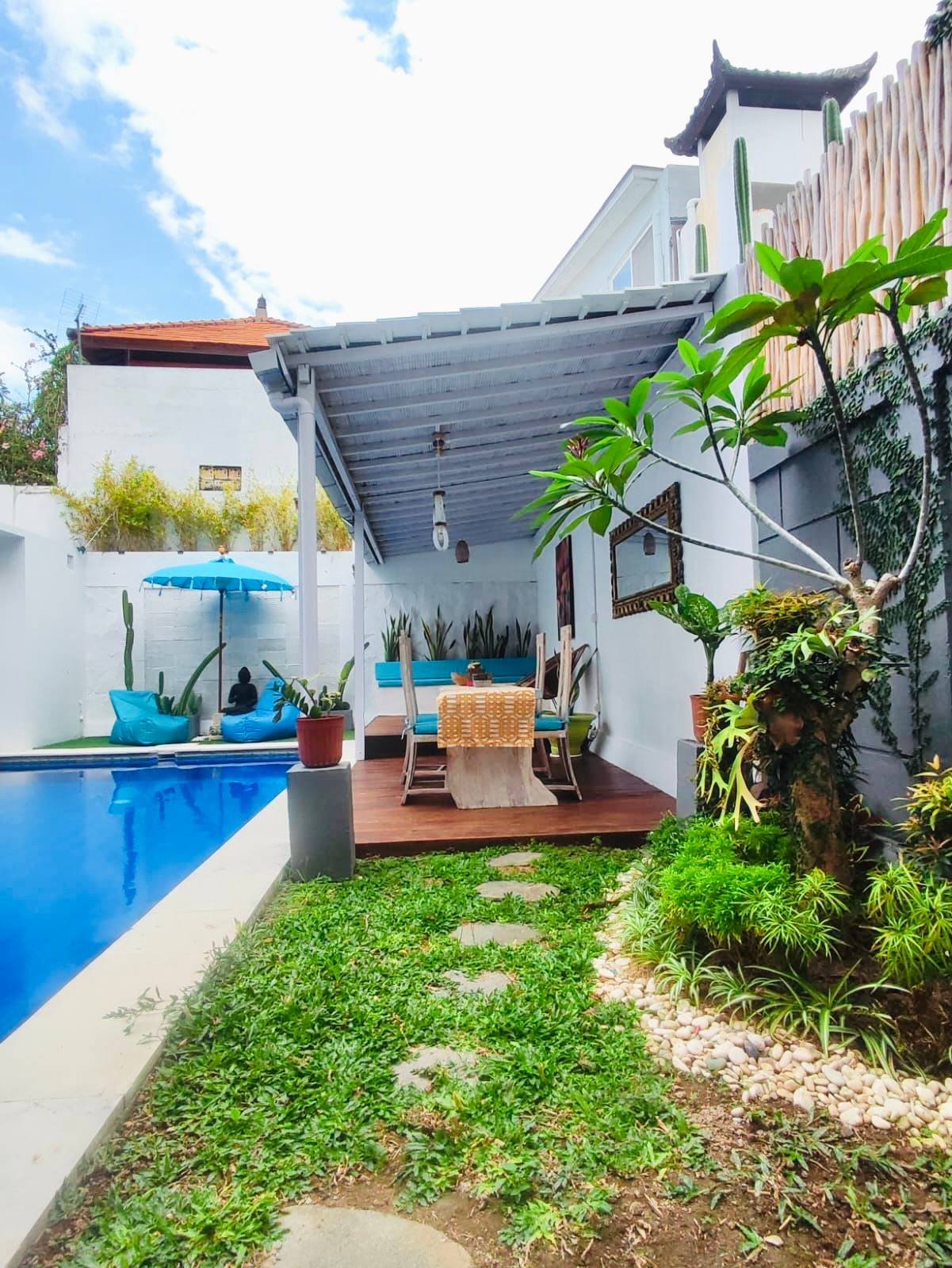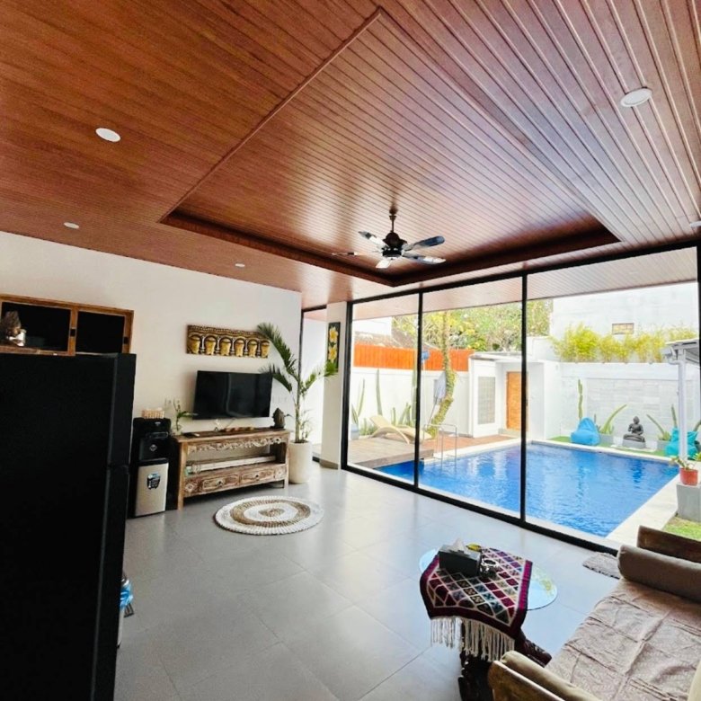 This modern villa in Umalas is immediately available for yearly rent, with the possibility of a long-term lease. Located in a Yellow Zone, the property offers a refreshing pool view and boasts an extremely strategic location with superb convenience, being very close to numerous restaurants and coffee shops. Furthermore, it provides quick access to the coast, situated just a 13-minute drive from Berawa Beach, Atlas Beach Club, and Finns Beach Club. The option for subleasing is an added benefit.