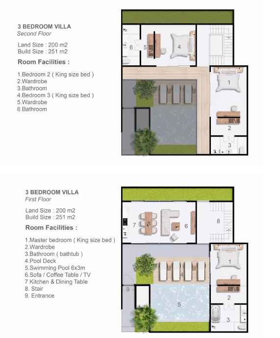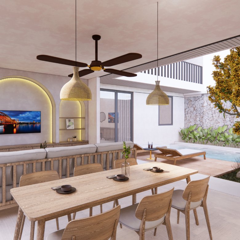 This 3-bedroom villa (Villa A), available for Freehold or Leasehold, is part of an exclusive villa complex in Jimbaran with only 2 units remaining — Villa A and Villa B — both featuring the same spacious layout. Designed with minimalist elegance and tropical serenity, each villa includes private bedrooms and a private pool. The complex provides full facilities such as a lobby and reception, 24-hour security with CCTV, 24-hour backup power, shared parking, personal and room service, a fitness center, and transportation services. Residents will enjoy breathtaking views of Garuda Wisnu Kencana and a peaceful environment surrounded by villas, hotels, and local residences. Strategically located in the Yellow Zone, this property is currently under construction (Phase 1) and is guaranteed to be completed on time by October 1st, 2026.