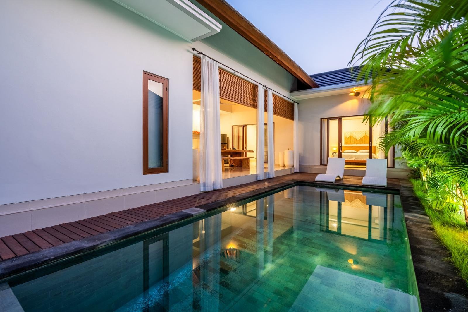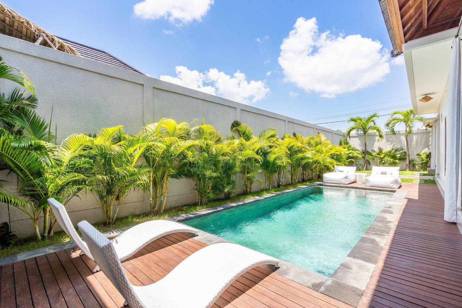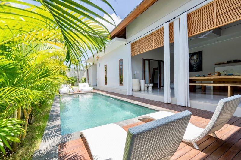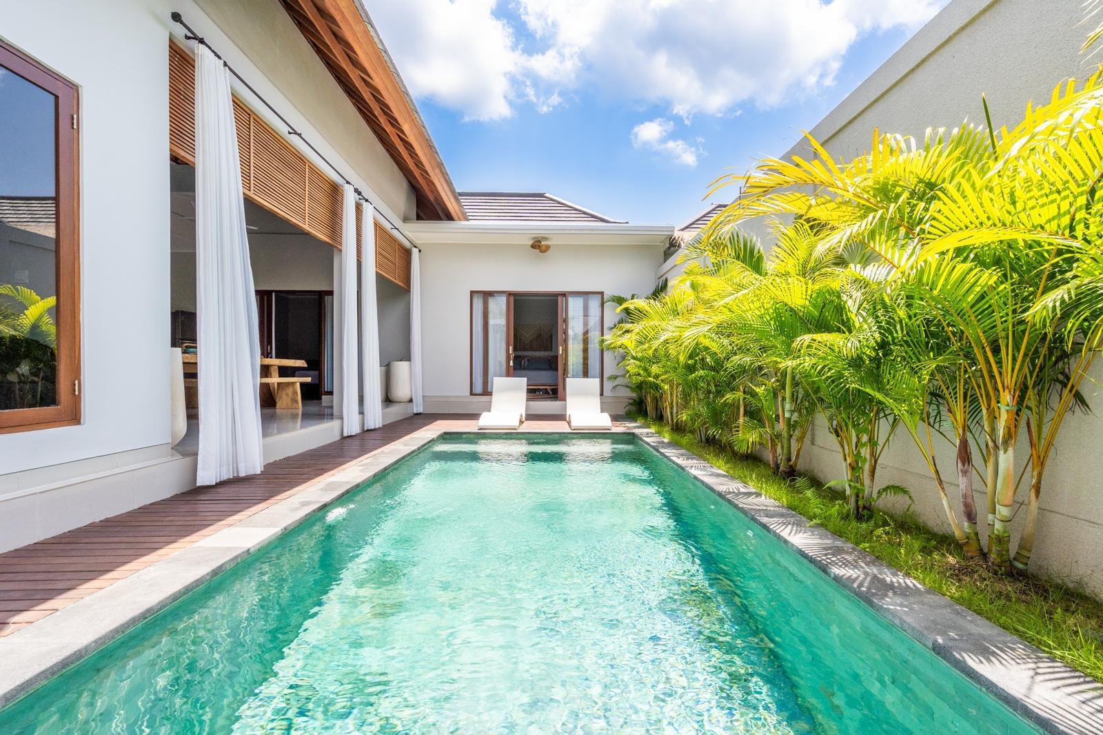 This stunning 3 bedroom villa in heart of Canggu – Padang Linjong is currently available for monthly or yearly rentals, just a 3-minutes’ drive to Echo Beach and Labrisa, this distinguished offering a minimalist living space with a refreshing pool view. Situated in a prime location which is walking to many famous spot restaurant/cafe such as Shary Shary, Copenghagen café canggu