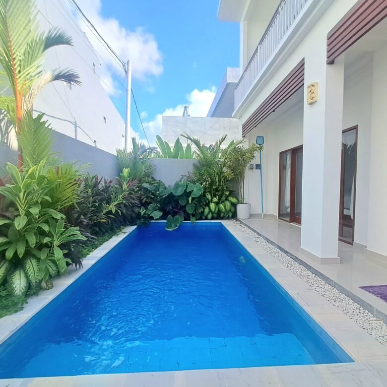 This modern minimalist 3-bedroom villa fully furnished is situated in the heart of Pererenan. It’s within walking distance of popular spots like the Nail Bar Pererenan and Noah Cafe. Additionally, it’s just a quick 2-minute bike ride away from Pererenan Beach. The villa, built in 2023, features a 3×6-meter pool, an enclosed dining area, and a living room. Currently undergoing renovation, it will be ready by the end of July 2024. Its quiet location adds to its appeal, Parking for car/bike.