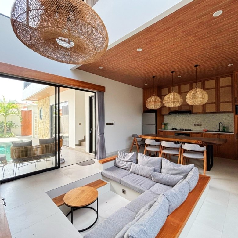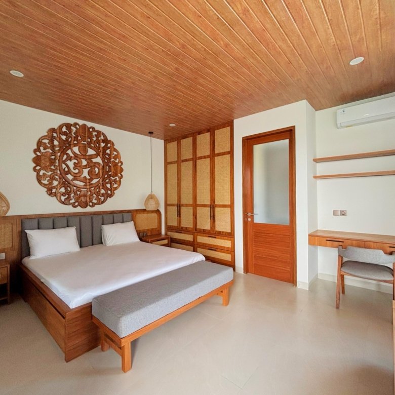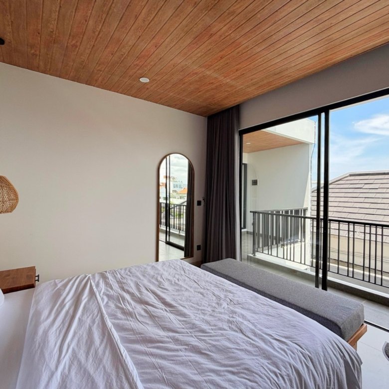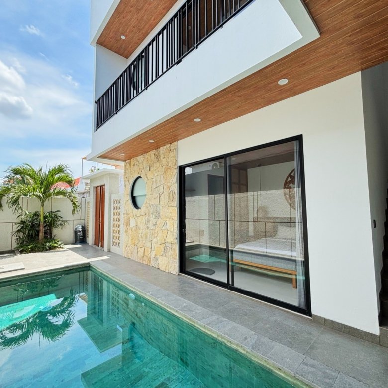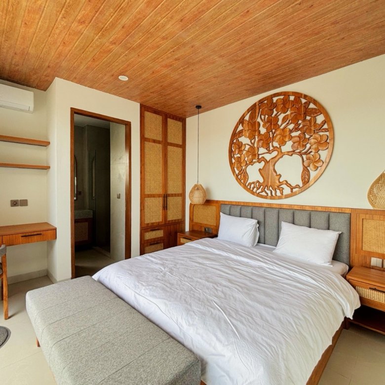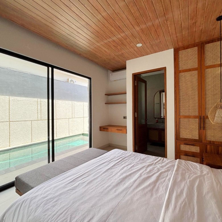Experience Bali living in this homey, three-bedroom unsuited villa designed with a modern minimalist. Located in Pererenan, you’re just a short 7-minute bike ride from Pererenan Beach. Spend your days relaxing by the private swimming pool with your family or partner. The location is excellent—surrounded by other villas and only a short walk to Surya Gym. It’s the perfect place to stay and enjoy life in Bali.
