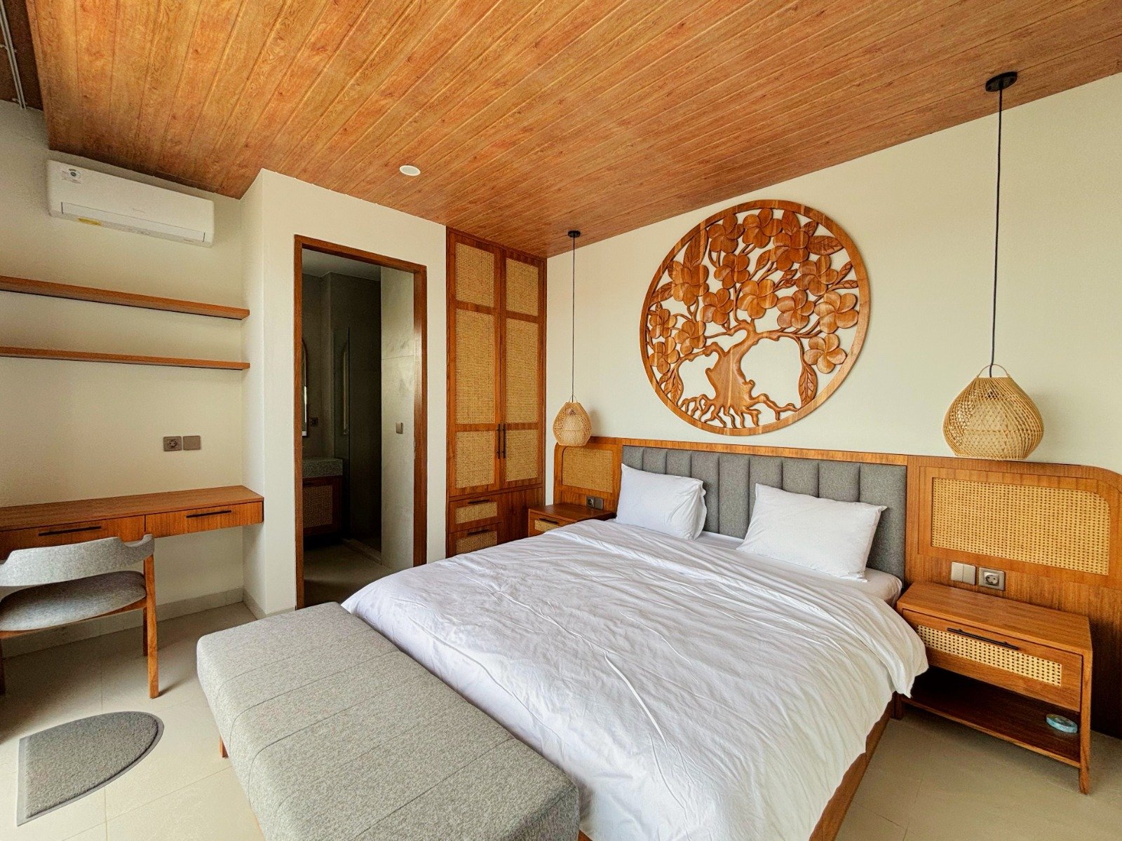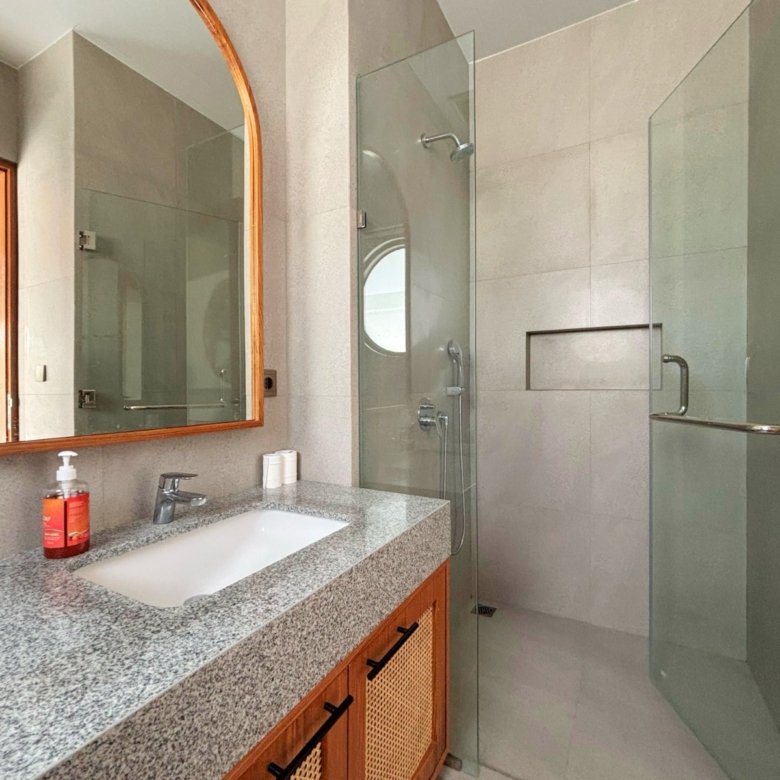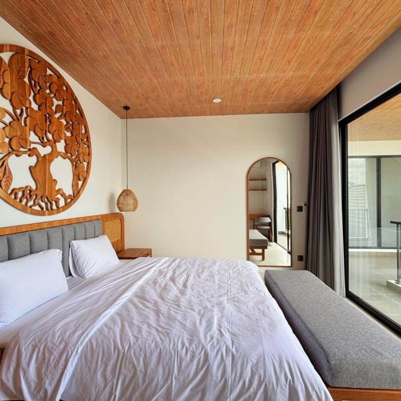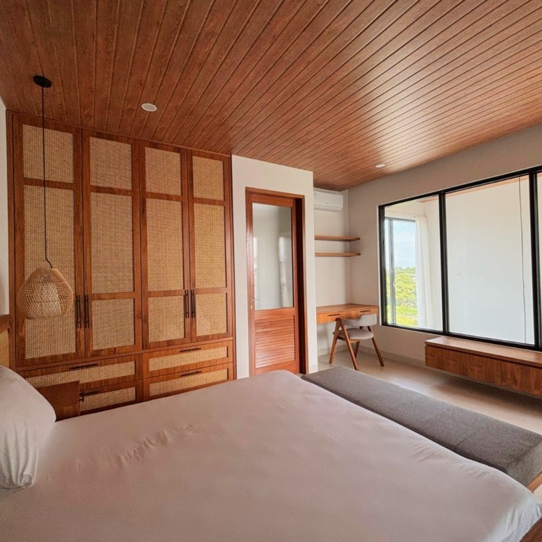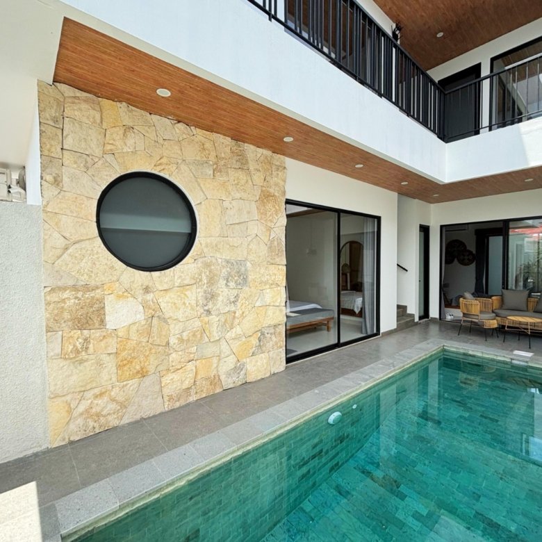 Experience Bali living in this homey, three-bedroom unsuited villa designed with a modern minimalist. Located in Pererenan, you’re just a short 7-minute bike ride from Pererenan Beach. Spend your days relaxing by the private swimming pool with your family or partner. The location is excellent—surrounded by other villas and only a short walk to Surya Gym. It’s the perfect place to stay and enjoy life in Bali.
