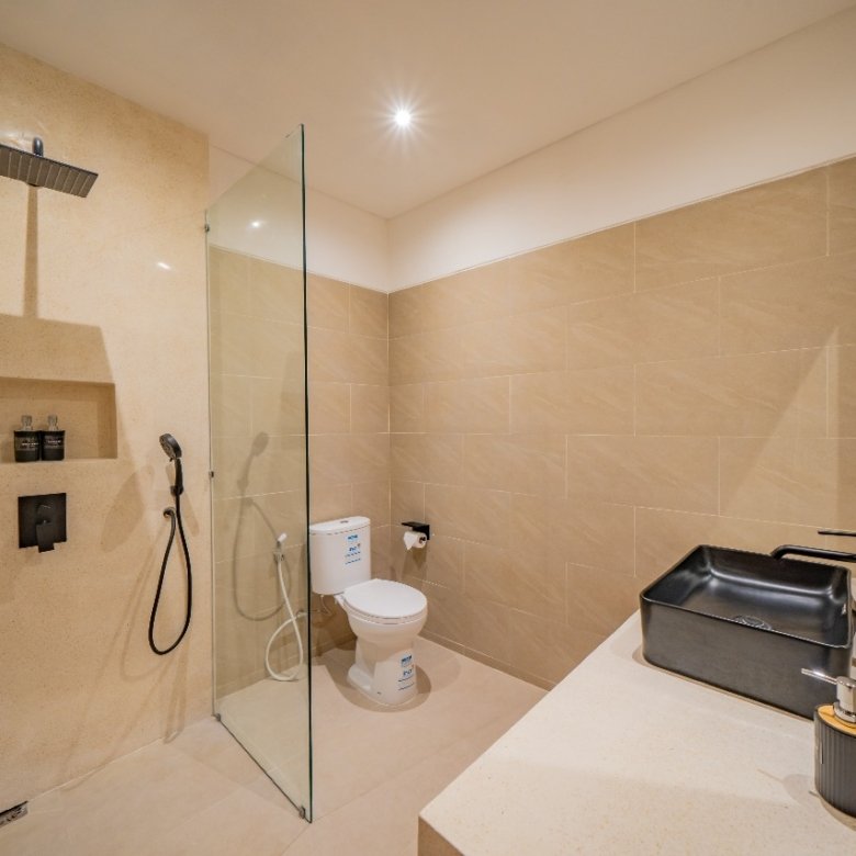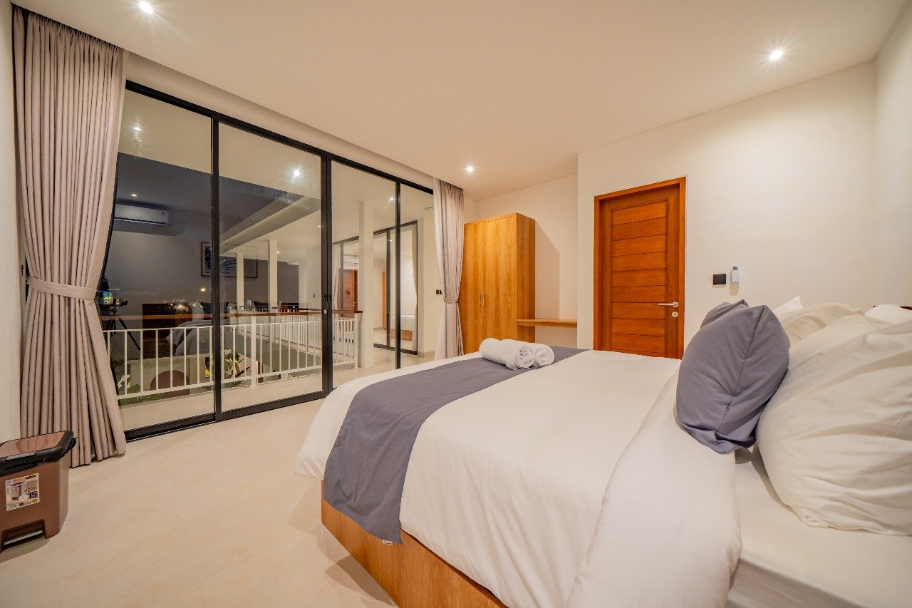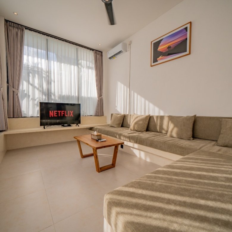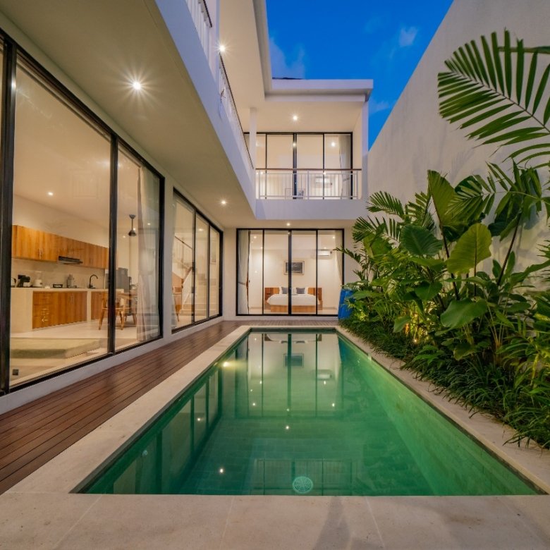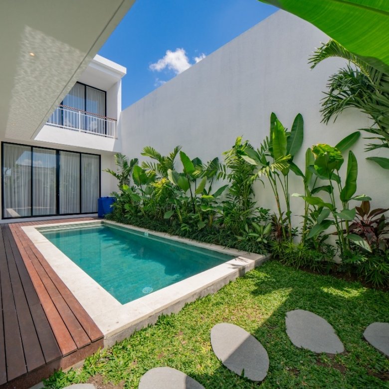This modern, minimalist, enclosed villa in Canggu is currently available. It offers a very comfortable stay, allowing you to easily enjoy your time in Bali. Walk everywhere! Cafés, gyms, restaurants, and pool clubs are all steps away. It’s only 3 minutes to Padel courts, 6 minutes to Echo Beach, and super close to the action in Pererenan and Batu Bolong!