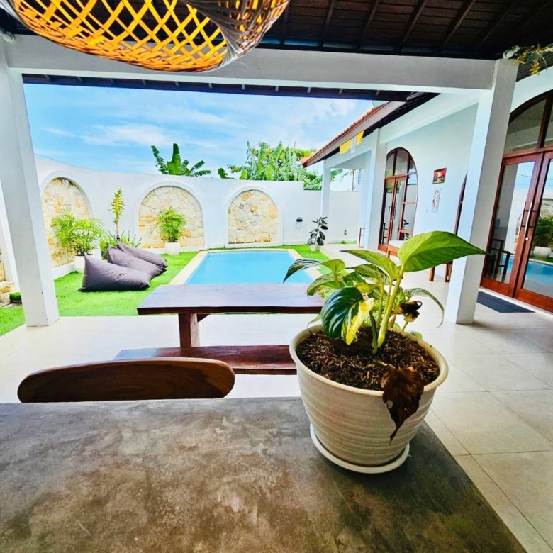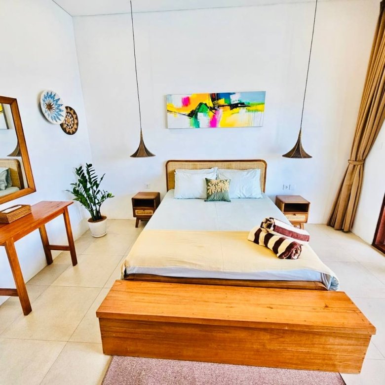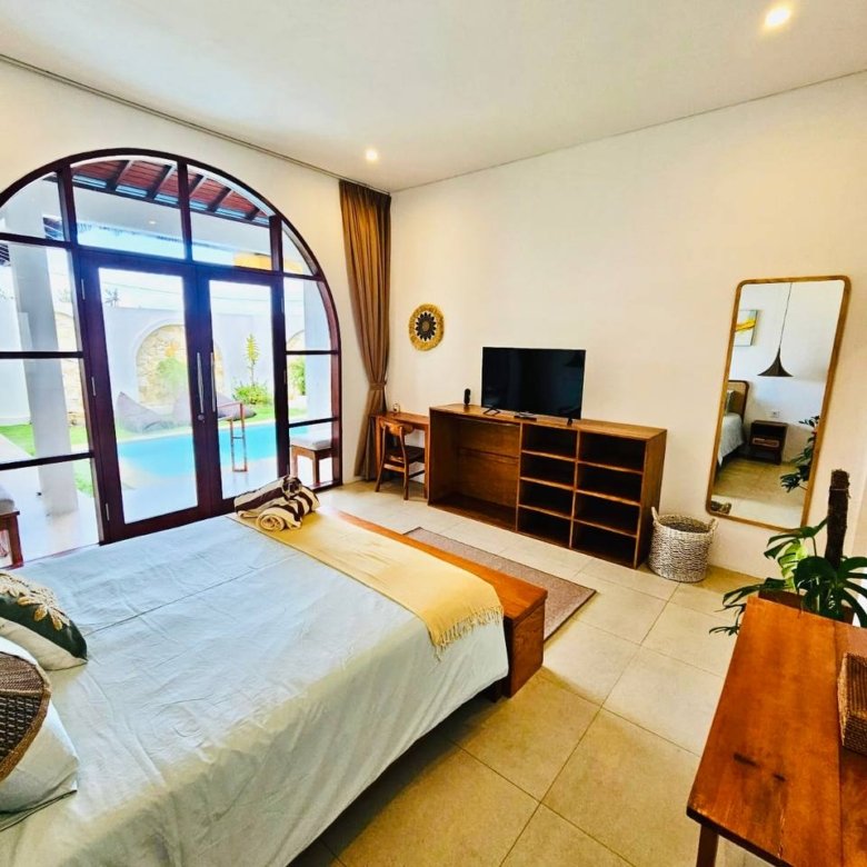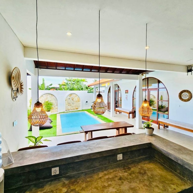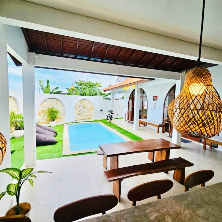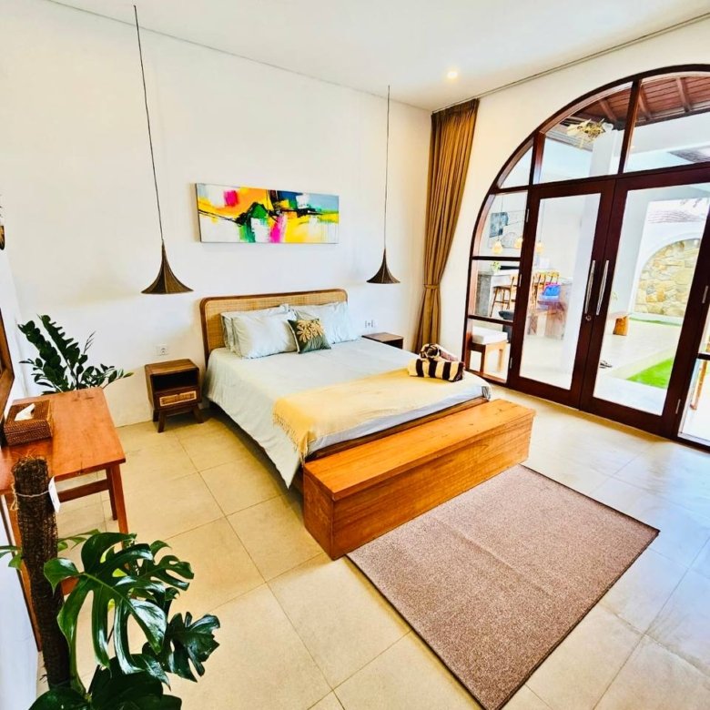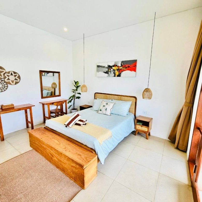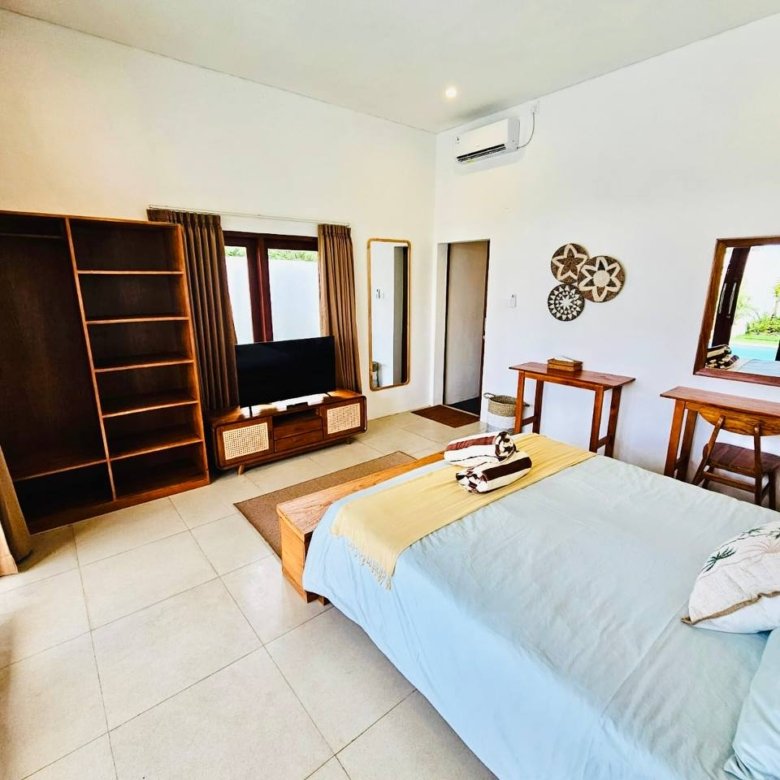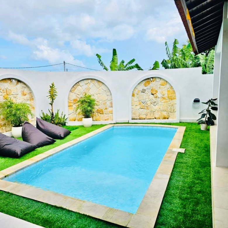 This modern-style villa in Munggu Seseh is now available for yearly rent with a minimum of 1 year. It features a private pool and a lush garden view, offering a serene and comfortable living space. Ideally located near Kaemon Bali Resto and just a 5-minute bike ride to Munggu Beach, this villa combines modern living with close access to the beach and local dining spots.