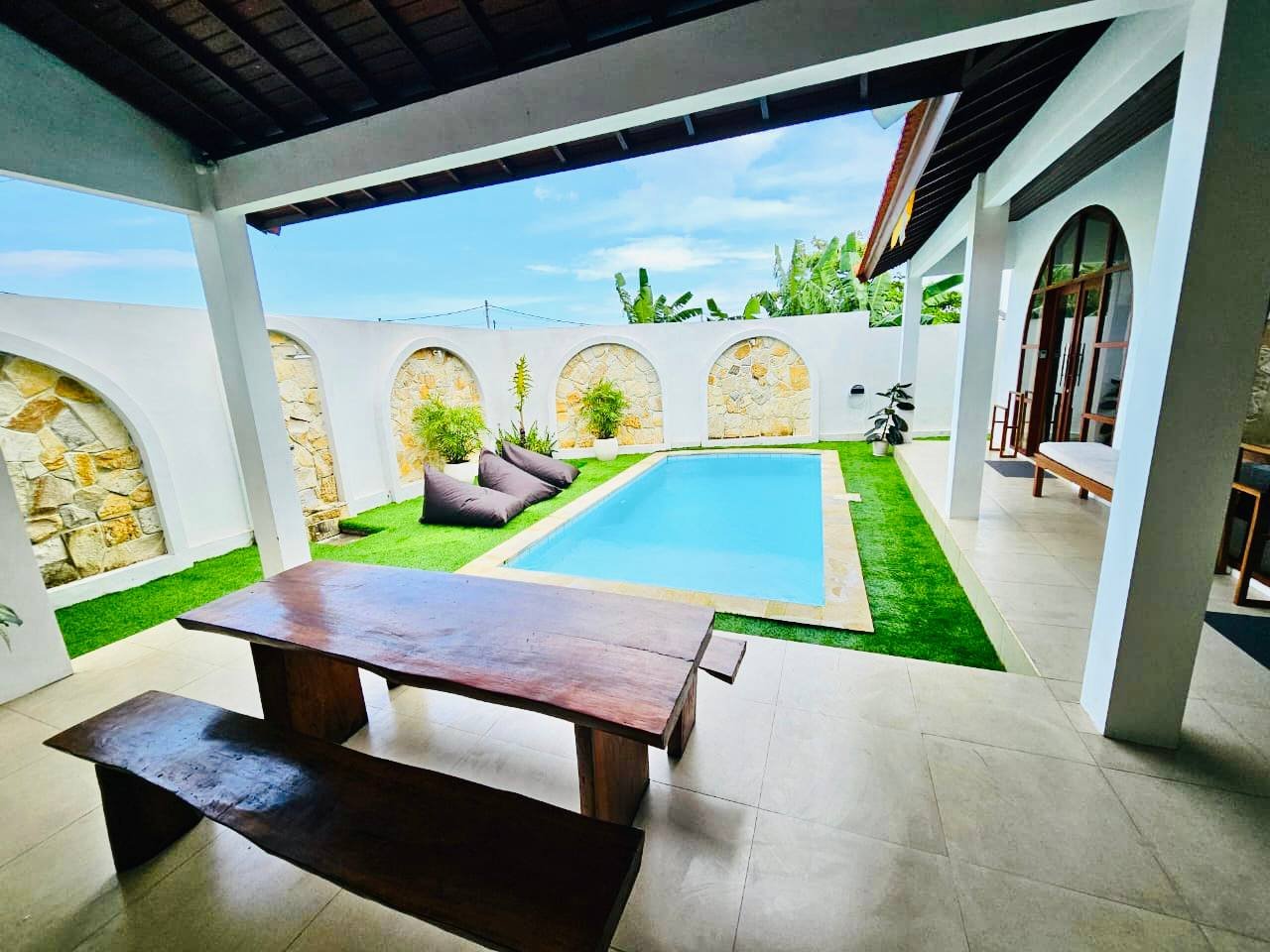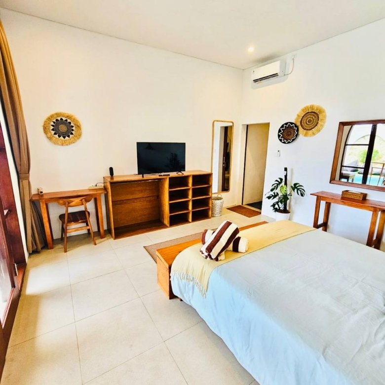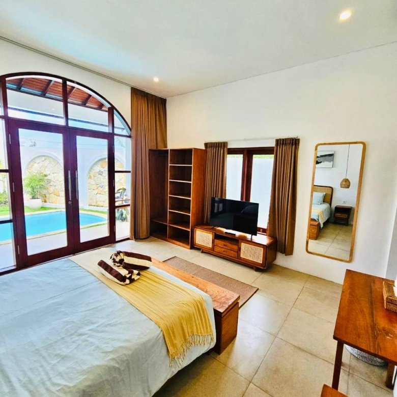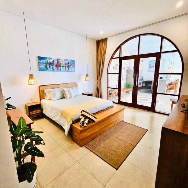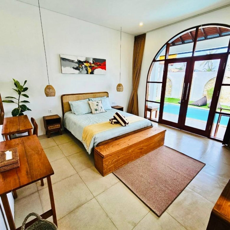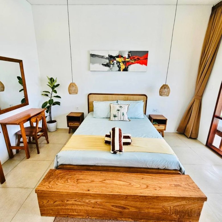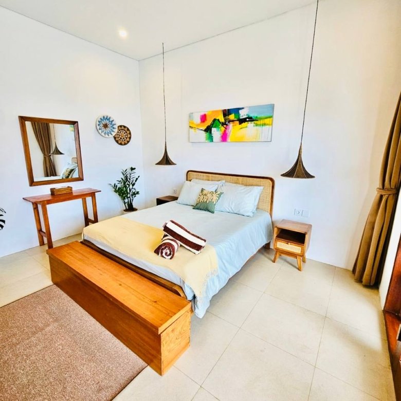 This modern-style villa in Munggu Seseh is now available for yearly rent with a minimum of 1 year. It features a private pool and a lush garden view, offering a serene and comfortable living space. Ideally located near Kaemon Bali Resto and just a 5-minute bike ride to Munggu Beach, this villa combines modern living with close access to the beach and local dining spots.