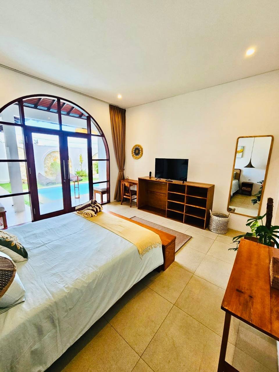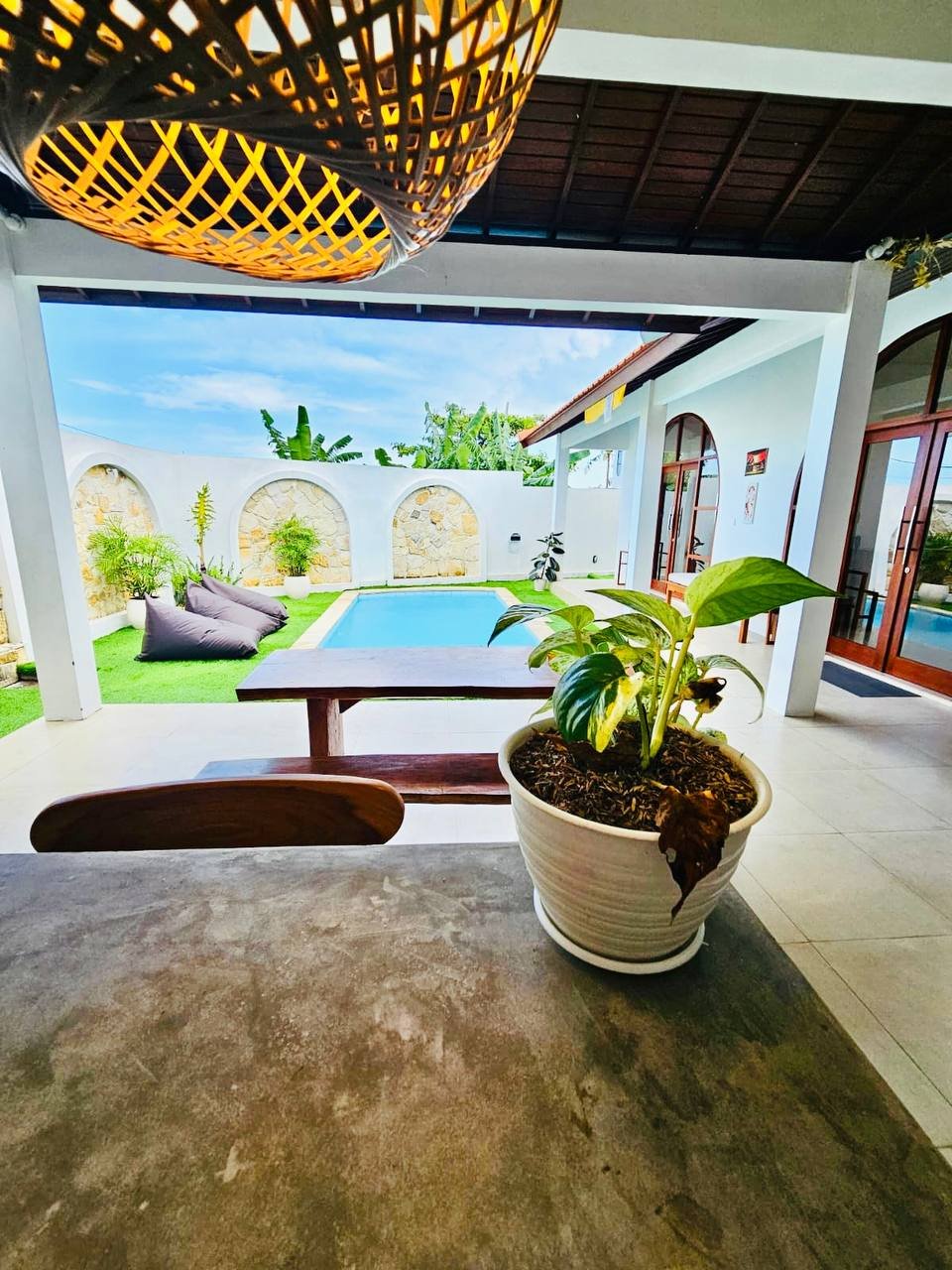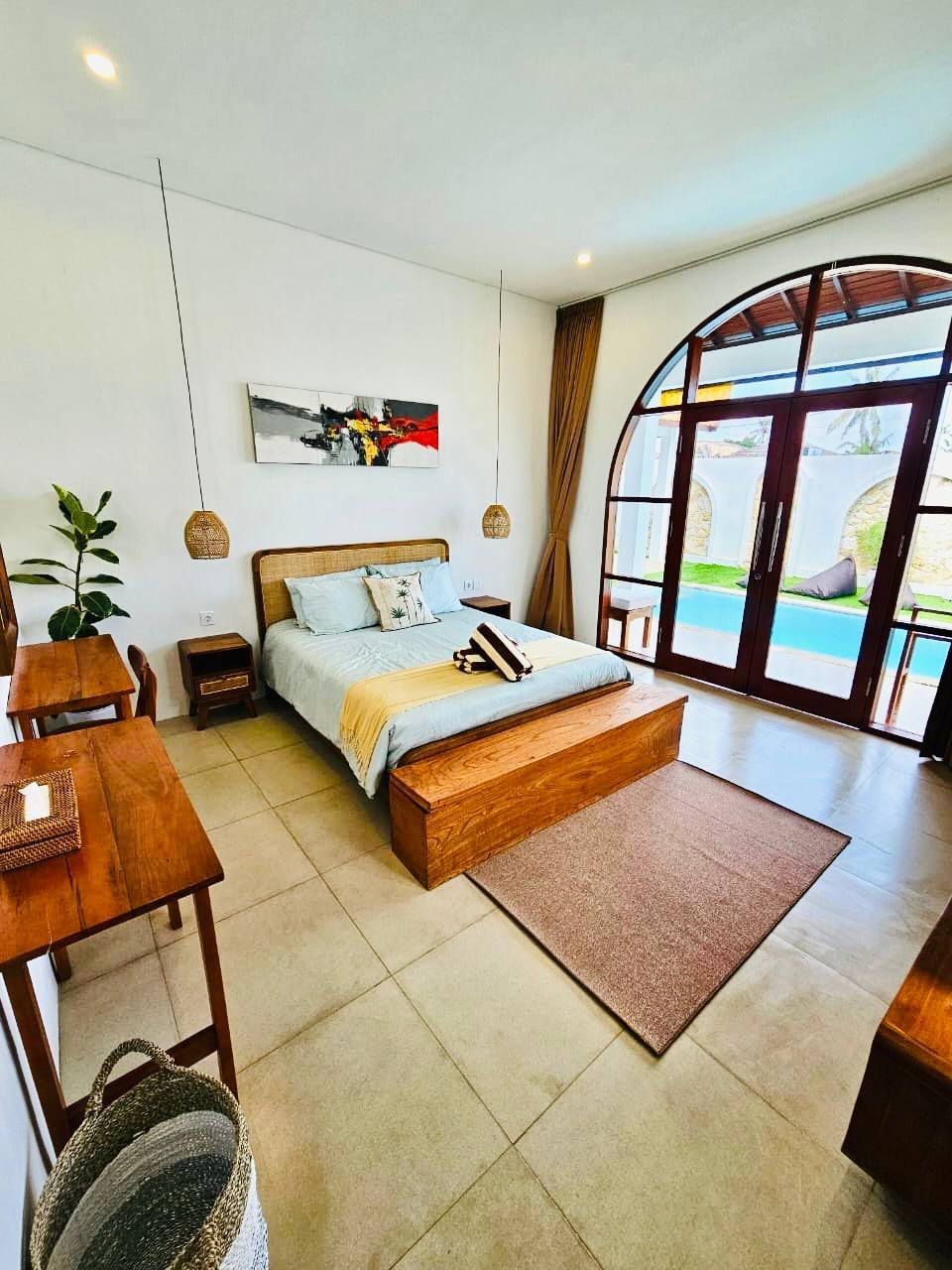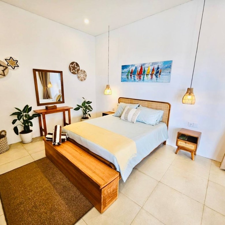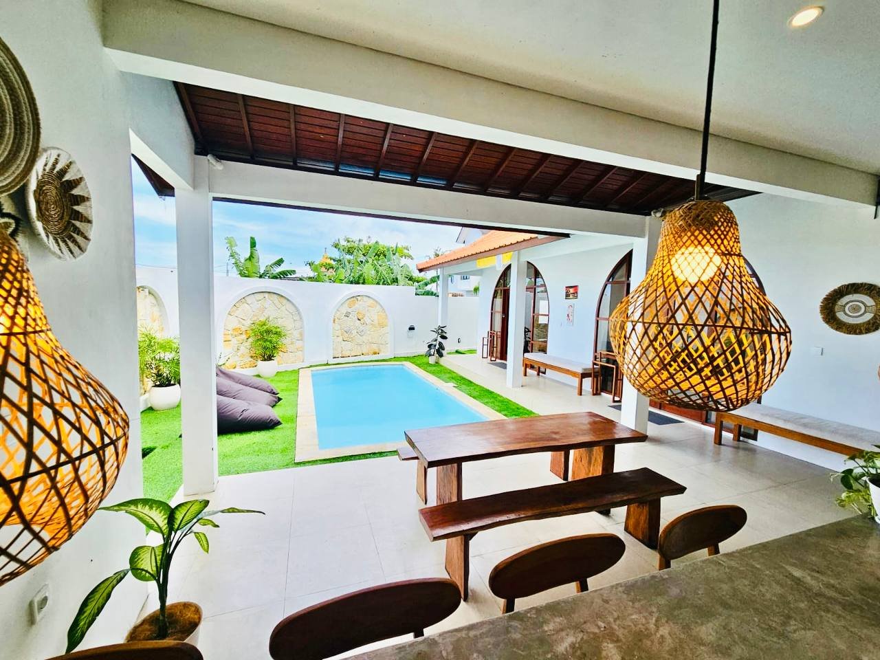 This modern-style villa in Munggu Seseh is now available for yearly rent with a minimum of 1 year. It features a private pool and a lush garden view, offering a serene and comfortable living space. Ideally located near Kaemon Bali Resto and just a 5-minute bike ride to Munggu Beach, this villa combines modern living with close access to the beach and local dining spots.