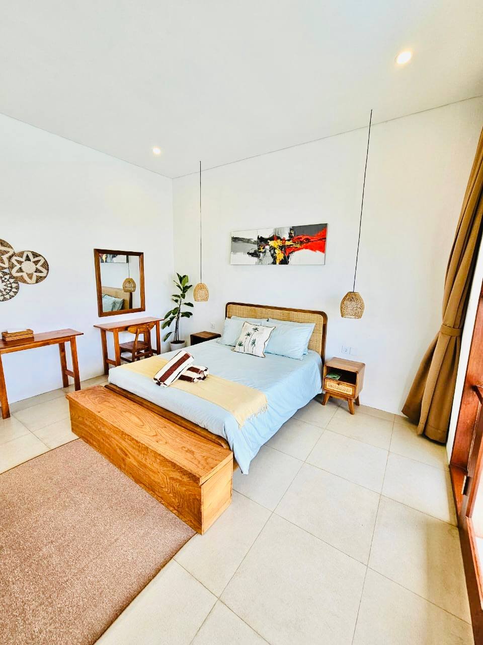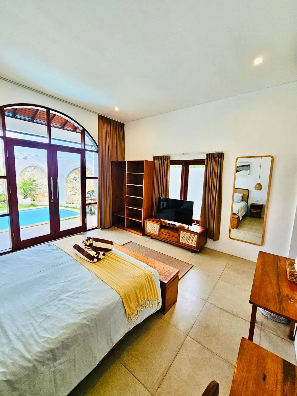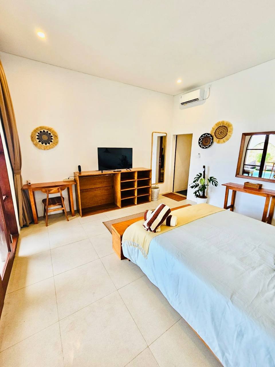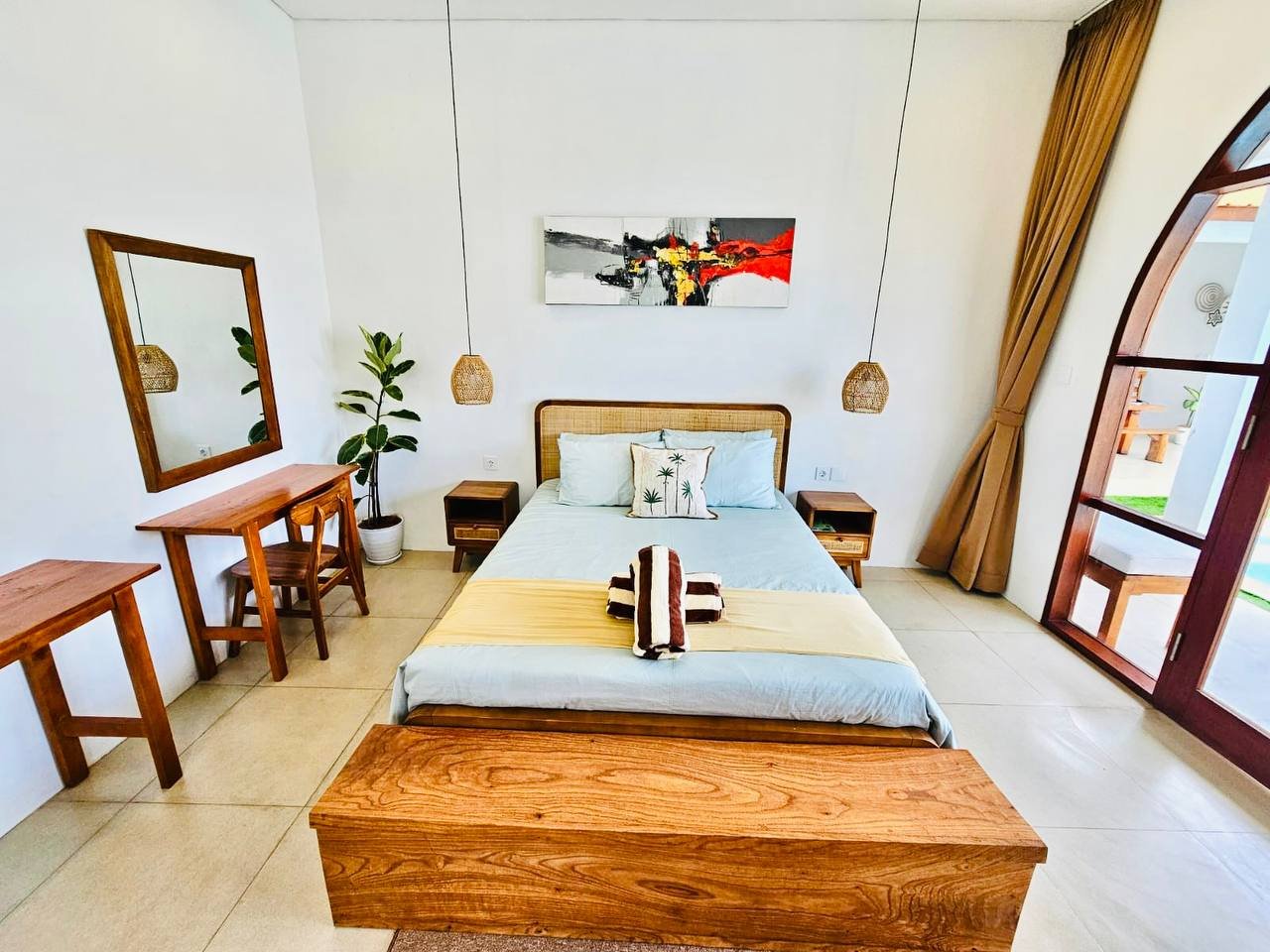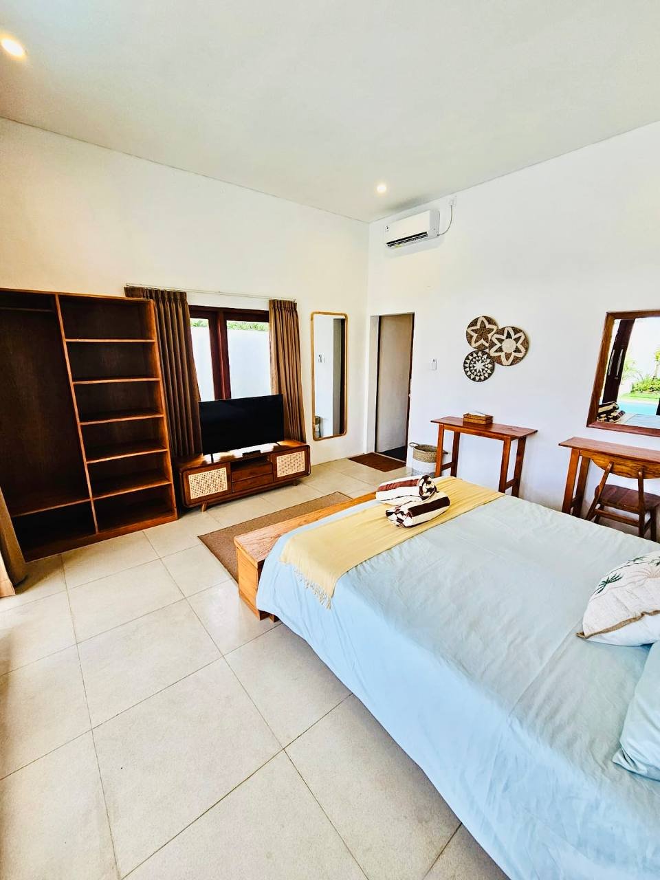 This modern-style villa in Munggu Seseh is now available for yearly rent with a minimum of 1 year. It features a private pool and a lush garden view, offering a serene and comfortable living space. Ideally located near Kaemon Bali Resto and just a 5-minute bike ride to Munggu Beach, this villa combines modern living with close access to the beach and local dining spots.