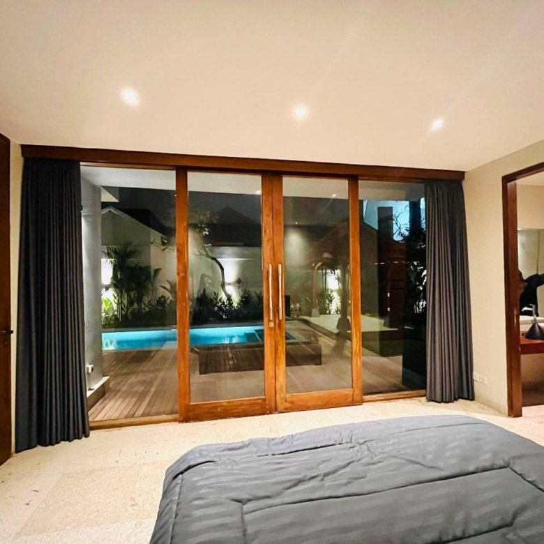 This modern villa in Buduk is available now for yearly rent with a minimum of 1 year or on a 25-year leasehold. Designed with a sleek modern style, it offers a pool and garden view in a peaceful setting, surrounded by Moringa Cafe and Mart, and only 10 minutes from Pererenan Beach. Located in the Orange Zone, sublease is possible and the price is negotiable, making it a flexible and attractive option for both living and investment.