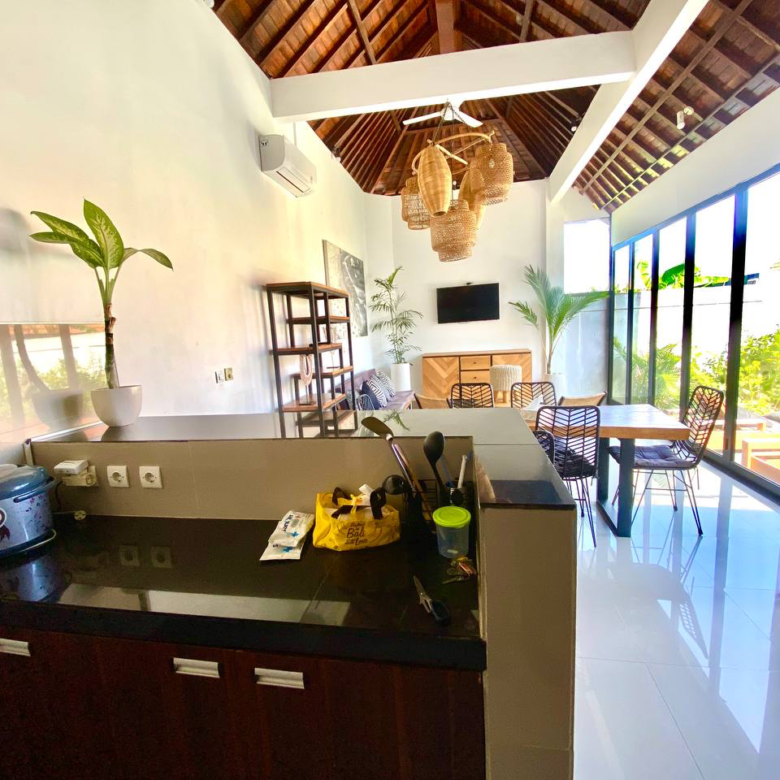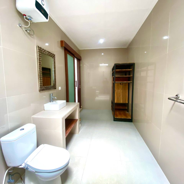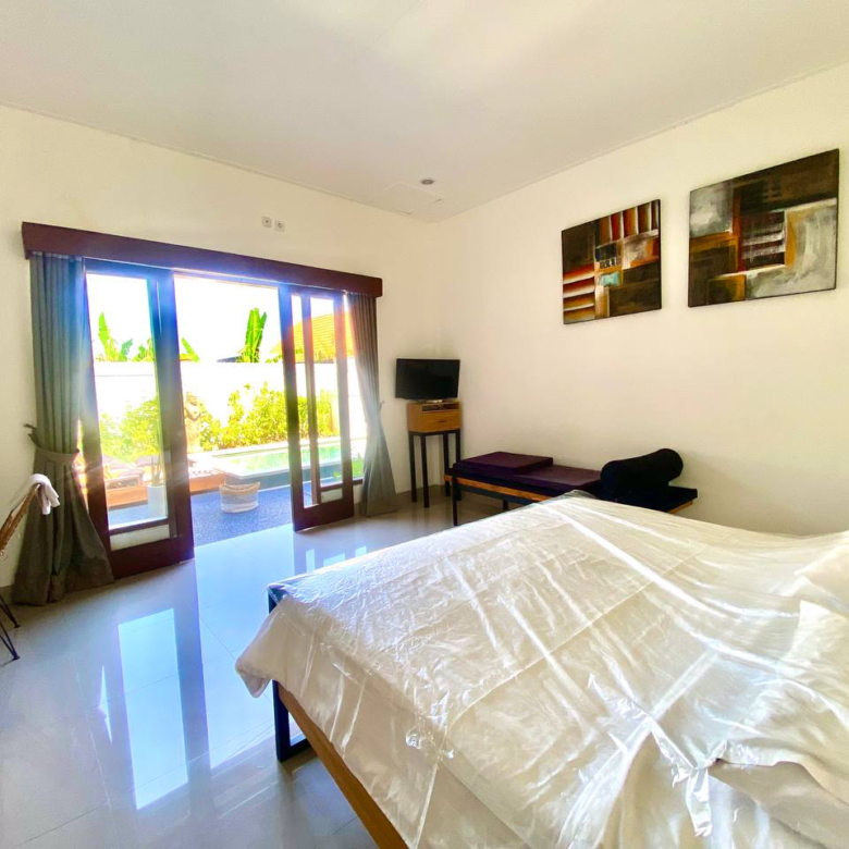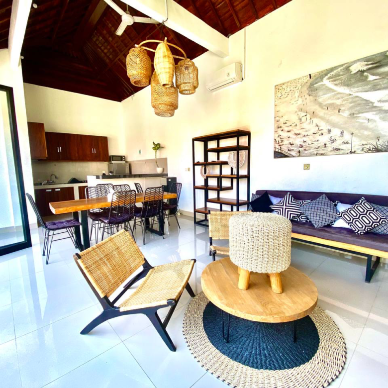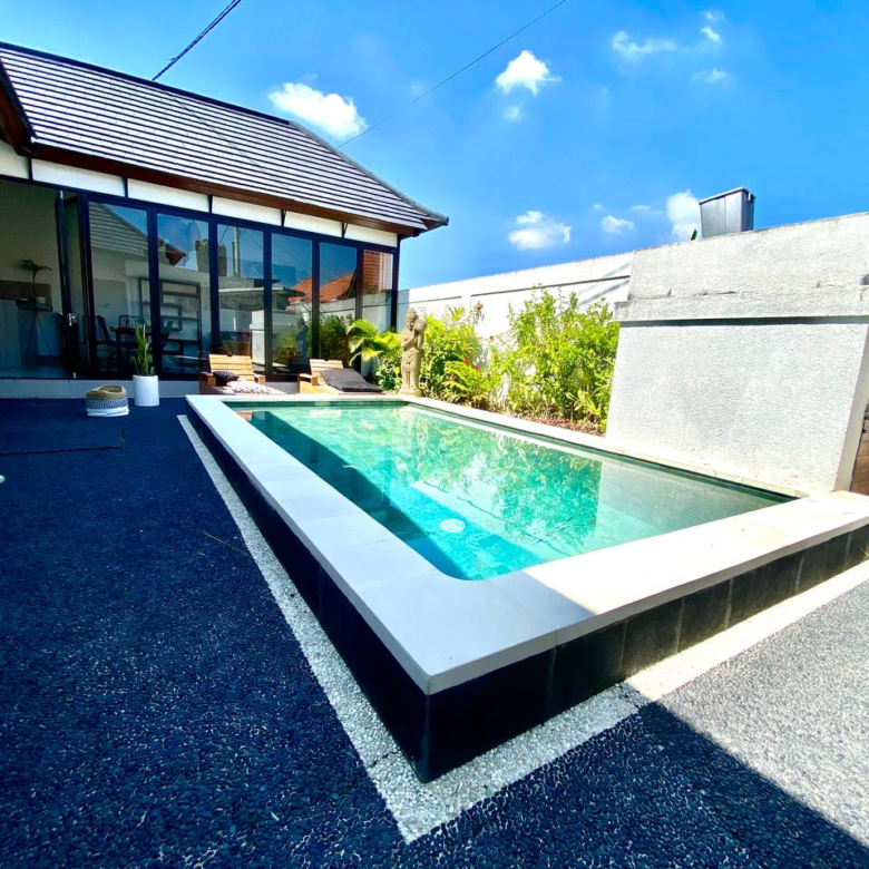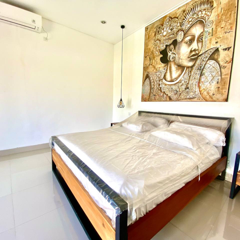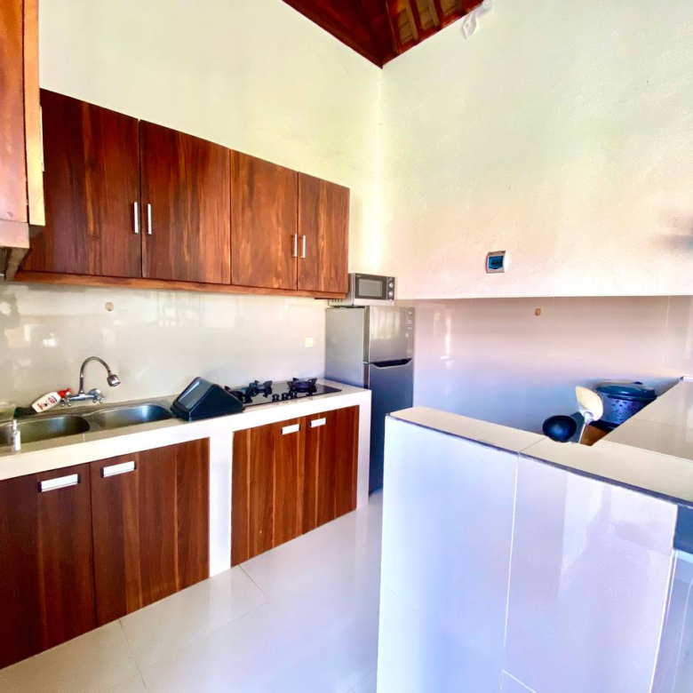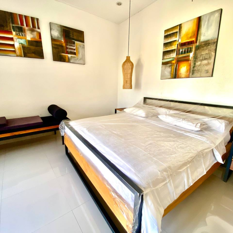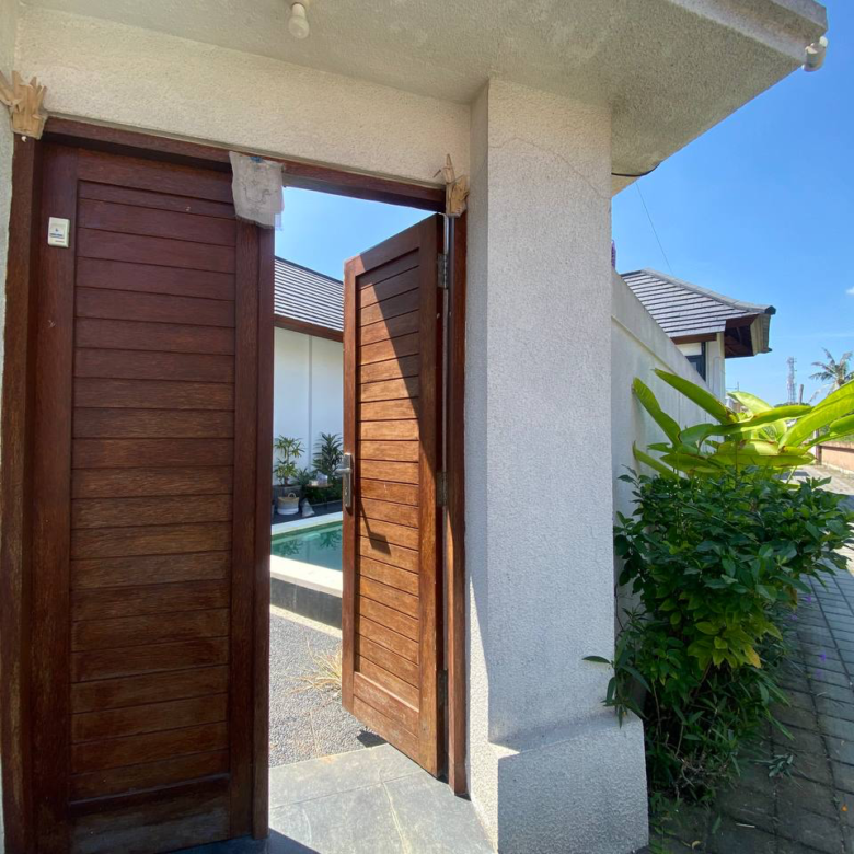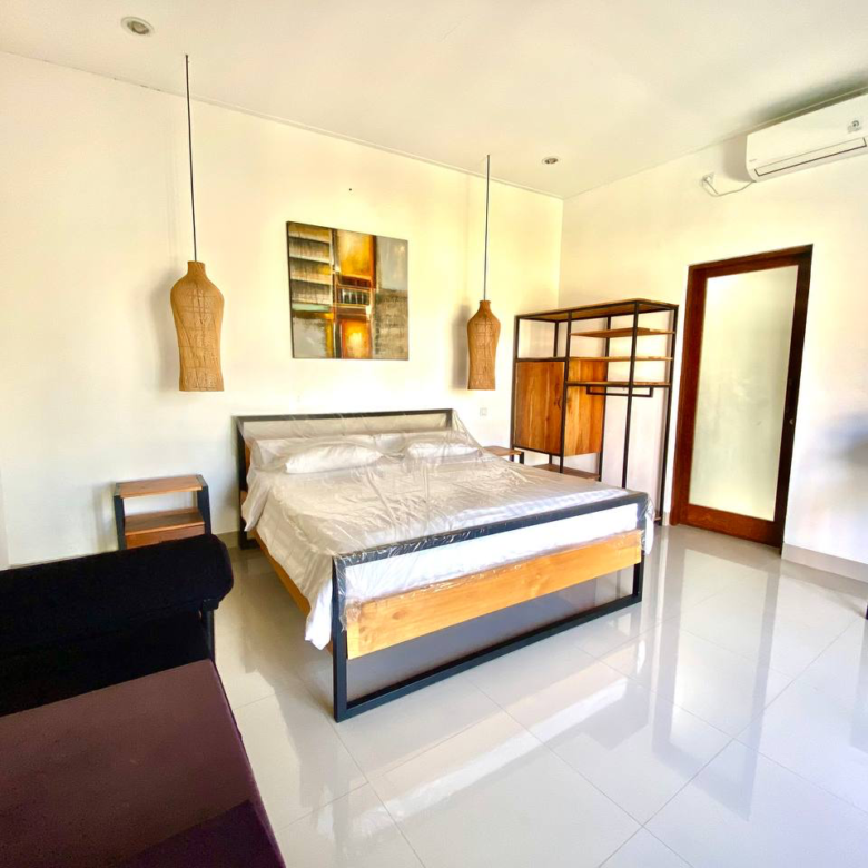 Designed with a semi-industrial style, this villa boasts an enclosed living room and dining room, perfect for both relaxation and entertaining. The property includes an extra room and a refreshing 6×4 meter swimming pool with a stunning ricefield view, providing a tranquil retreat. The villa is equipped with a 9900-watt electricity supply and a reliable water source from a deep well.