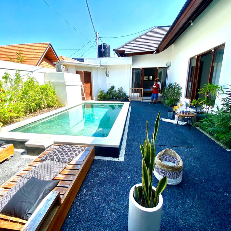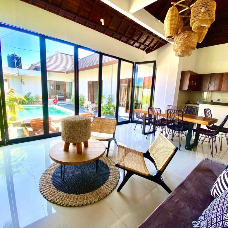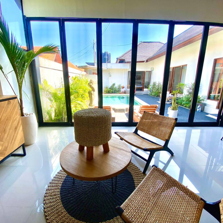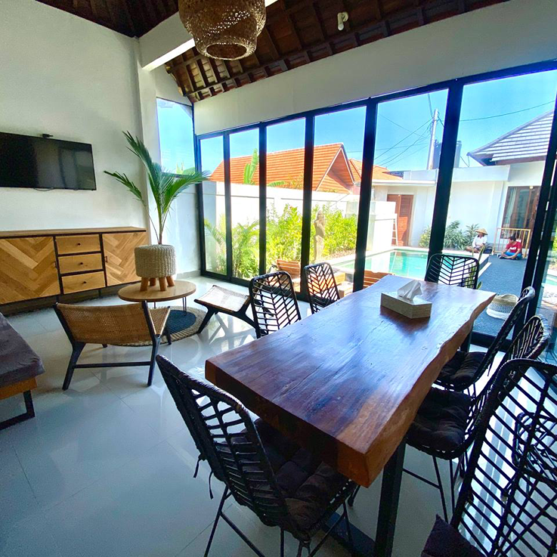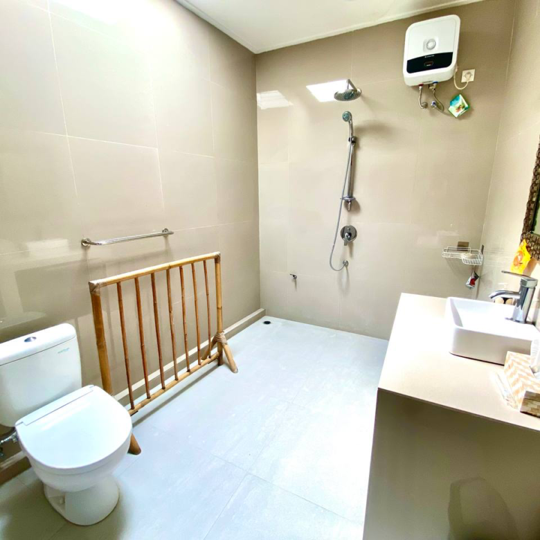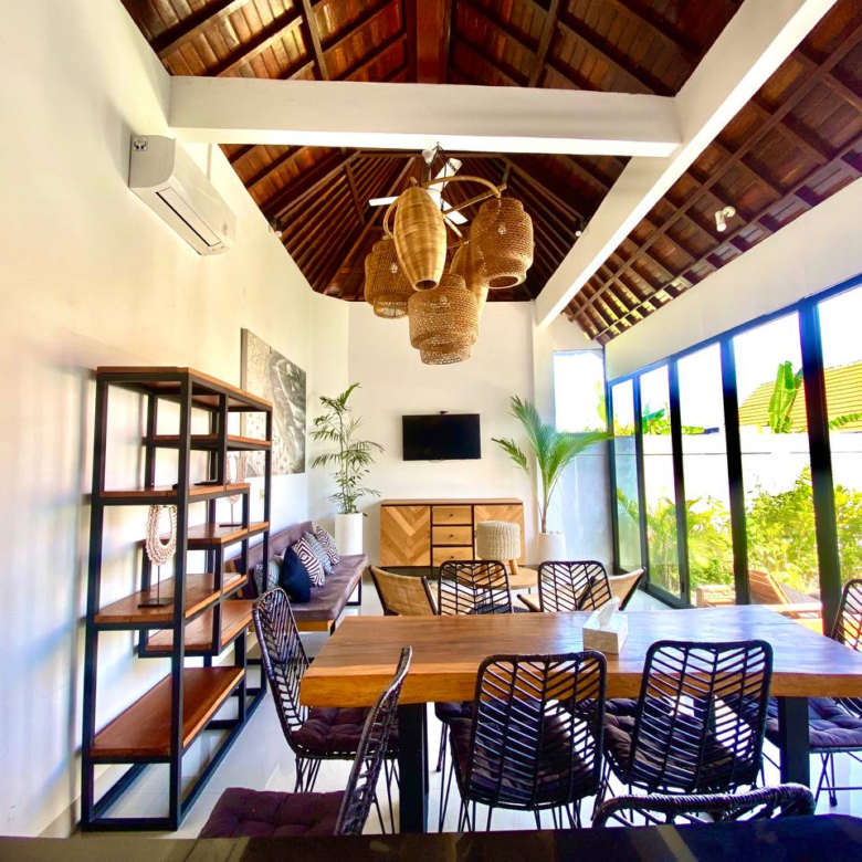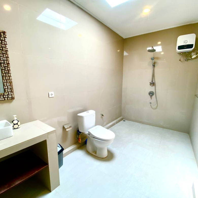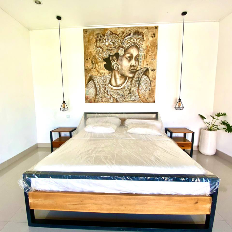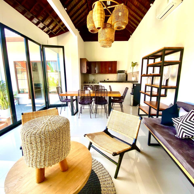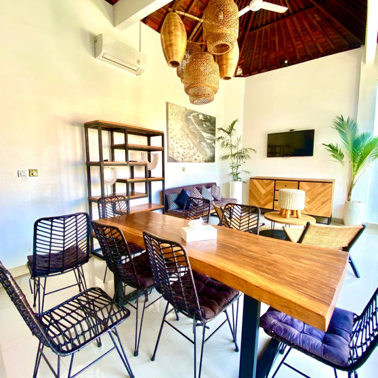Designed with a semi-industrial style, this villa boasts an enclosed living room and dining room, perfect for both relaxation and entertaining. The property includes an extra room and a refreshing 6×4 meter swimming pool with a stunning ricefield view, providing a tranquil retreat. The villa is equipped with a 9900-watt electricity supply and a reliable water source from a deep well.