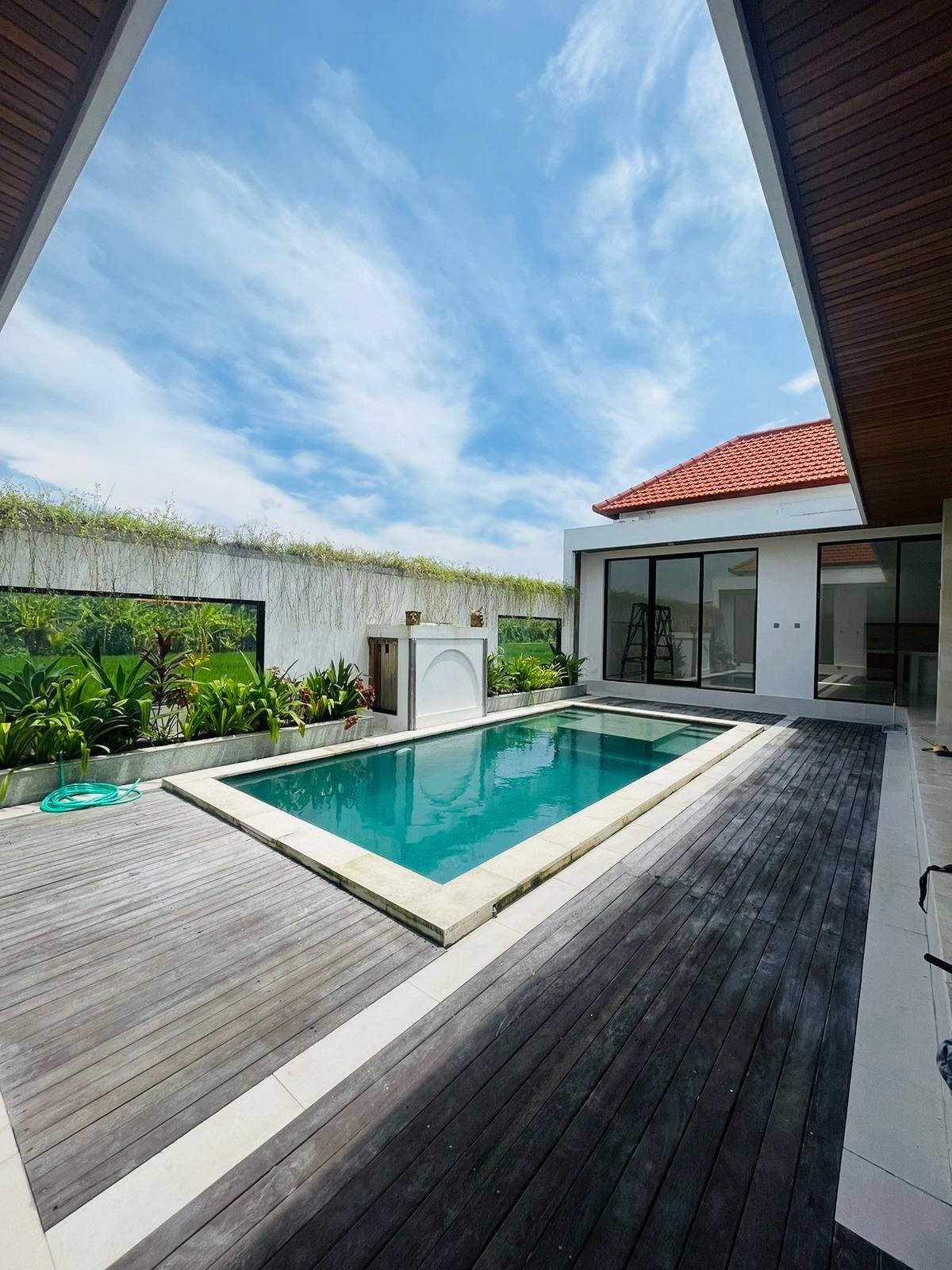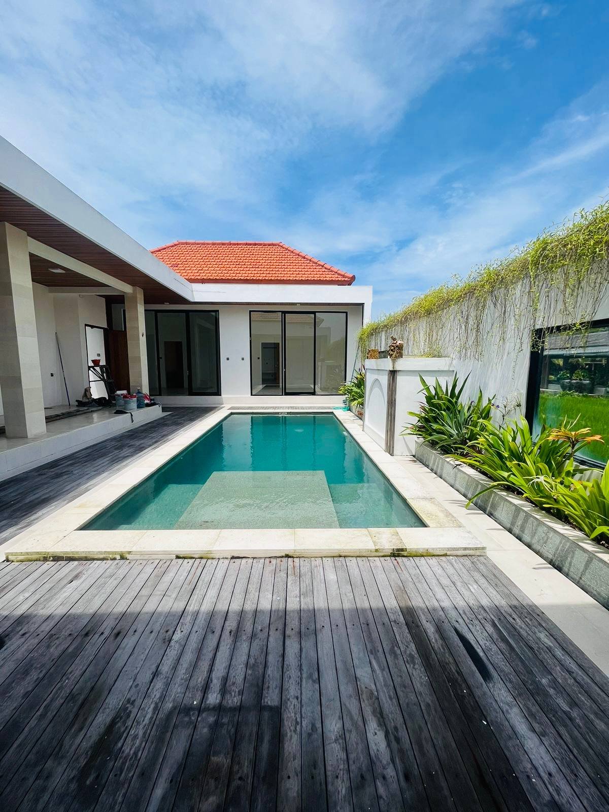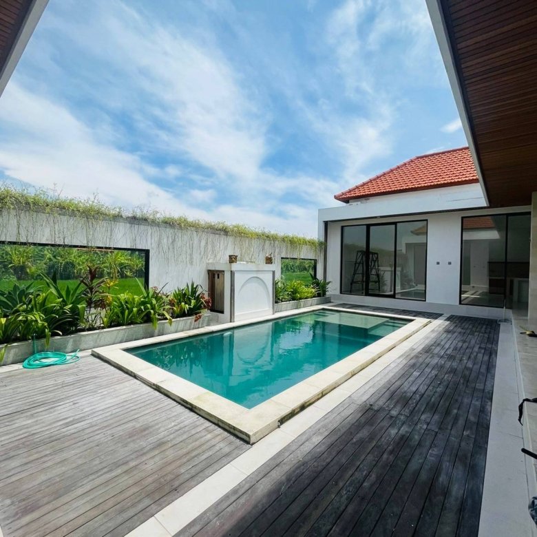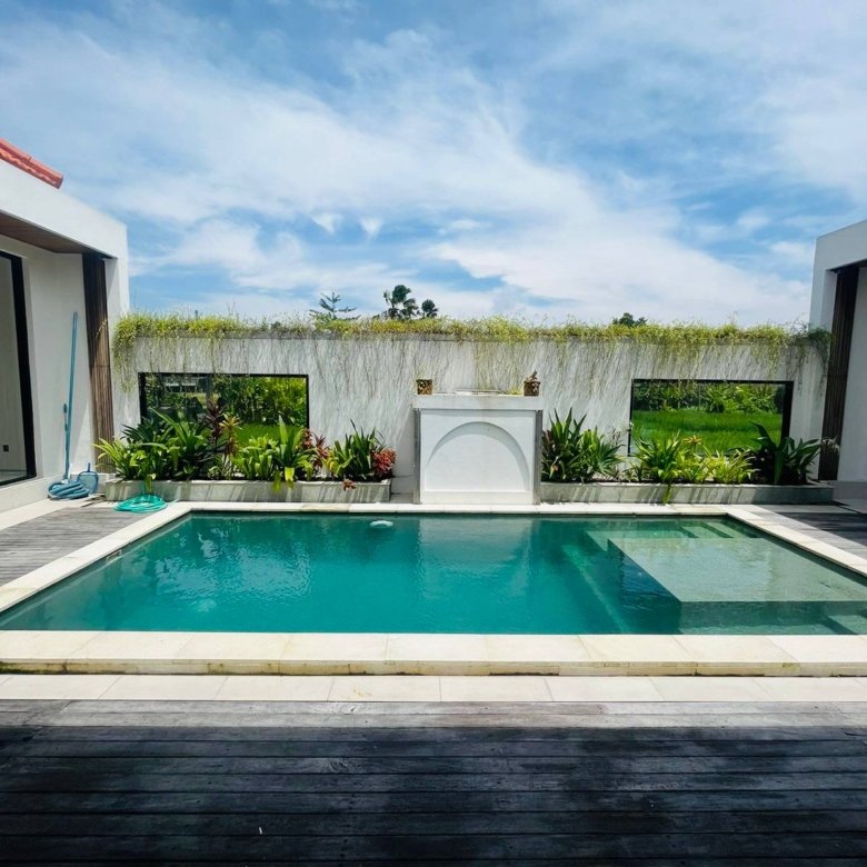 This villa is available for yearly rent or leasehold for 10 to 20 years and is located in the green zone between Umalas and Seminyak. The property offers a relaxing pool view and is perfectly situated in Umalas, very close to viral Seminyak restaurants as well as Seminyak Beach and Batu Belig Beach.