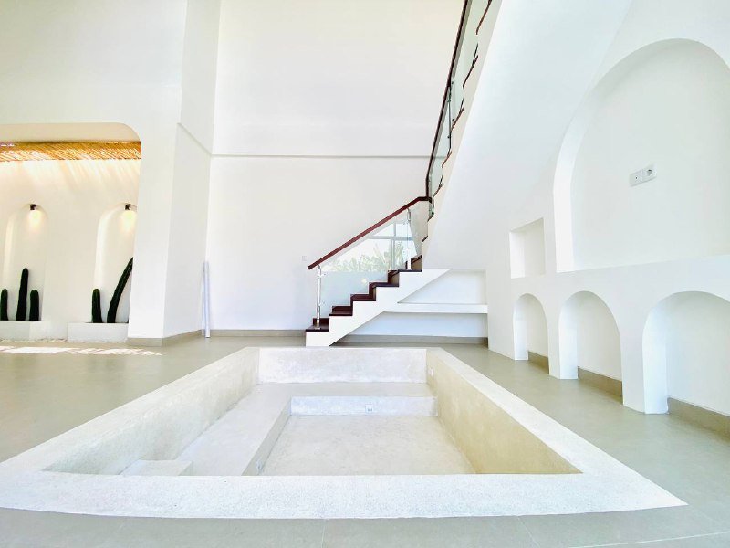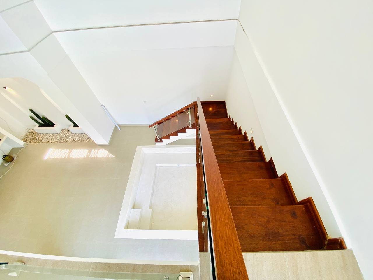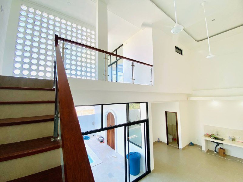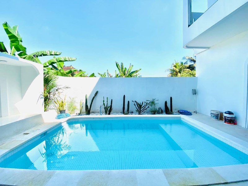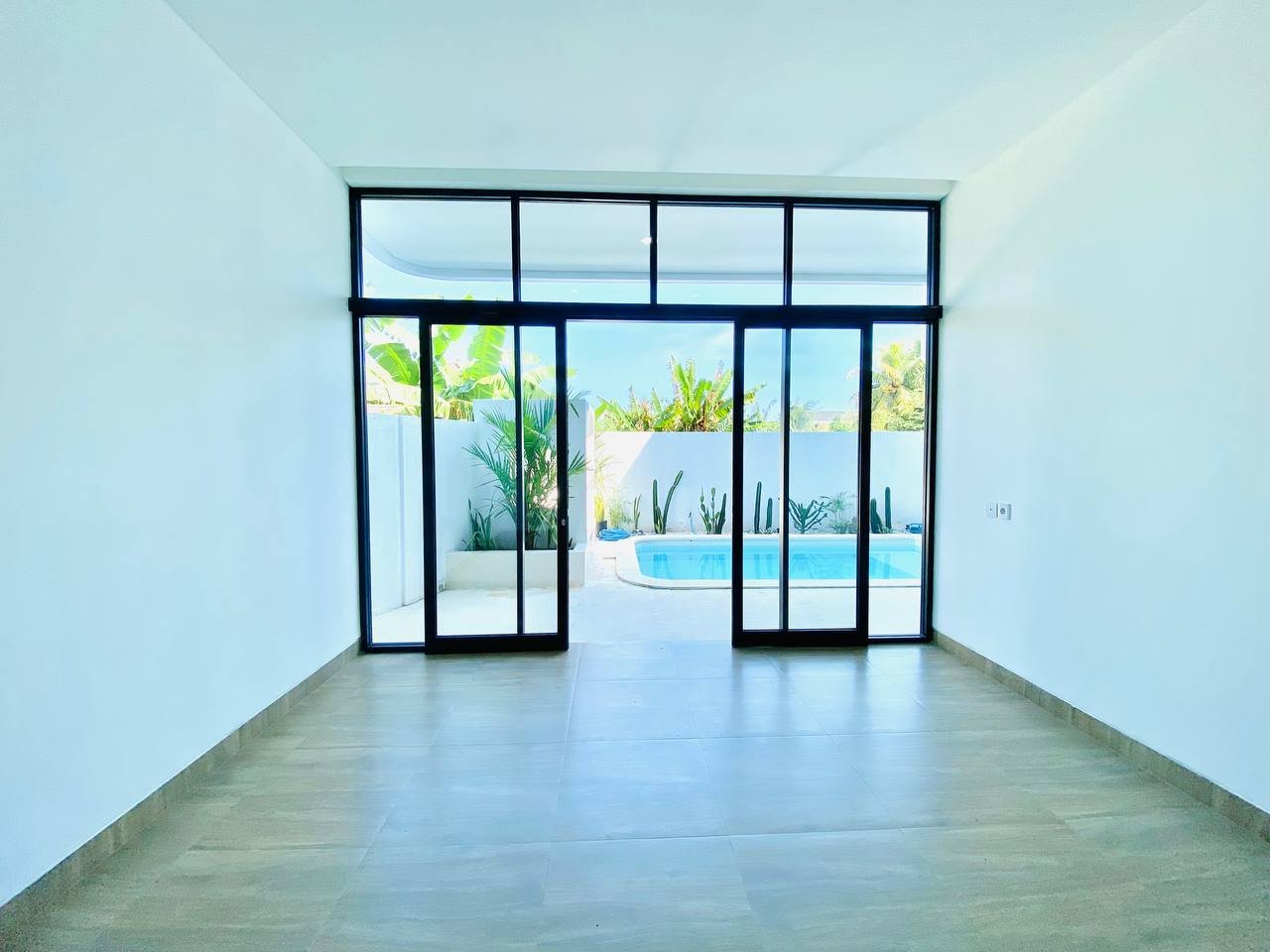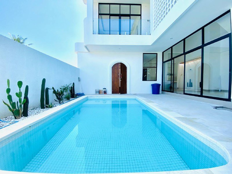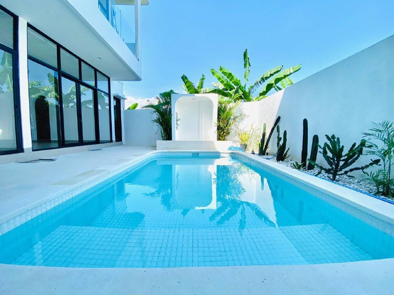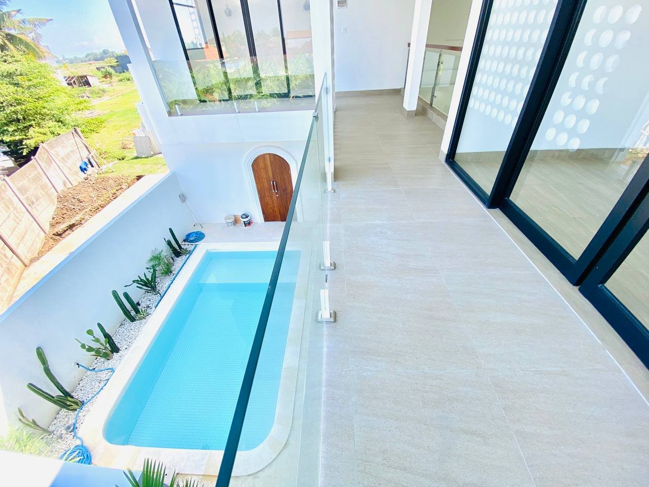 Featuring 3 spacious bedrooms, 3.5 bathrooms, and an enclosed living and dining area. The design is sleek and modern, with thoughtful touches like a mezzanine sofa in the living room and a gazebo, perfect for relaxation.The villa boasts a private 3 x 6-meter swimming pool, providing a serene space for refreshing dips, with a garden view from the second floor adding to the tranquil ambiance. Unfurnished, the villa is equipped with essential amenities including 3 AC units, water heaters, a stove, an exhaust system, and ample storage space. The property is also designed with practicality in mind, offering parking for both a bike and a car, with easy access for vehicles.