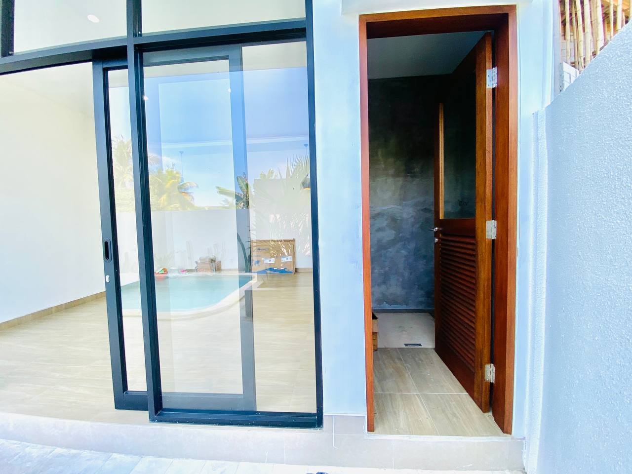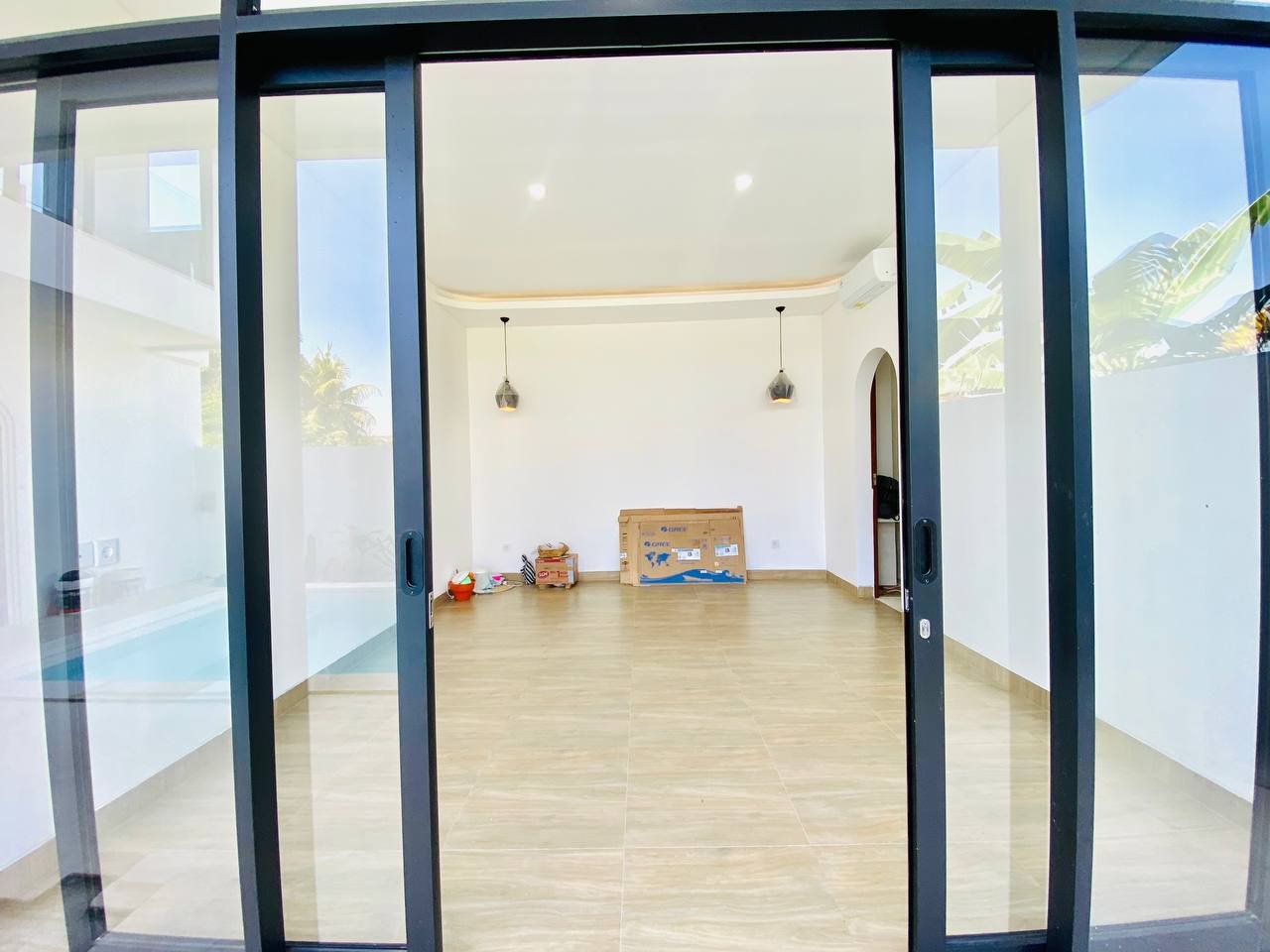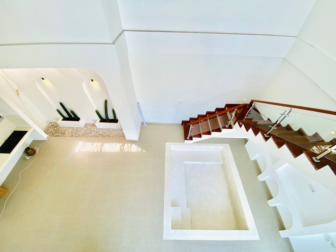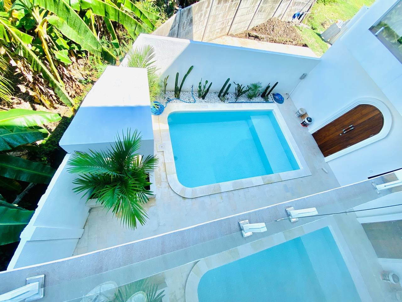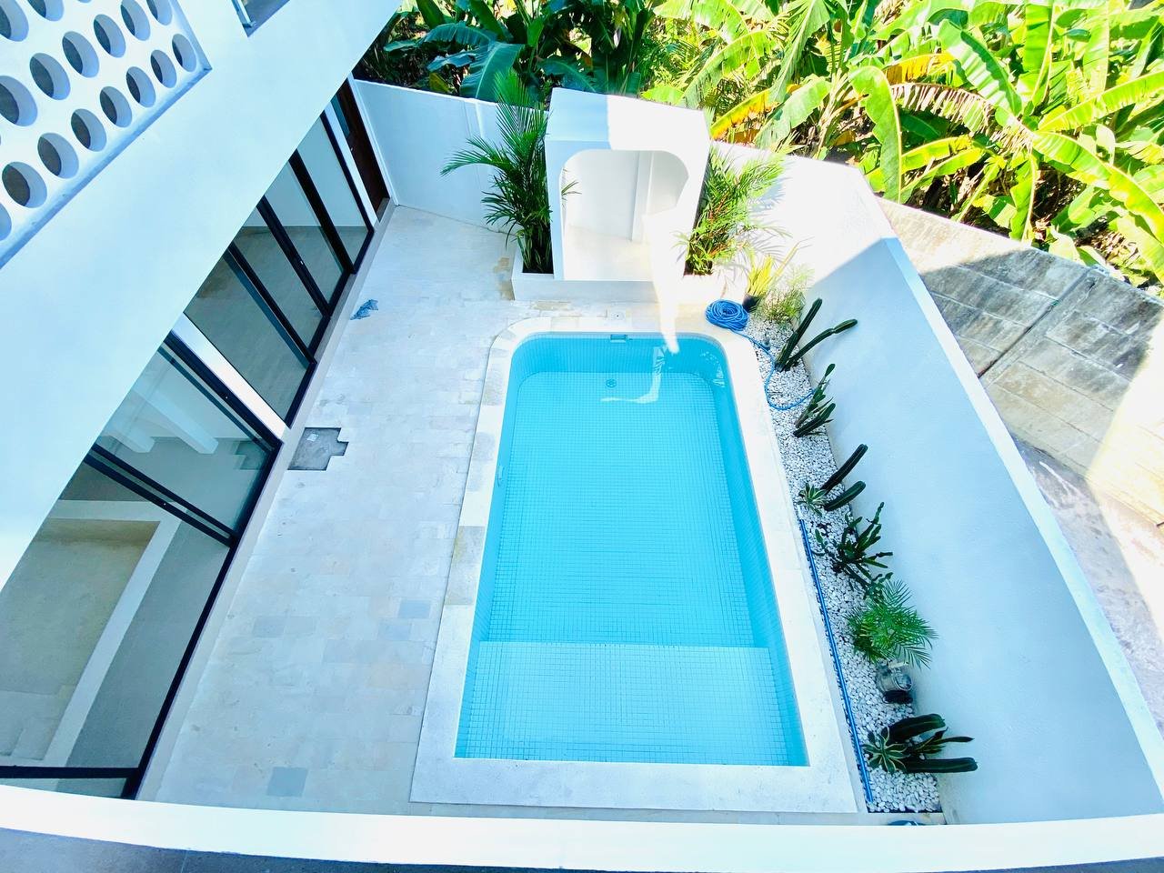 Featuring 3 spacious bedrooms, 3.5 bathrooms, and an enclosed living and dining area. The design is sleek and modern, with thoughtful touches like a mezzanine sofa in the living room and a gazebo, perfect for relaxation.The villa boasts a private 3 x 6-meter swimming pool, providing a serene space for refreshing dips, with a garden view from the second floor adding to the tranquil ambiance. Unfurnished, the villa is equipped with essential amenities including 3 AC units, water heaters, a stove, an exhaust system, and ample storage space. The property is also designed with practicality in mind, offering parking for both a bike and a car, with easy access for vehicles.