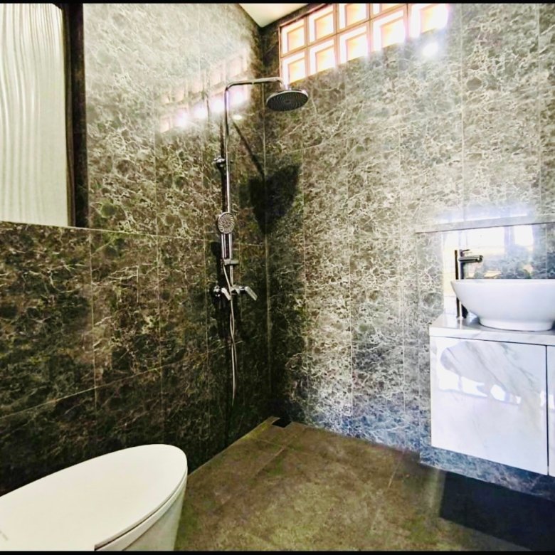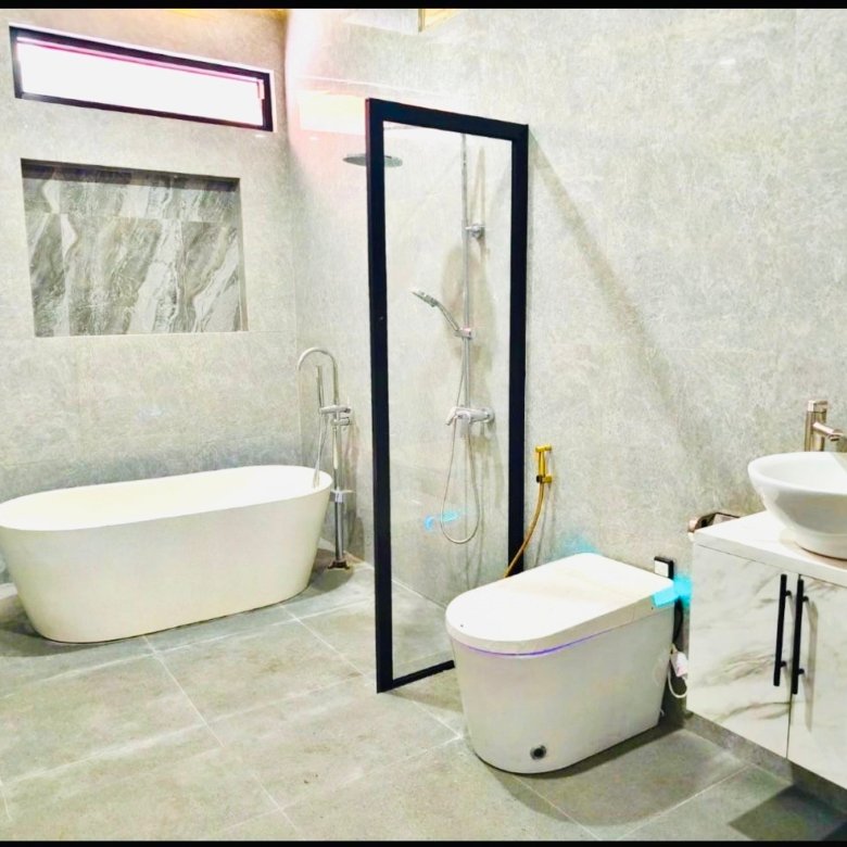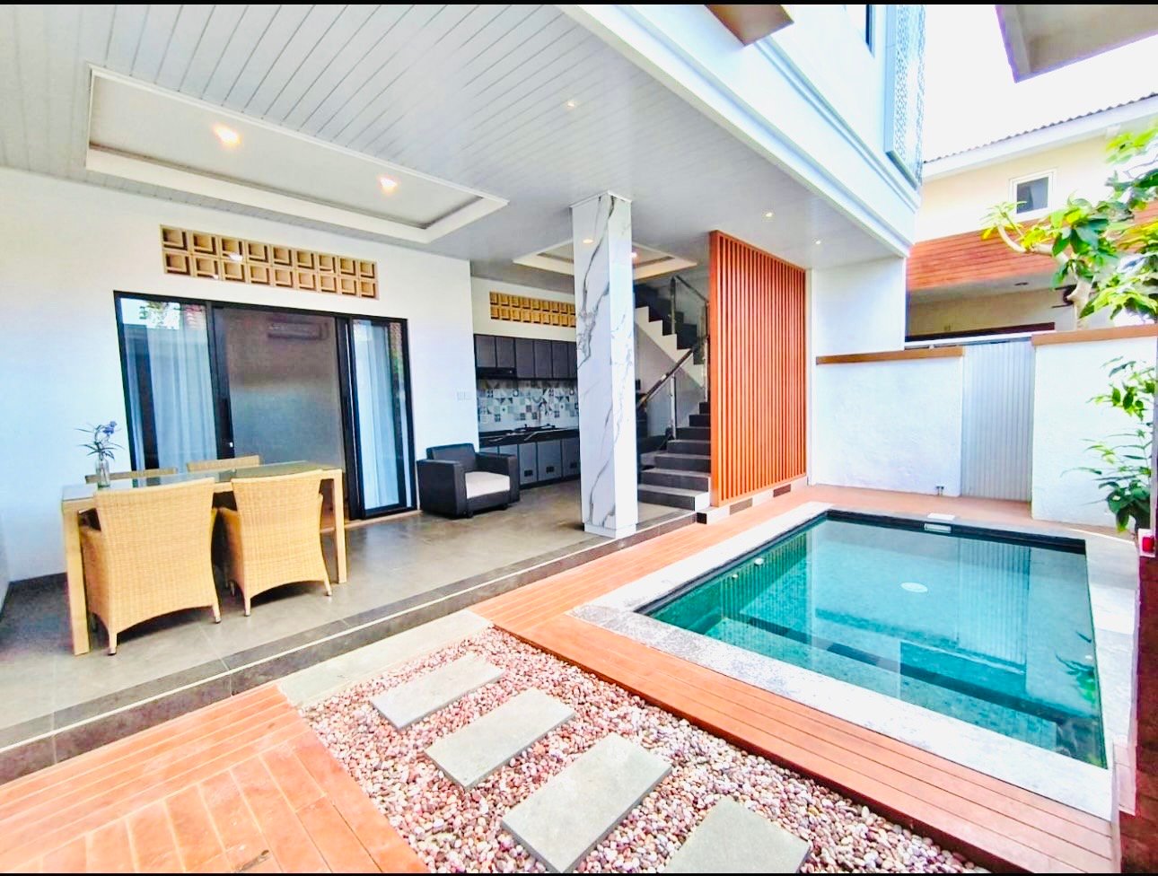 Designed in a modern Balinese style, the property features 3 ensuite bedrooms, each with its own bathroom (one includes a bathtub).
