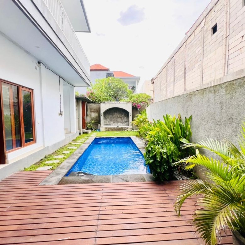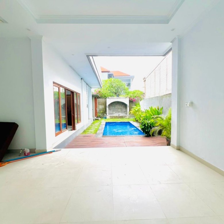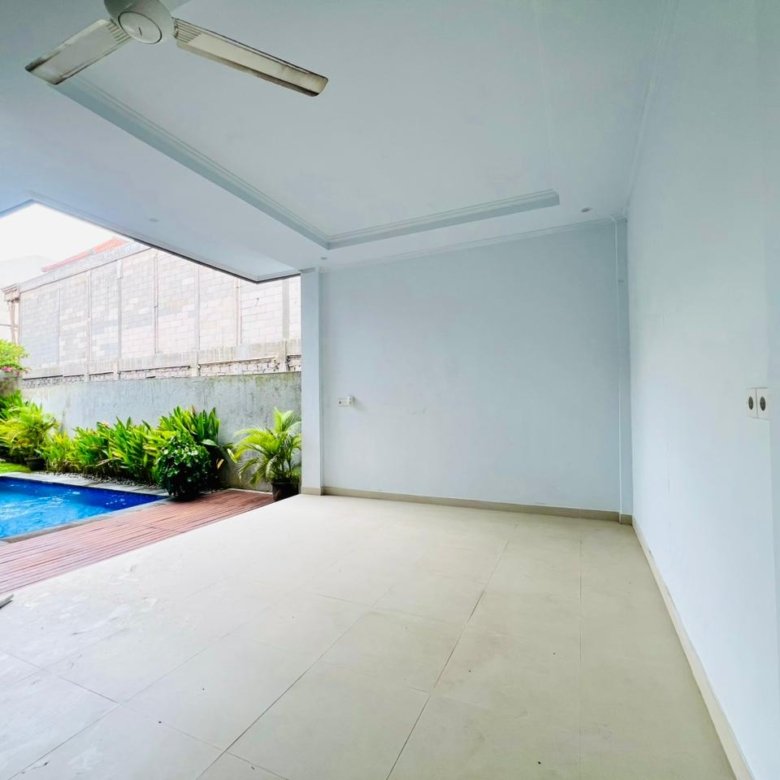 Built on 180 sqm of land, the villa features two levels of spacious living, designed to maximize natural light and airflow throughout the property. The outdoor area includes a 3 x 6 meter private swimming pool, complemented by a small garden and cozy seating area at the end of the pool—perfect for relaxing after a day at the beach. The villa is offered unfurnished, with an open living and kitchen concept, allowing tenants to personalize the space to their taste.