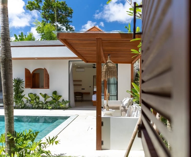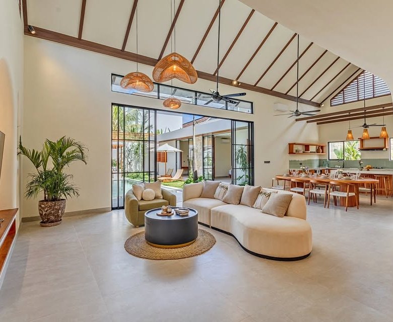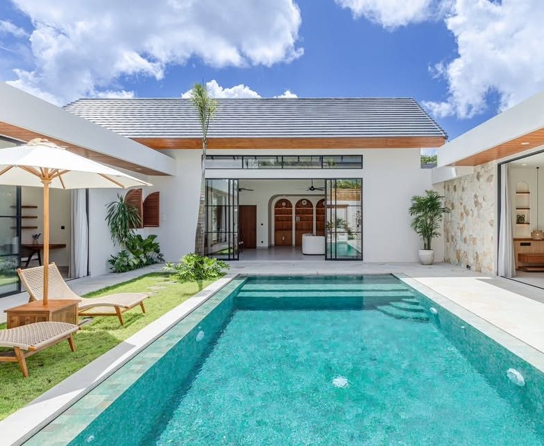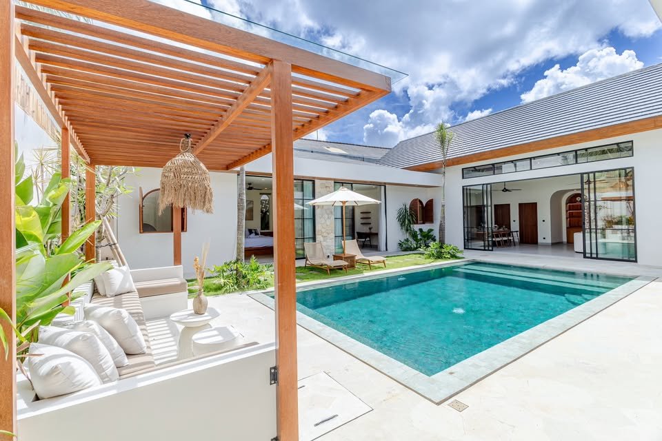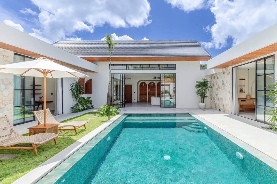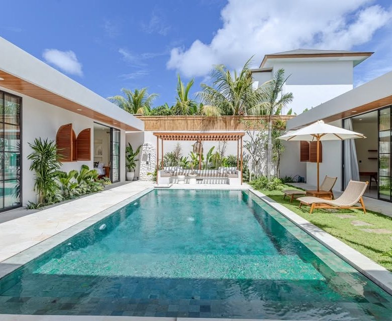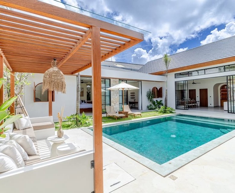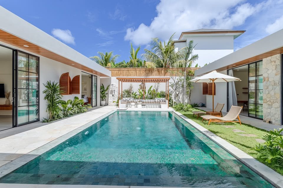 This luxury one-floor villa in the Umalas Kerobokan area is ready for monthly or yearly rent, offering a sophisticated design on a 520 SQM land size complete with a garden and a view of the pool. Perfectly situated in the vibrant heart of Canggu (Tibubeneng), this location offers unparalleled access to Bali’s most sought-after lifestyle destinations, all reachable within a few minutes by scooter. Daily essentials are effortless to manage with local minimarkets just 1–2 minutes away and professional medical facilities like Canggu Medical reachable in under 5 minutes. Food enthusiasts will thrive here, as iconic cafes such as Milk & Madu and a diverse array of international restaurants are a quick 3–5 minute ride from your doorstep. For those seeking the ultimate island vibe, the world-famous Berawa Beach is only 6–8 minutes away, placing you at the epicenter of premier social scenes like Finns Beach Club and Atlas Beach Fest, as well as the area’s most popular nightlife spots.