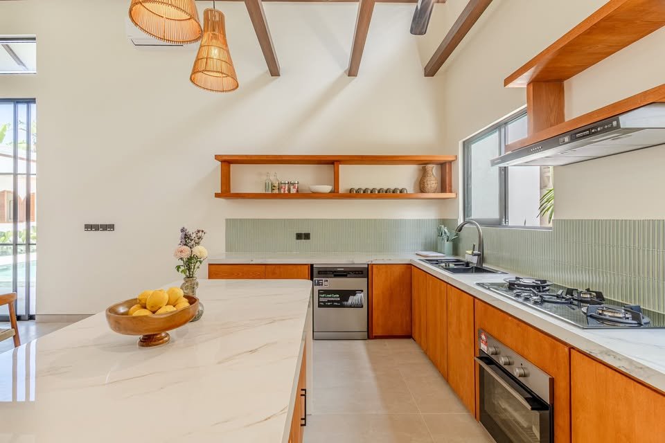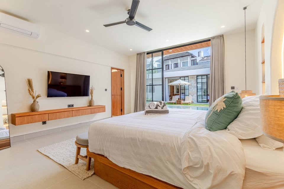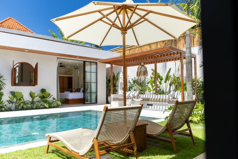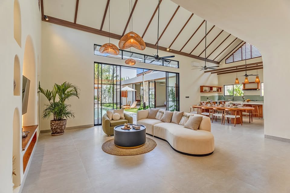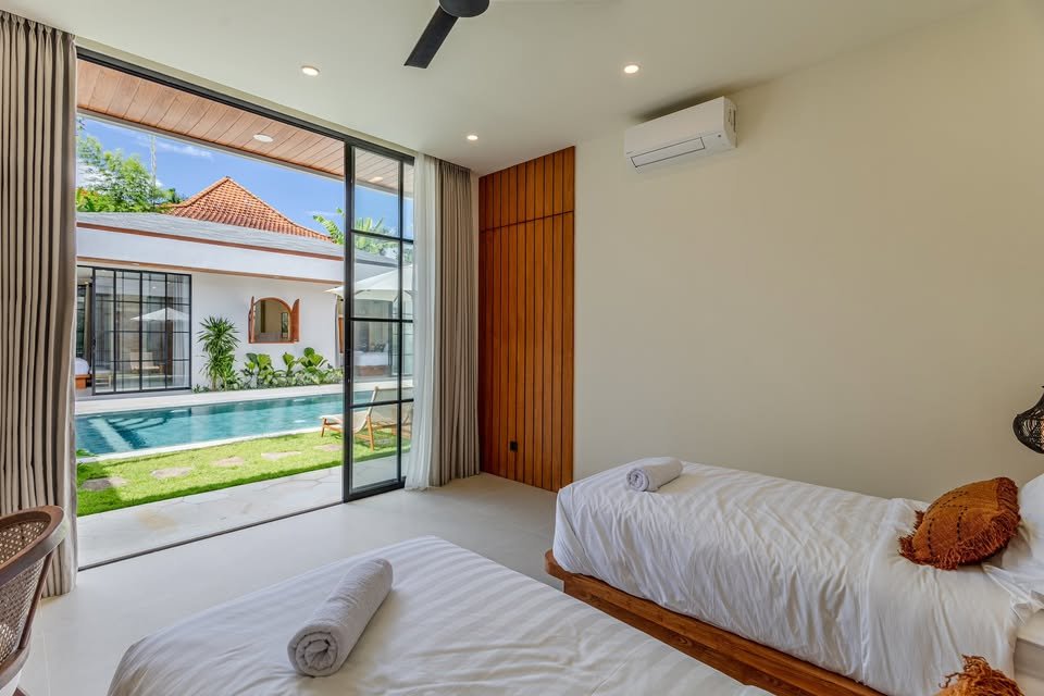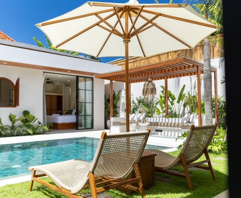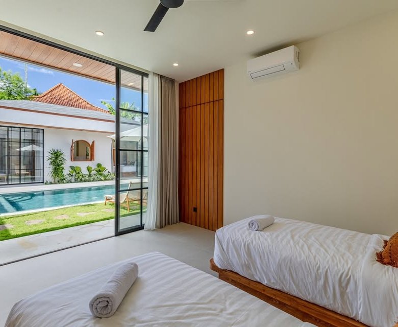 This luxury one-floor villa in the Umalas Kerobokan area is ready for monthly or yearly rent, offering a sophisticated design on a 520 SQM land size complete with a garden and a view of the pool. Perfectly situated in the vibrant heart of Canggu (Tibubeneng), this location offers unparalleled access to Bali’s most sought-after lifestyle destinations, all reachable within a few minutes by scooter. Daily essentials are effortless to manage with local minimarkets just 1–2 minutes away and professional medical facilities like Canggu Medical reachable in under 5 minutes. Food enthusiasts will thrive here, as iconic cafes such as Milk & Madu and a diverse array of international restaurants are a quick 3–5 minute ride from your doorstep. For those seeking the ultimate island vibe, the world-famous Berawa Beach is only 6–8 minutes away, placing you at the epicenter of premier social scenes like Finns Beach Club and Atlas Beach Fest, as well as the area’s most popular nightlife spots.