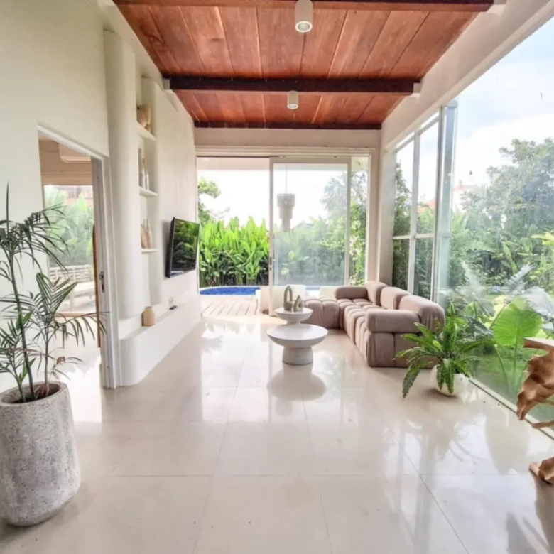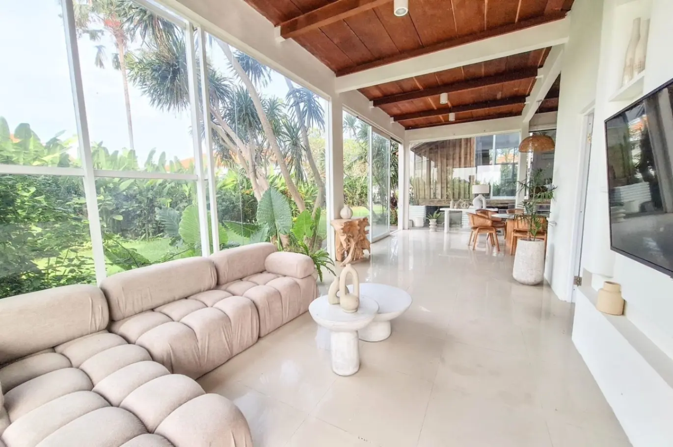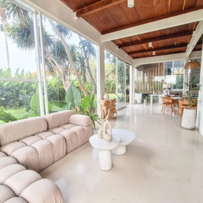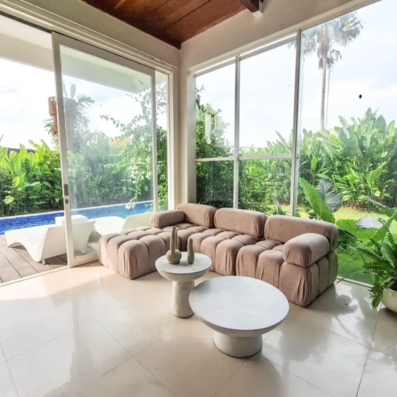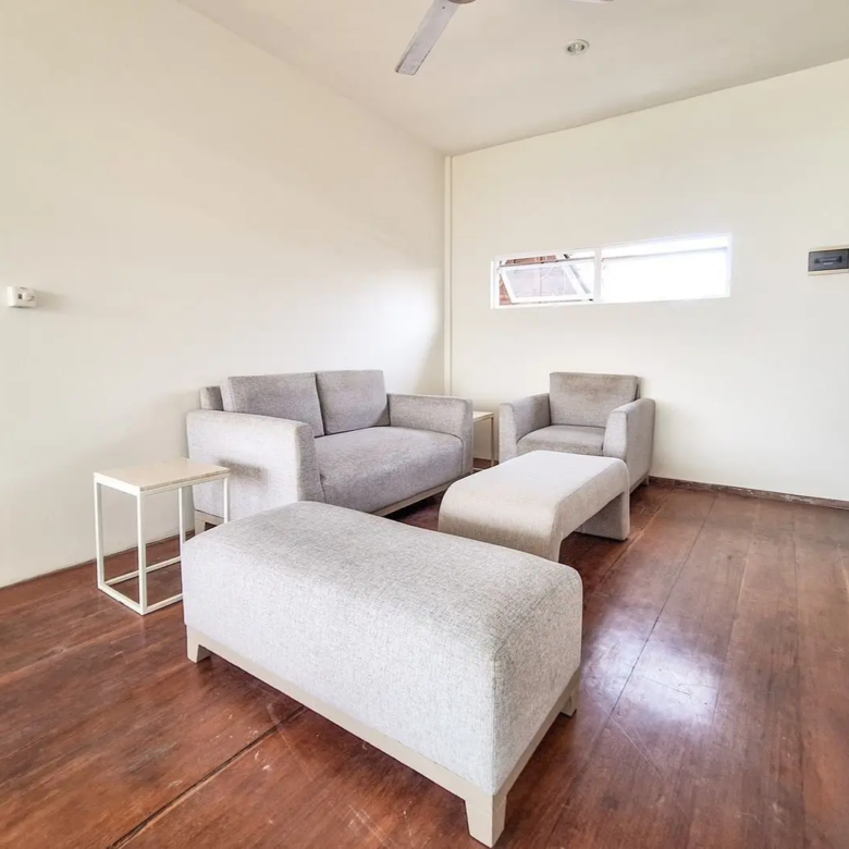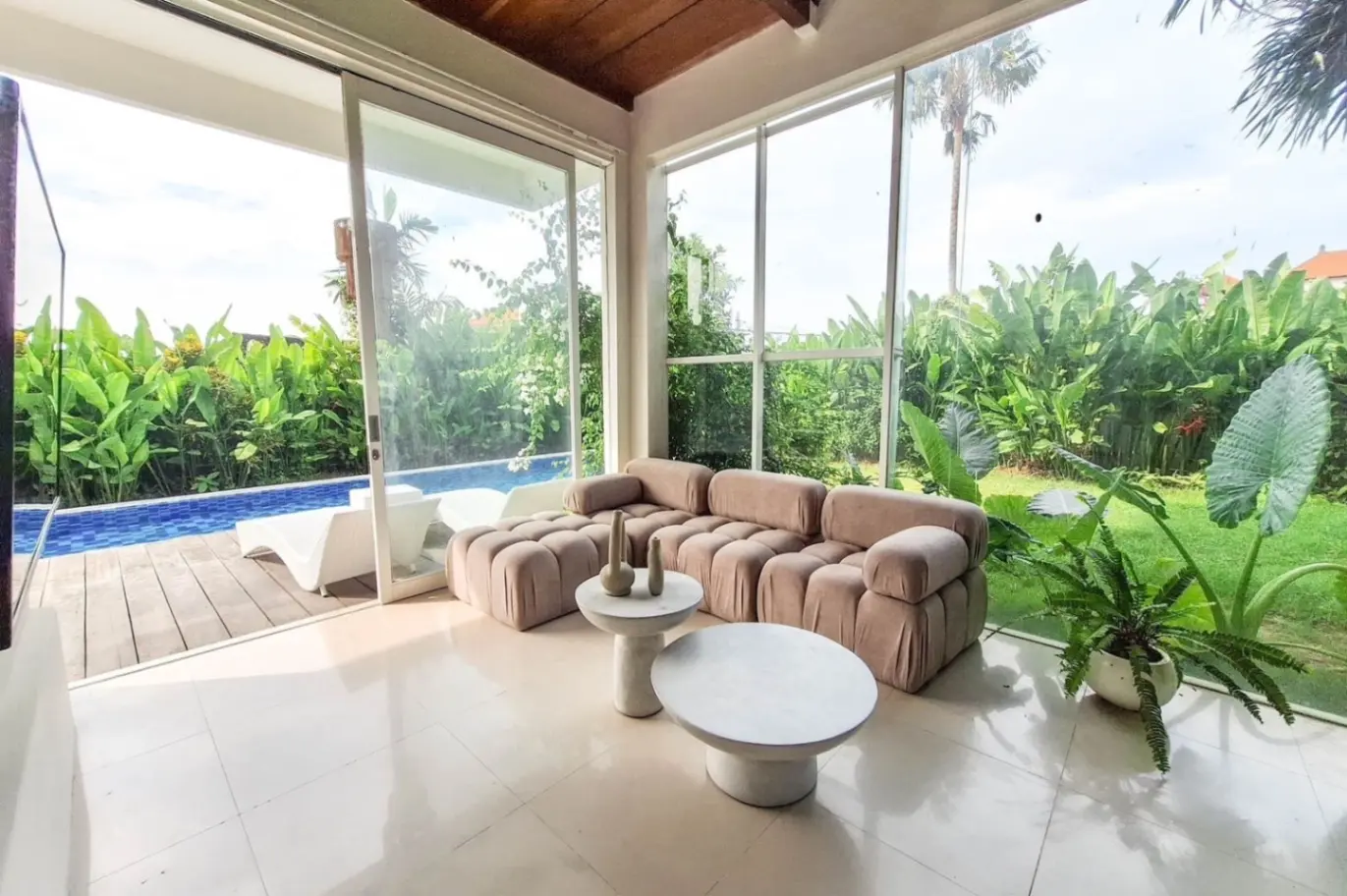 This stunning 4-bedroom modern villa is available for a minimum one-year yearly rent in the peaceful Pererenan Sempol Tiying Tutul area. With a comfortable design perfect for families with small children, the property offers a beautiful view of both a private pool and scenic rice fields. Its location is ideal, being close to popular spots like Tony’s New York Pizza Canggu and Elite Fit gym, and just a short six-minute bike ride from Pererenan Beach.