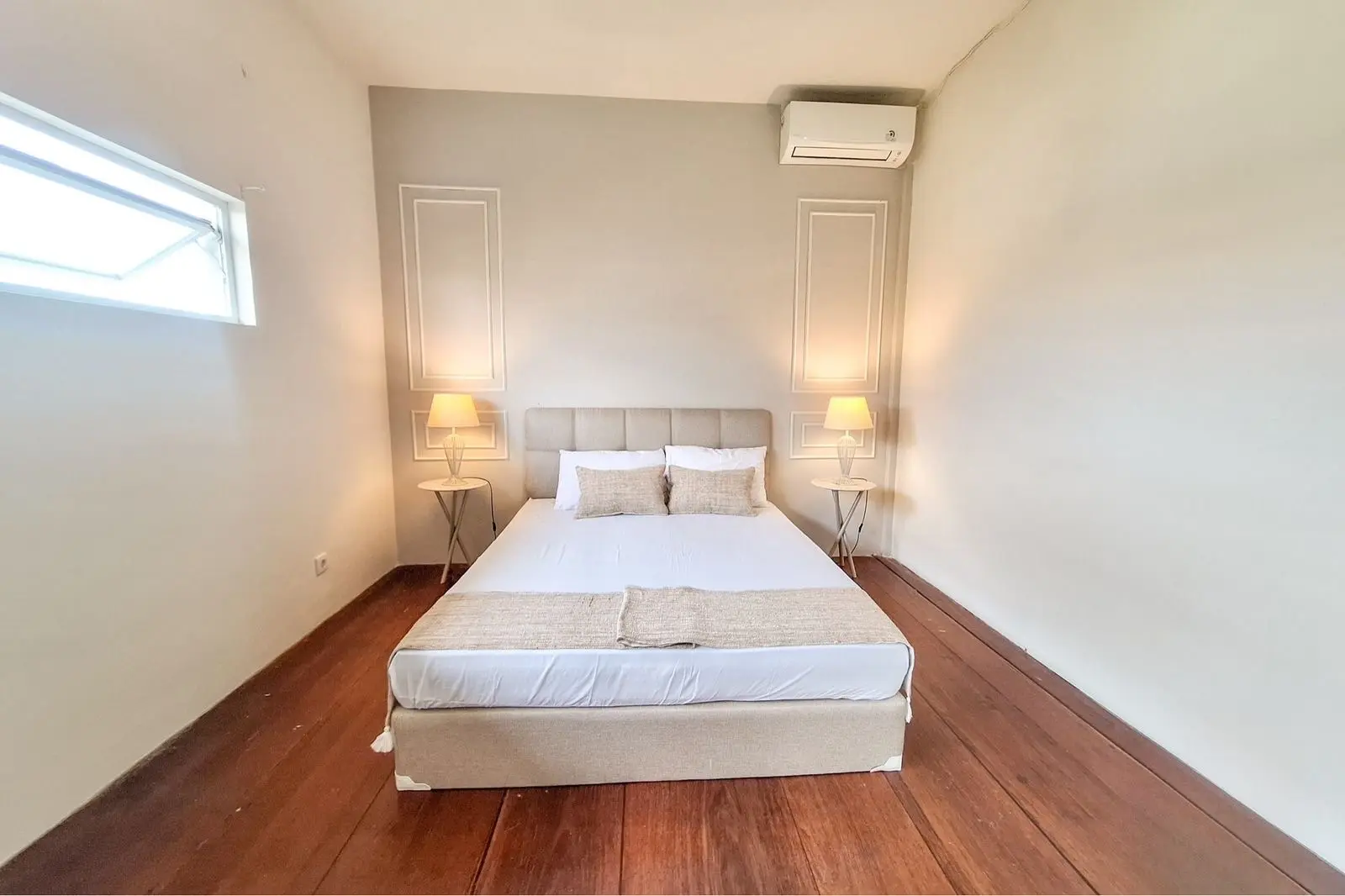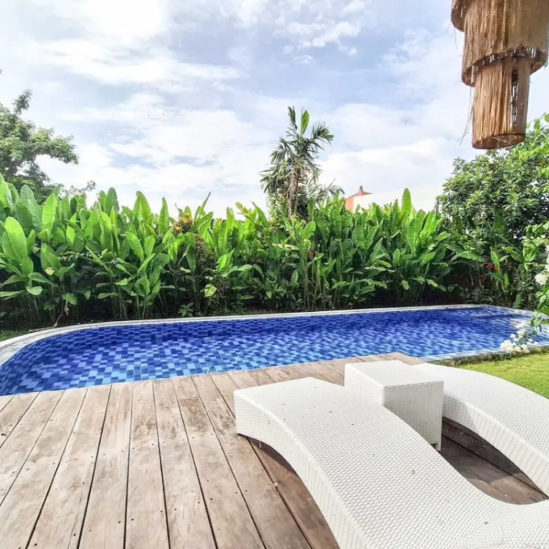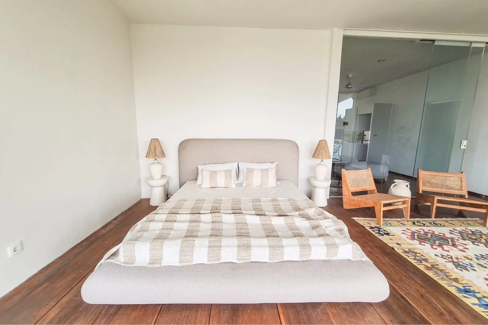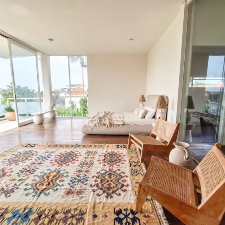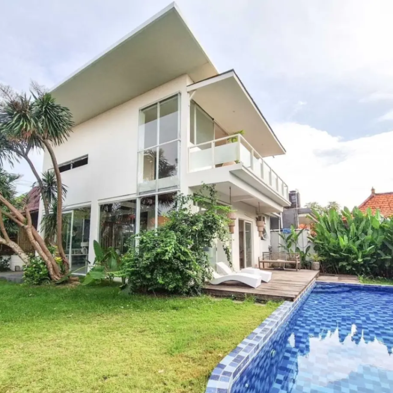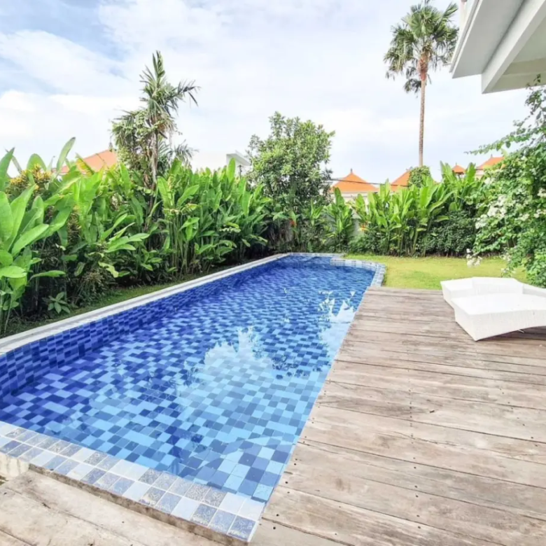 This stunning 4-bedroom modern villa is available for a minimum one-year yearly rent in the peaceful Pererenan Sempol Tiying Tutul area. With a comfortable design perfect for families with small children, the property offers a beautiful view of both a private pool and scenic rice fields. Its location is ideal, being close to popular spots like Tony’s New York Pizza Canggu and Elite Fit gym, and just a short six-minute bike ride from Pererenan Beach.