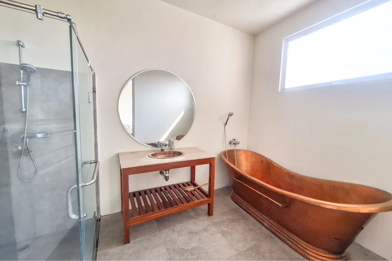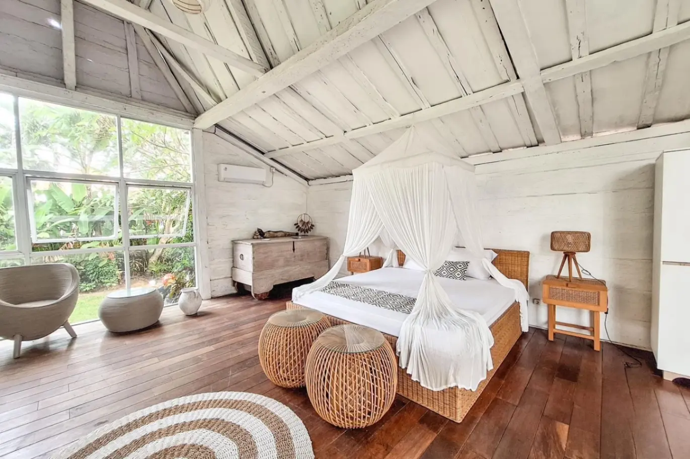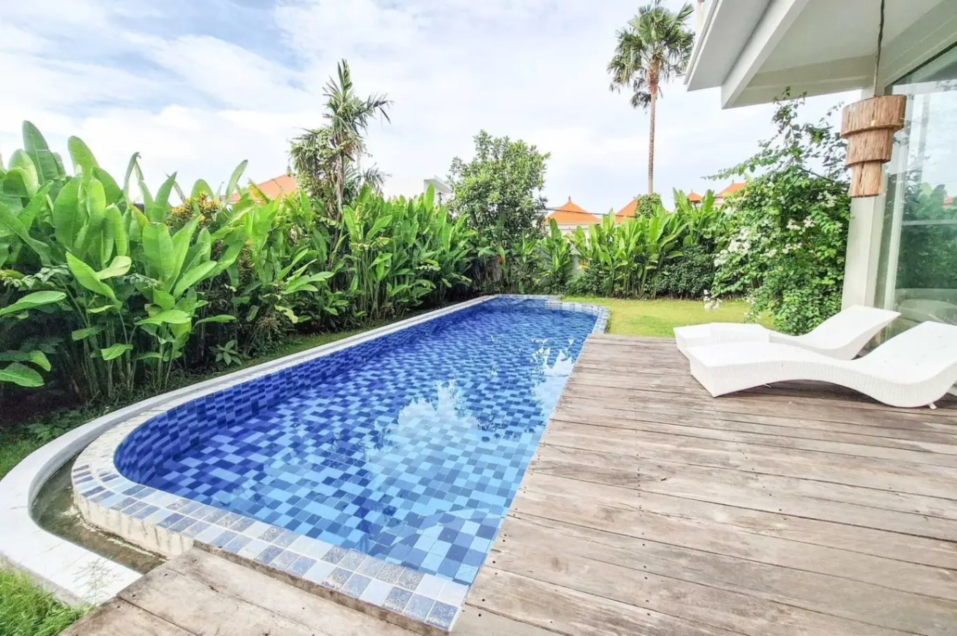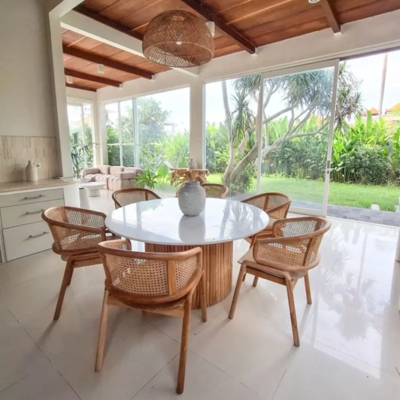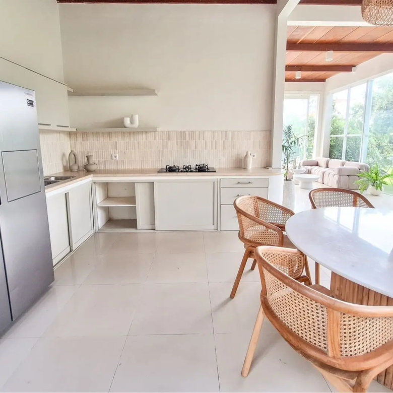 This stunning 4-bedroom modern villa is available for a minimum one-year yearly rent in the peaceful Pererenan Sempol Tiying Tutul area. With a comfortable design perfect for families with small children, the property offers a beautiful view of both a private pool and scenic rice fields. Its location is ideal, being close to popular spots like Tony’s New York Pizza Canggu and Elite Fit gym, and just a short six-minute bike ride from Pererenan Beach.