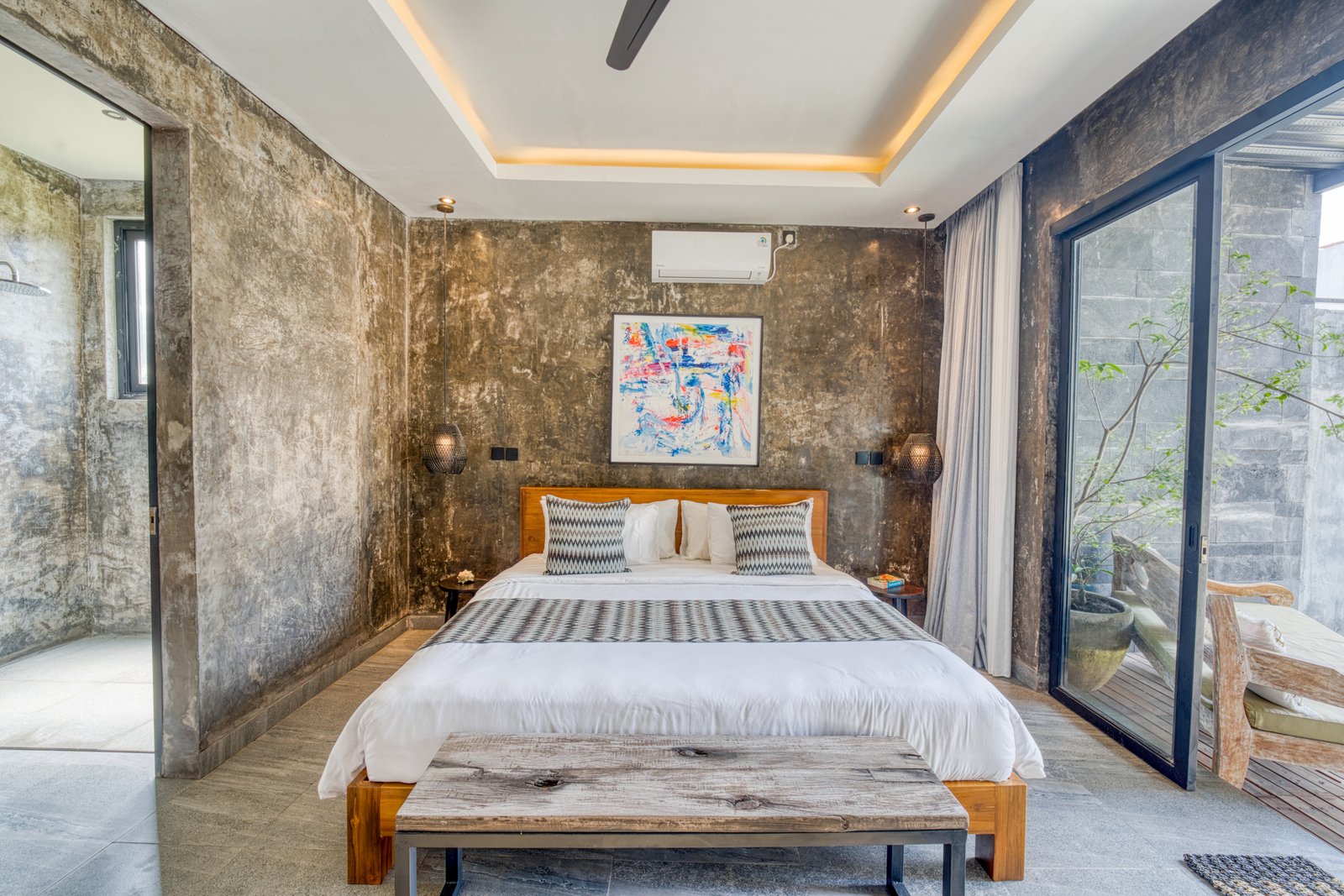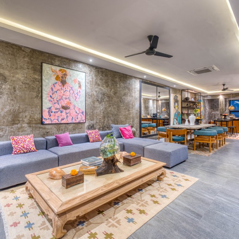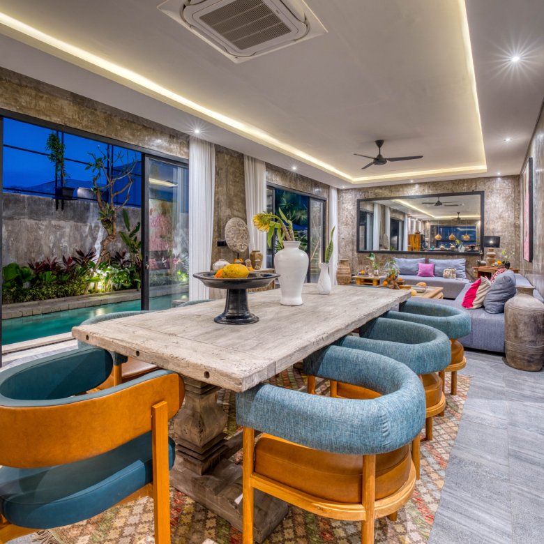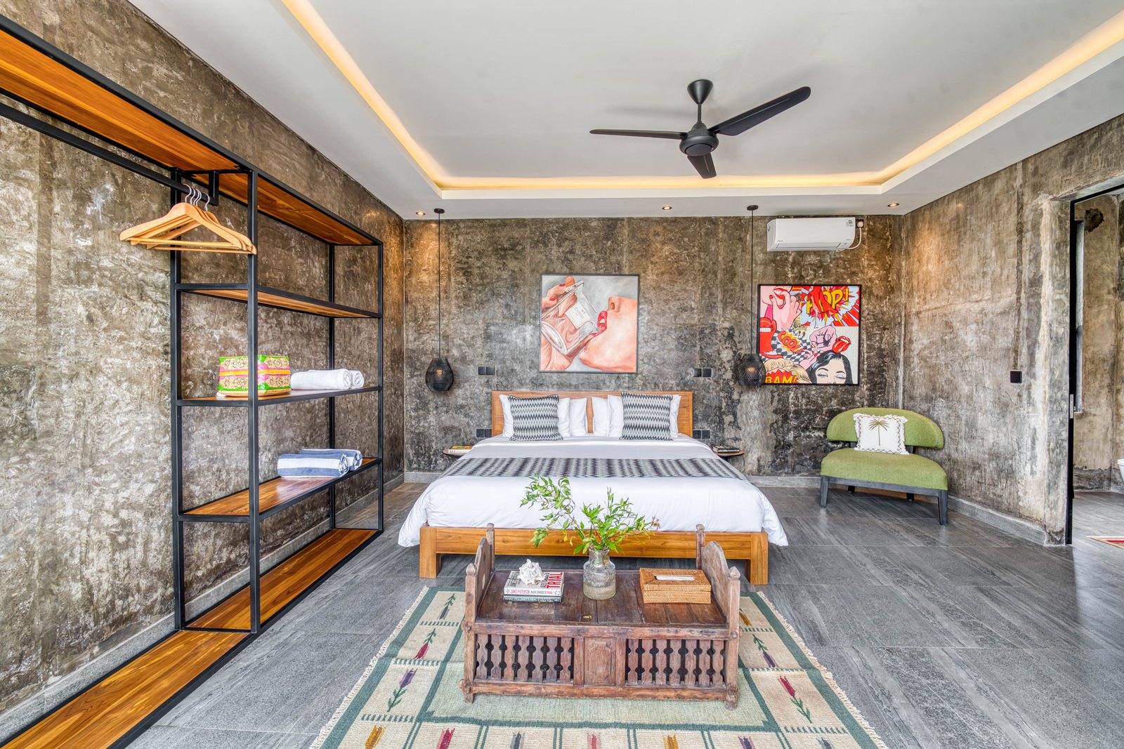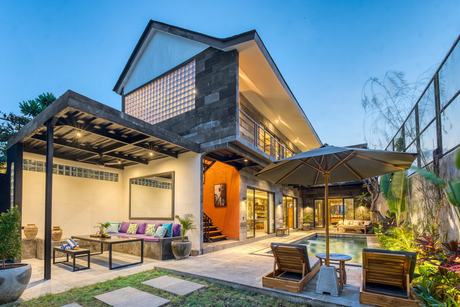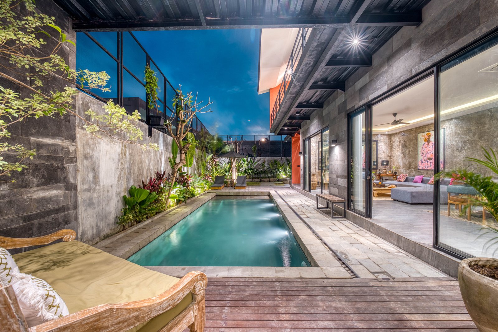 Modern industrial-tropical style, fully-furnished 5 bedroom luxury villa in the heart of Berawa, 5mins from the beach Very quiet area of Berawa, surrounded by rice fields, in walking distance to restaurants, beach clubs, yoga studios and gyms in close proximity to international schools, padel and tennis courts.
