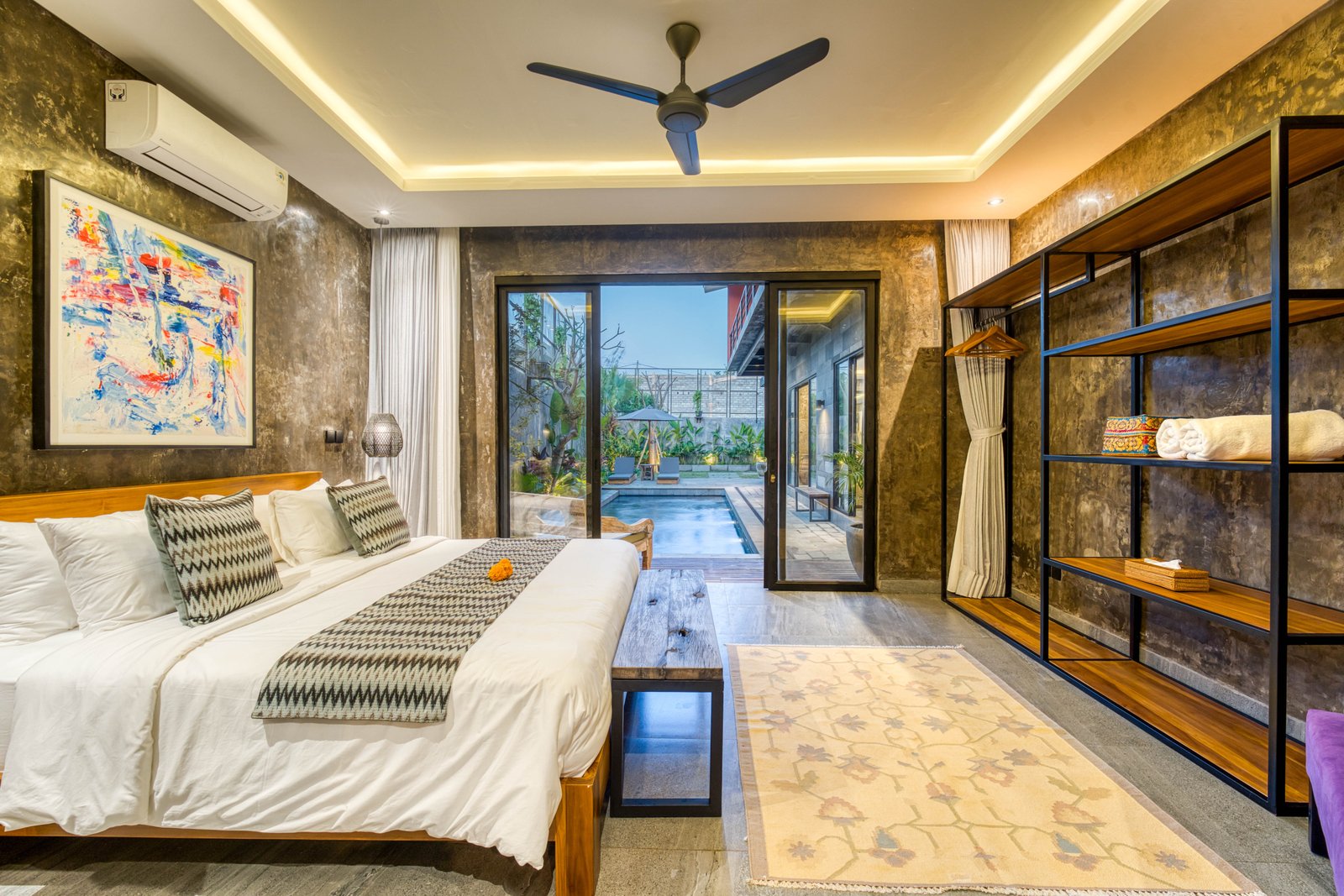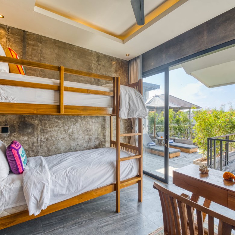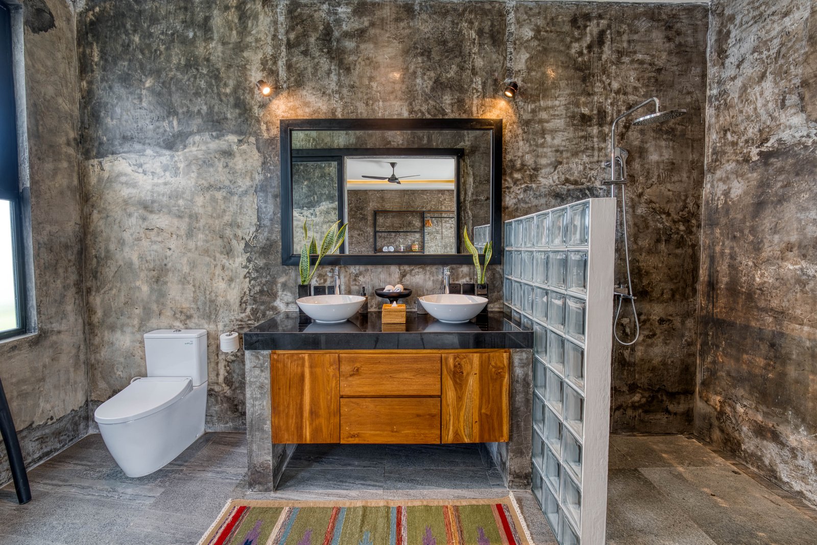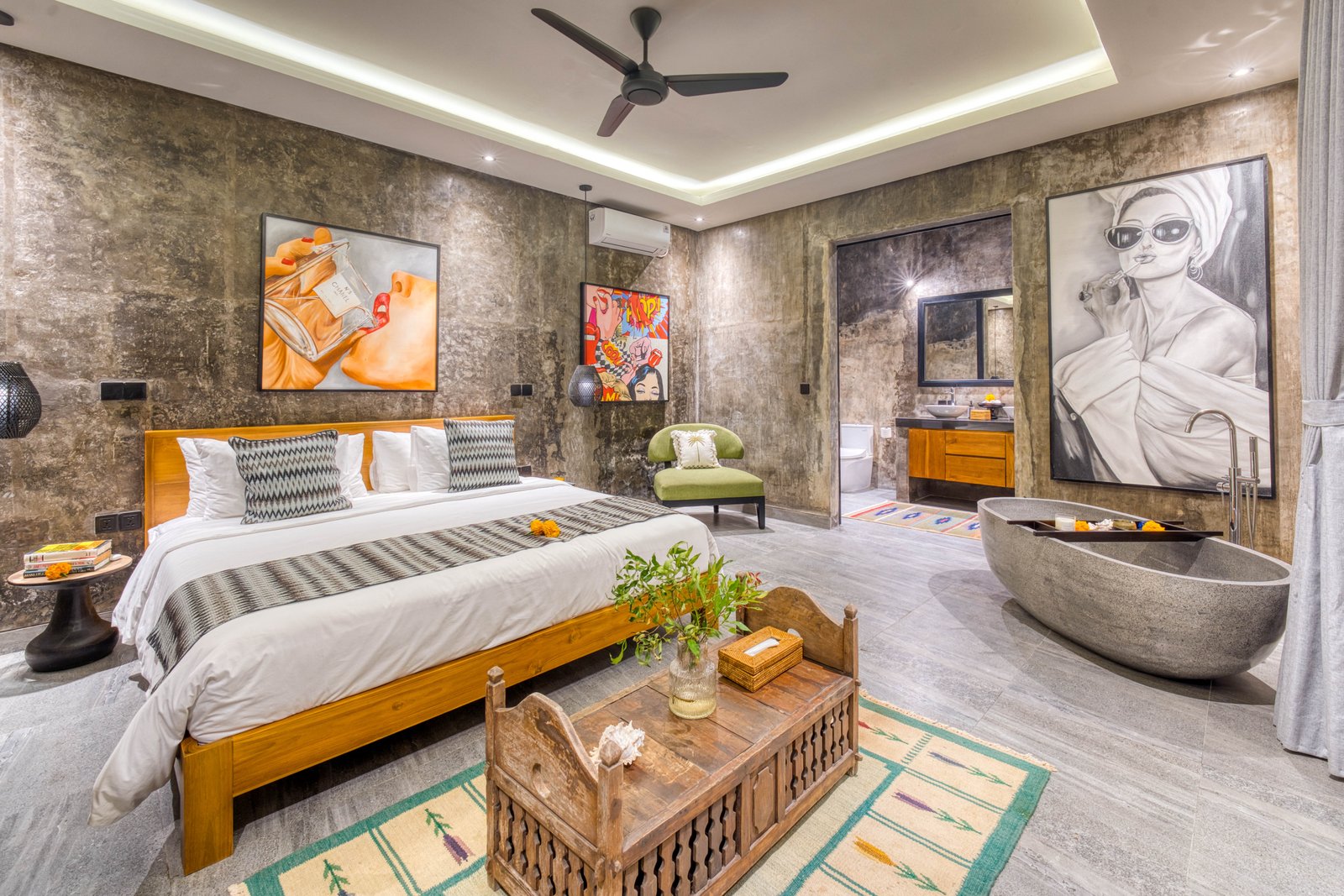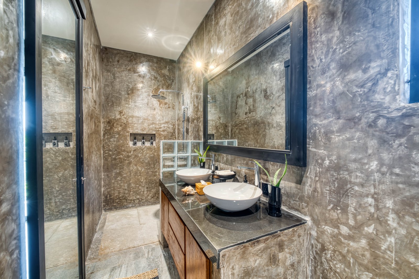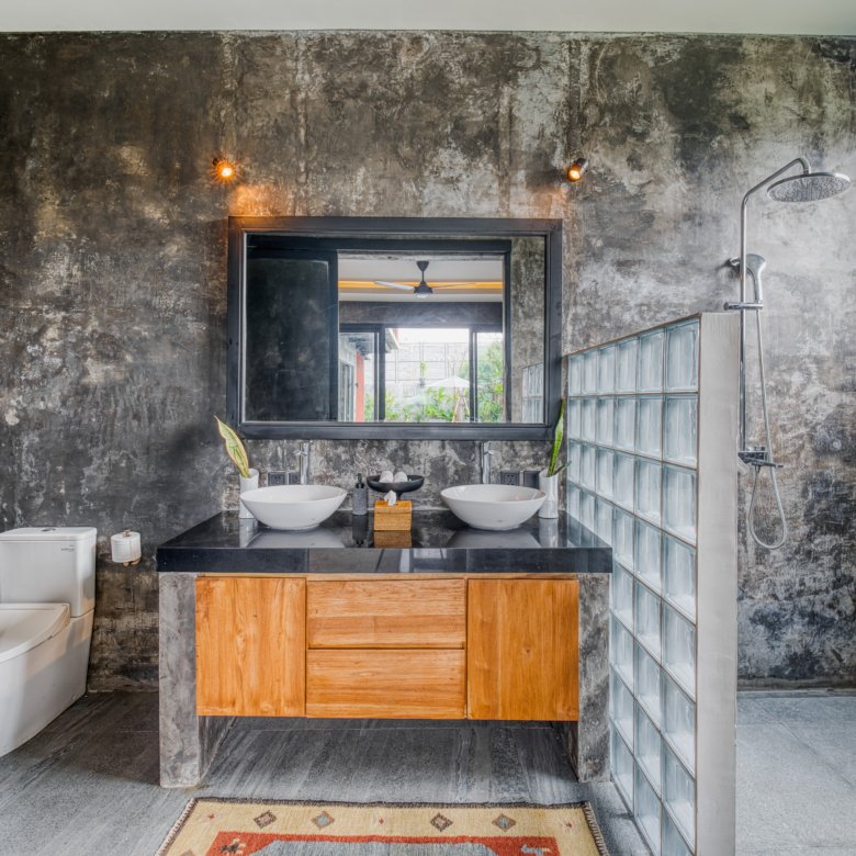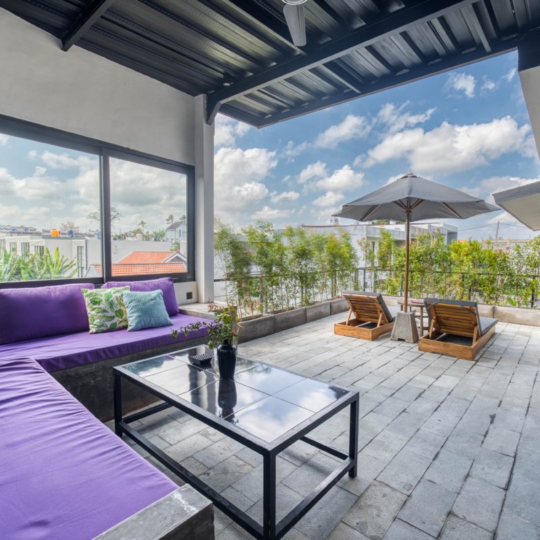 Modern industrial-tropical style, fully-furnished 5 bedroom luxury villa in the heart of Berawa, 5mins from the beach Very quiet area of Berawa, surrounded by rice fields, in walking distance to restaurants, beach clubs, yoga studios and gyms in close proximity to international schools, padel and tennis courts.