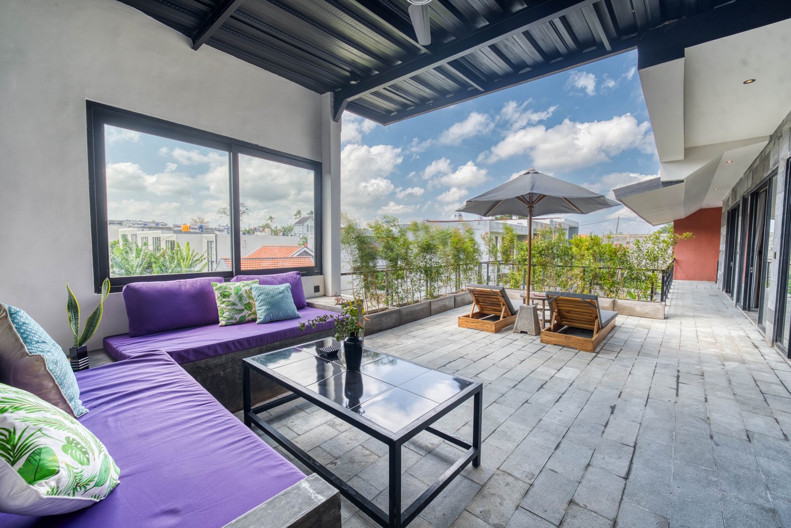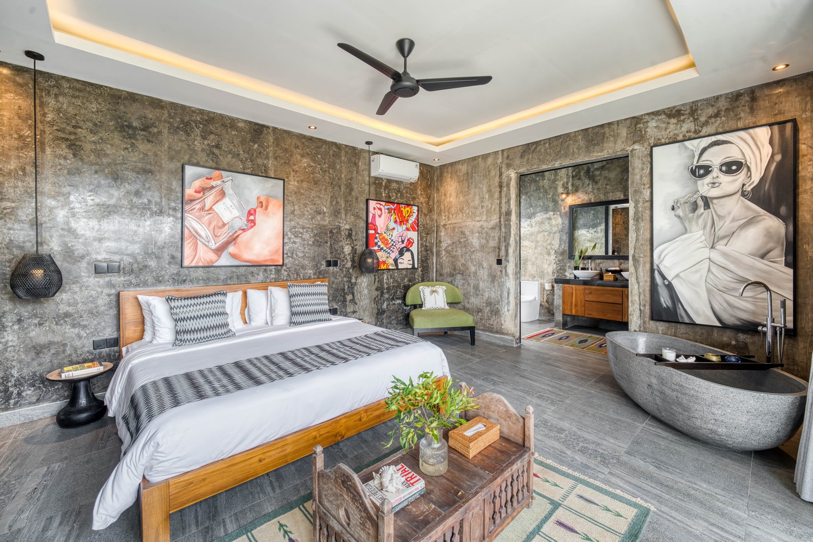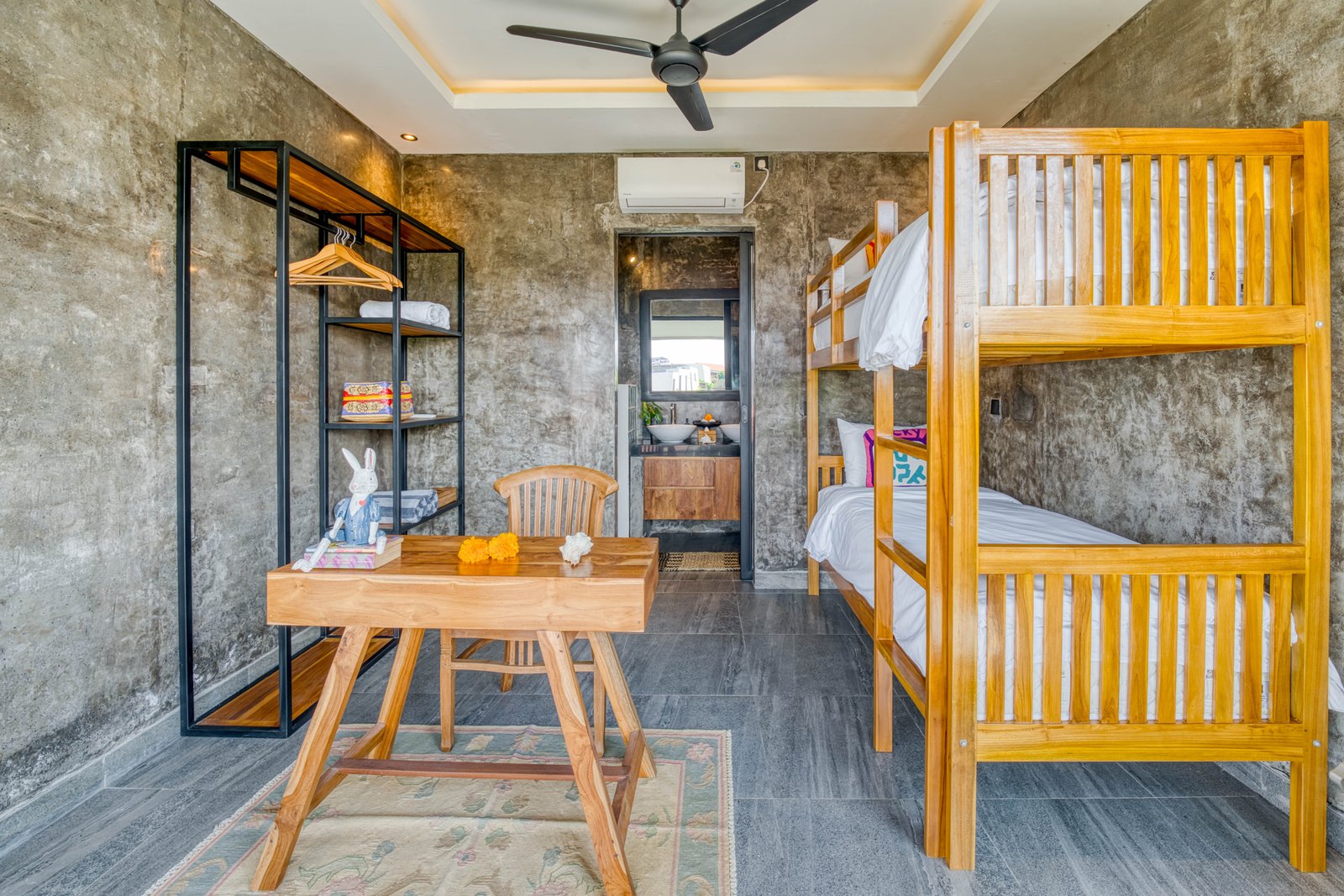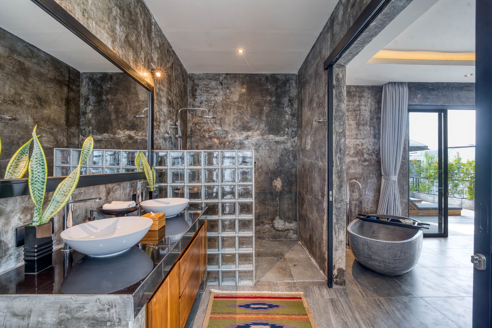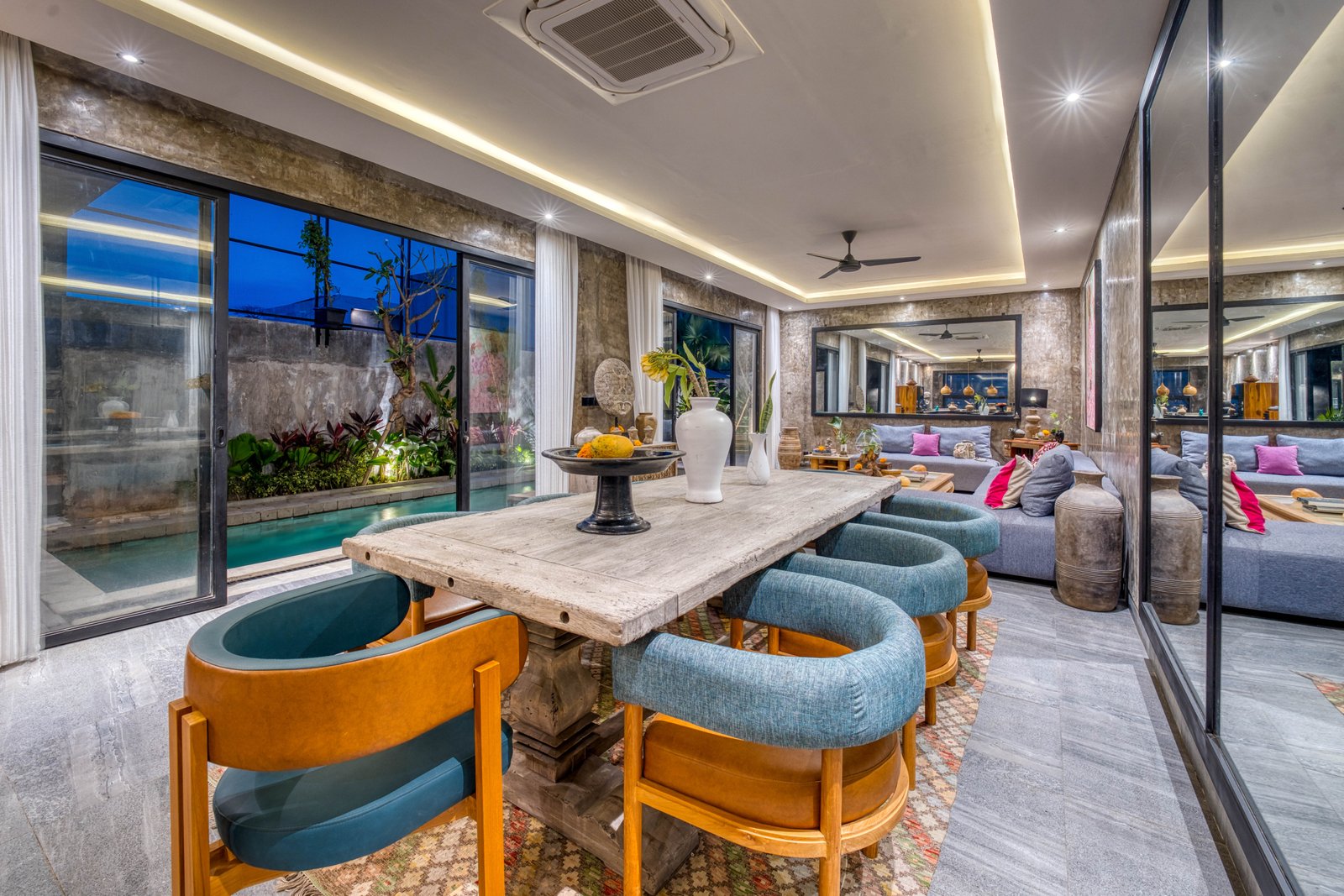 Modern industrial-tropical style, fully-furnished 5 bedroom luxury villa in the heart of Berawa, 5mins from the beach Very quiet area of Berawa, surrounded by rice fields, in walking distance to restaurants, beach clubs, yoga studios and gyms in close proximity to international schools, padel and tennis courts.