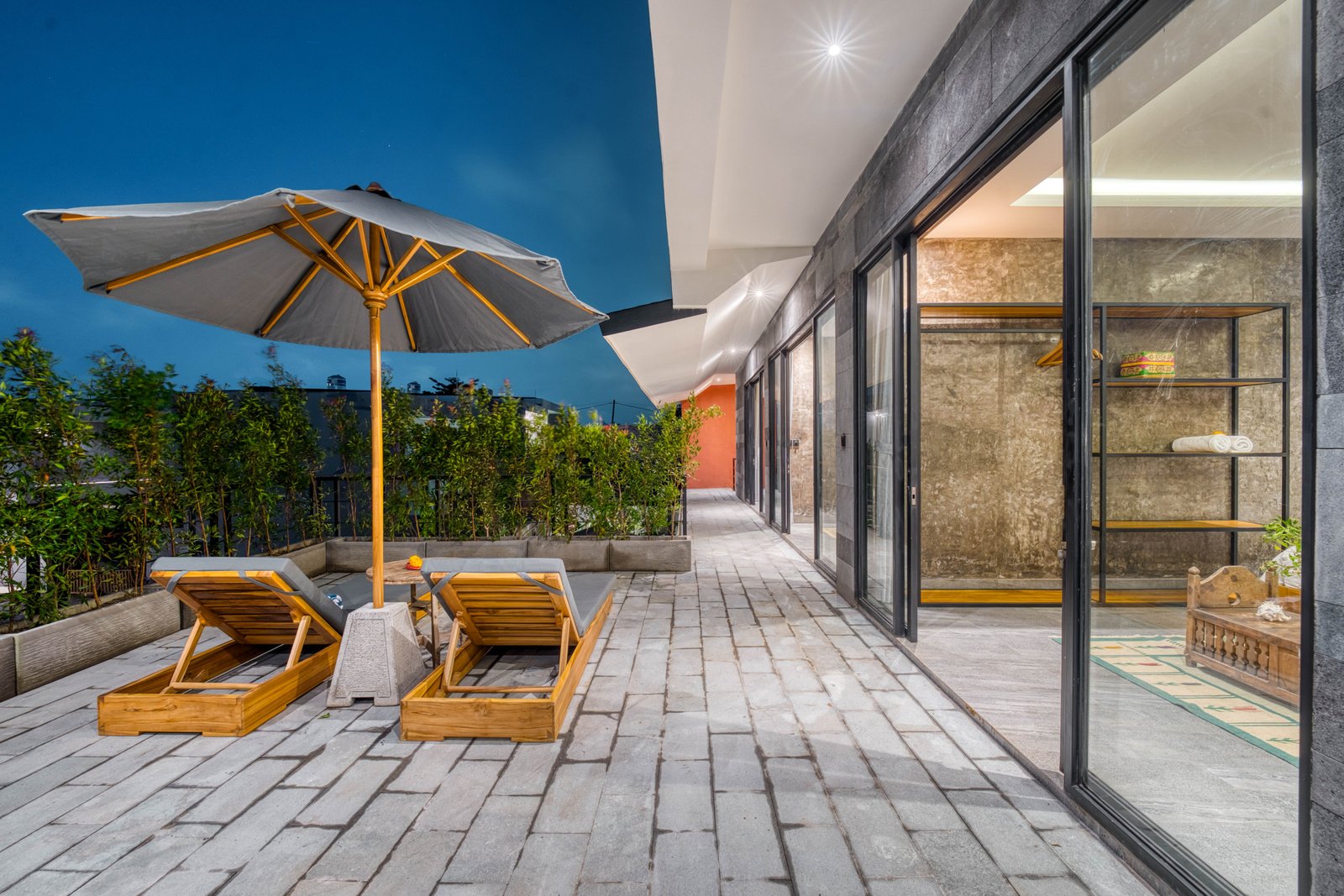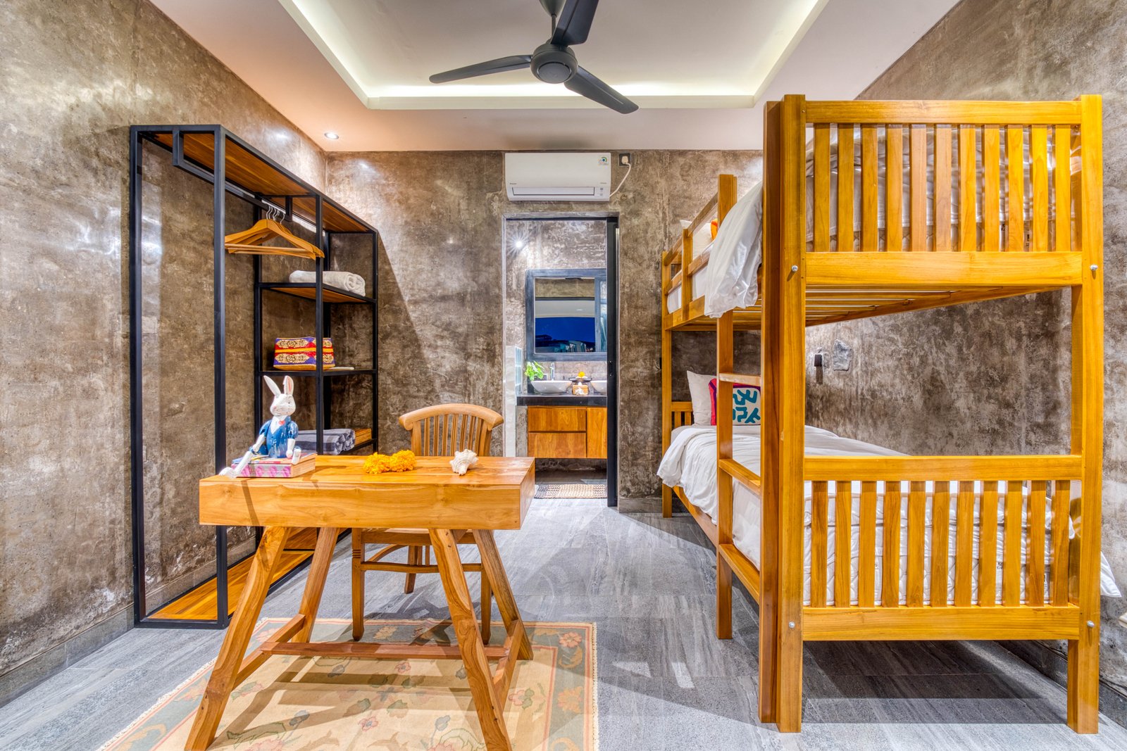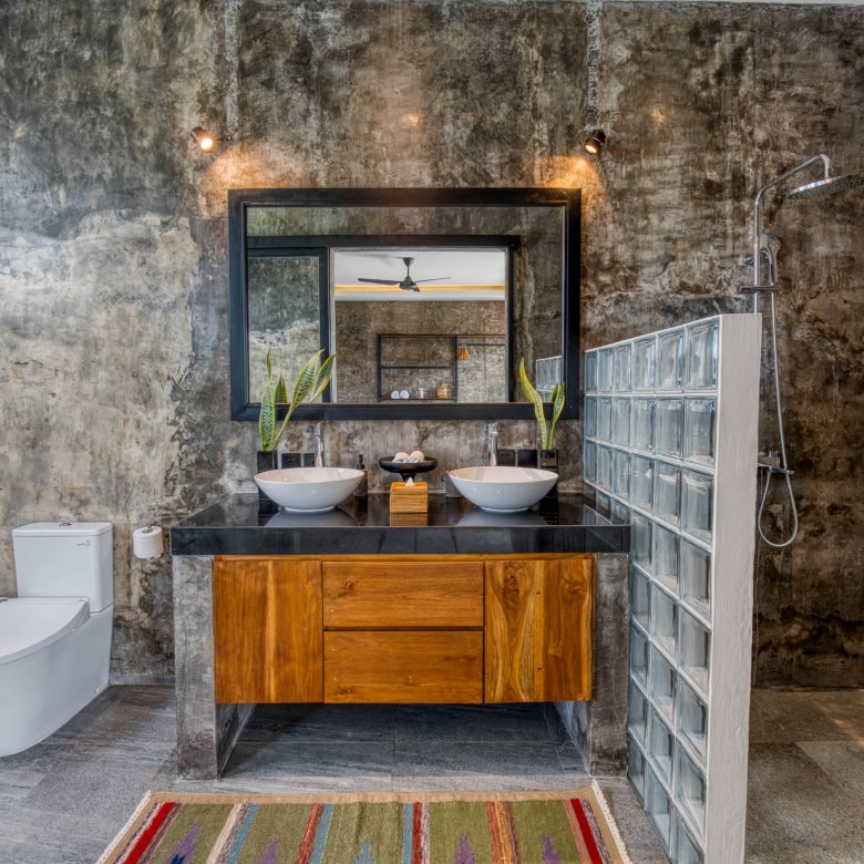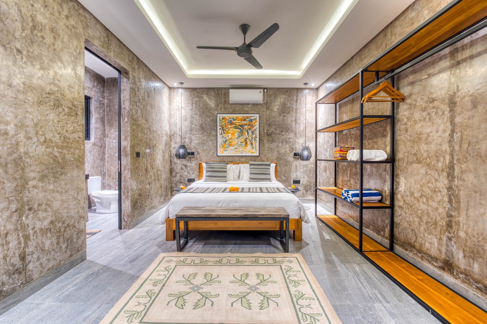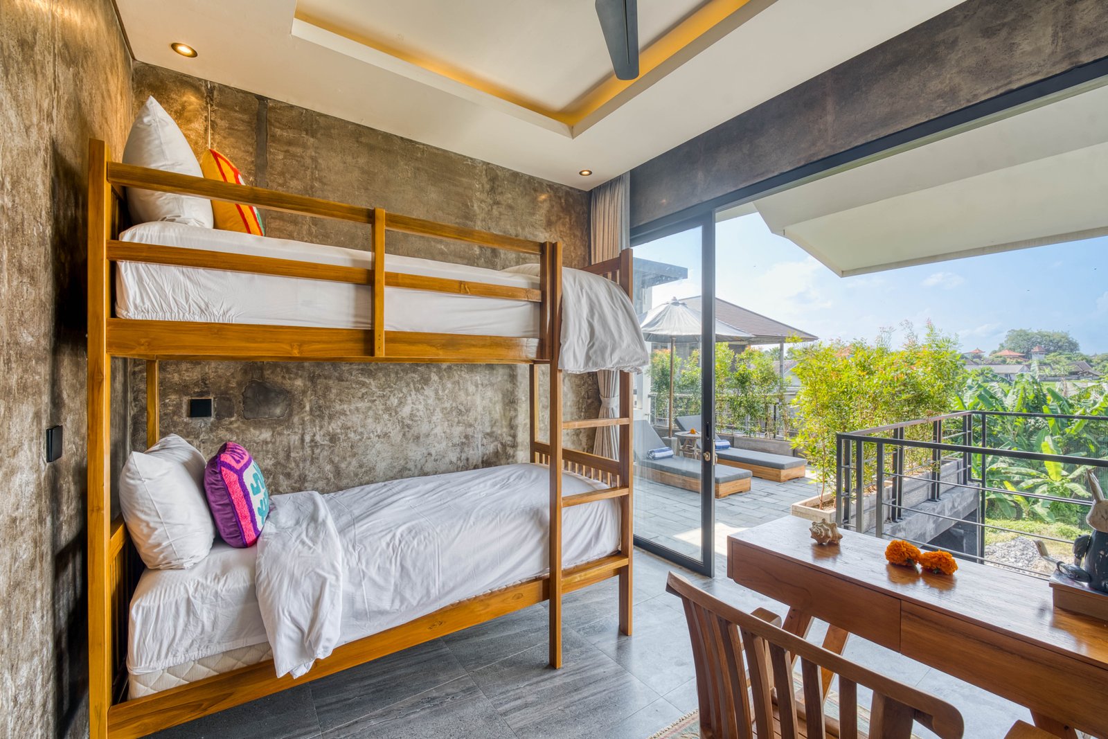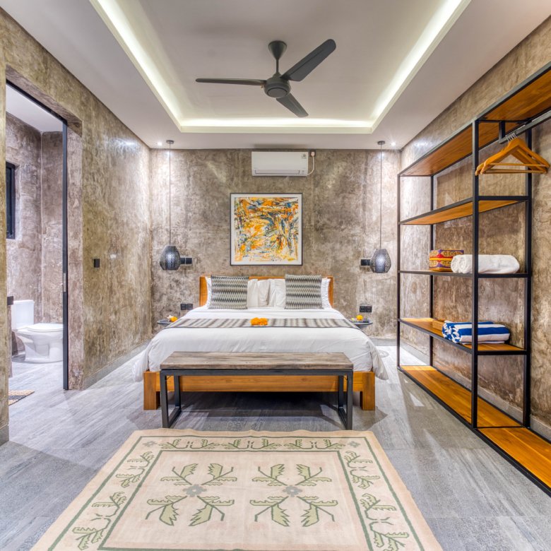 Modern industrial-tropical style, fully-furnished 5 bedroom luxury villa in the heart of Berawa, 5mins from the beach Very quiet area of Berawa, surrounded by rice fields, in walking distance to restaurants, beach clubs, yoga studios and gyms in close proximity to international schools, padel and tennis courts.