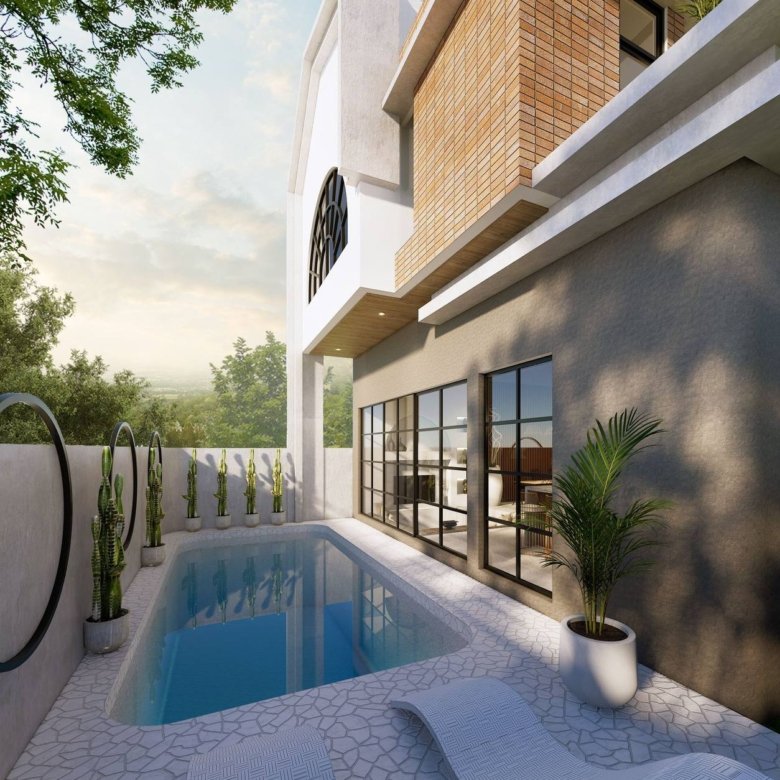 Each villa boasts a generous building size of 148 to 165 square meters, providing ample space for relaxation and entertainment. The enclosed living and dining areas are perfect for those who value privacy, while the 6 x 3 meter swimming pool and lush garden offer a peaceful retreat amidst nature. With views of rice fields and mountains, these villas are not just homes, but sanctuaries where you can reconnect with nature. The property also includes modern amenities such as 7700 kWh electricity power, drilled wells, and a dedicated parking area for both cars and bikes.