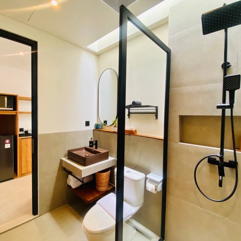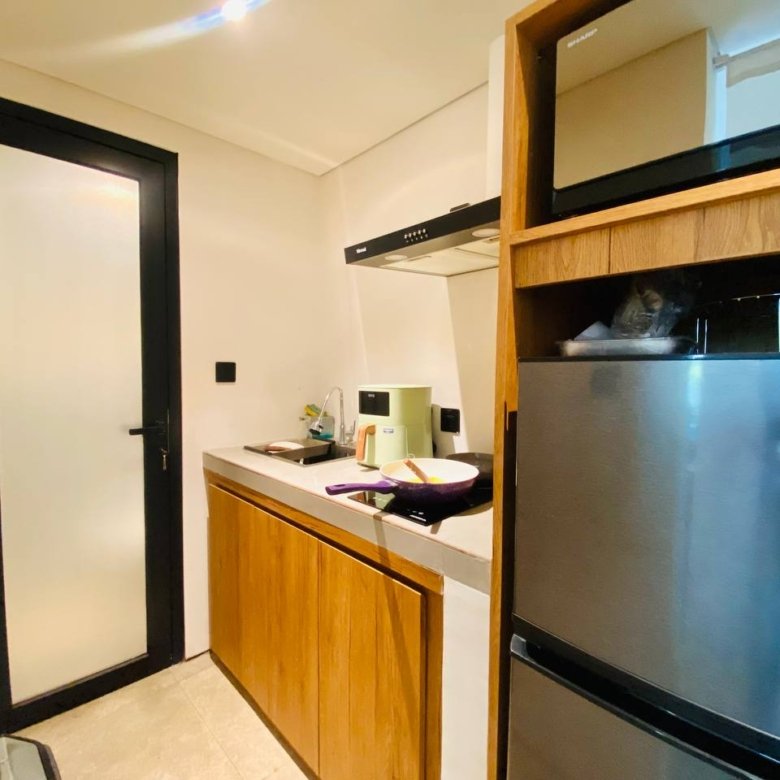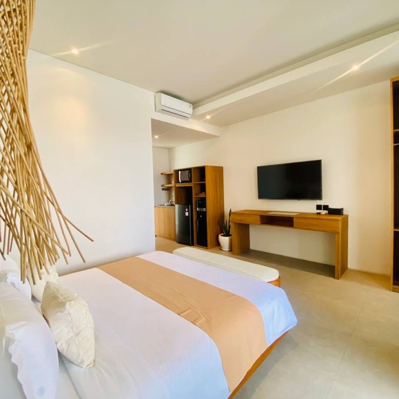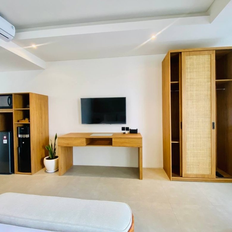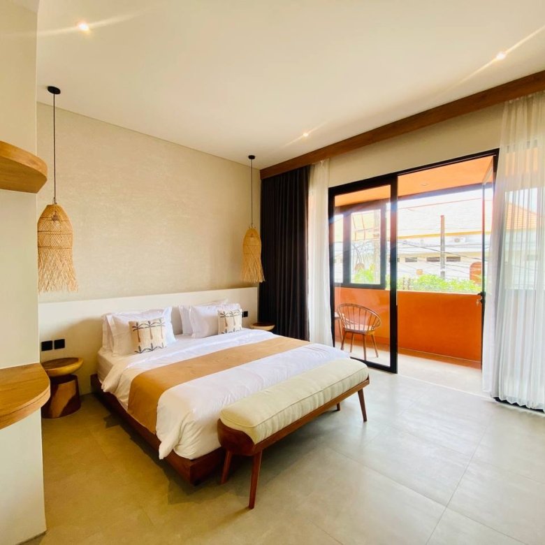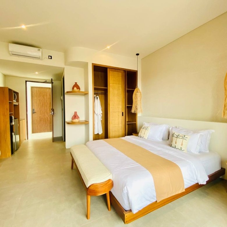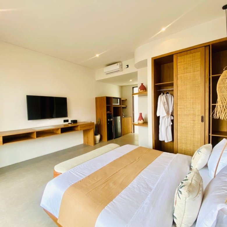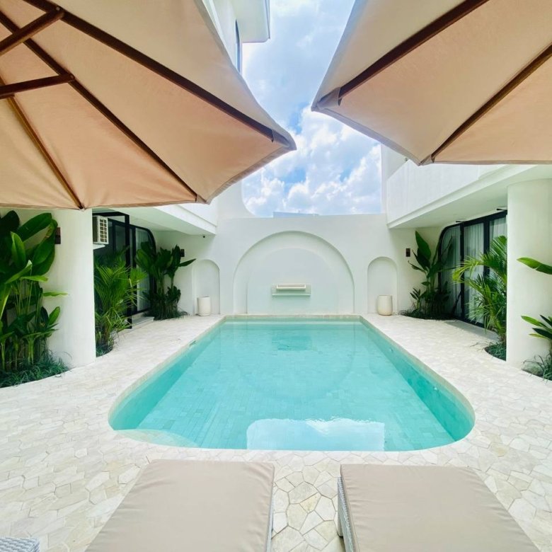 This studio apartment building, available for yearly rent, is located in the Pererenan Sempol area and is ready for immediate occupancy. It features a unique Maroccan-style design and is surrounded by popular spots like obsidian, day by day caffe, and elite fit. There are seven studio units situated on the third floor: four units offer a street view, and three units overlook the pool. Residents benefit from shared facilities including a shared washing machine on the second floor, a shared living room on the third floor, a shared pool on the ground floor, and a shared cooking area on the first floor.