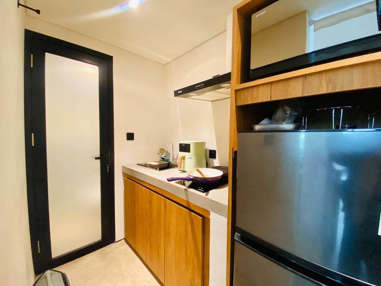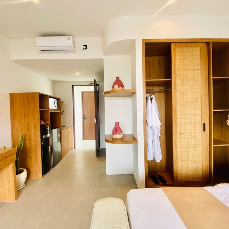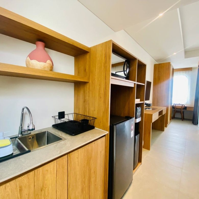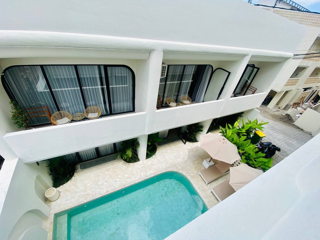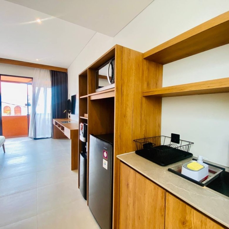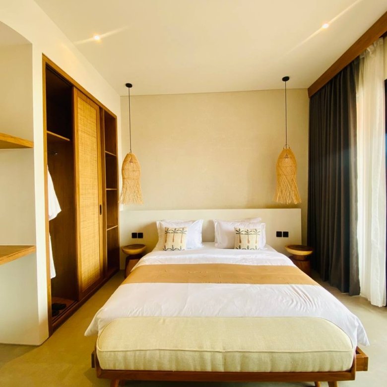 This studio apartment building, available for yearly rent, is located in the Pererenan Sempol area and is ready for immediate occupancy. It features a unique Maroccan-style design and is surrounded by popular spots like obsidian, day by day caffe, and elite fit. There are seven studio units situated on the third floor: four units offer a street view, and three units overlook the pool. Residents benefit from shared facilities including a shared washing machine on the second floor, a shared living room on the third floor, a shared pool on the ground floor, and a shared cooking area on the first floor.