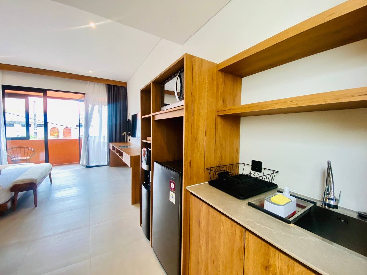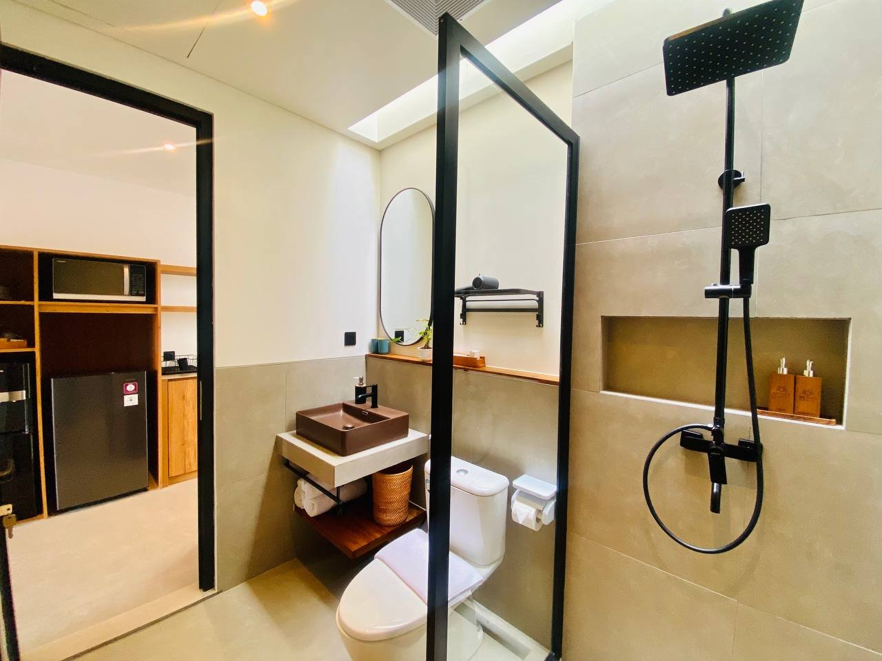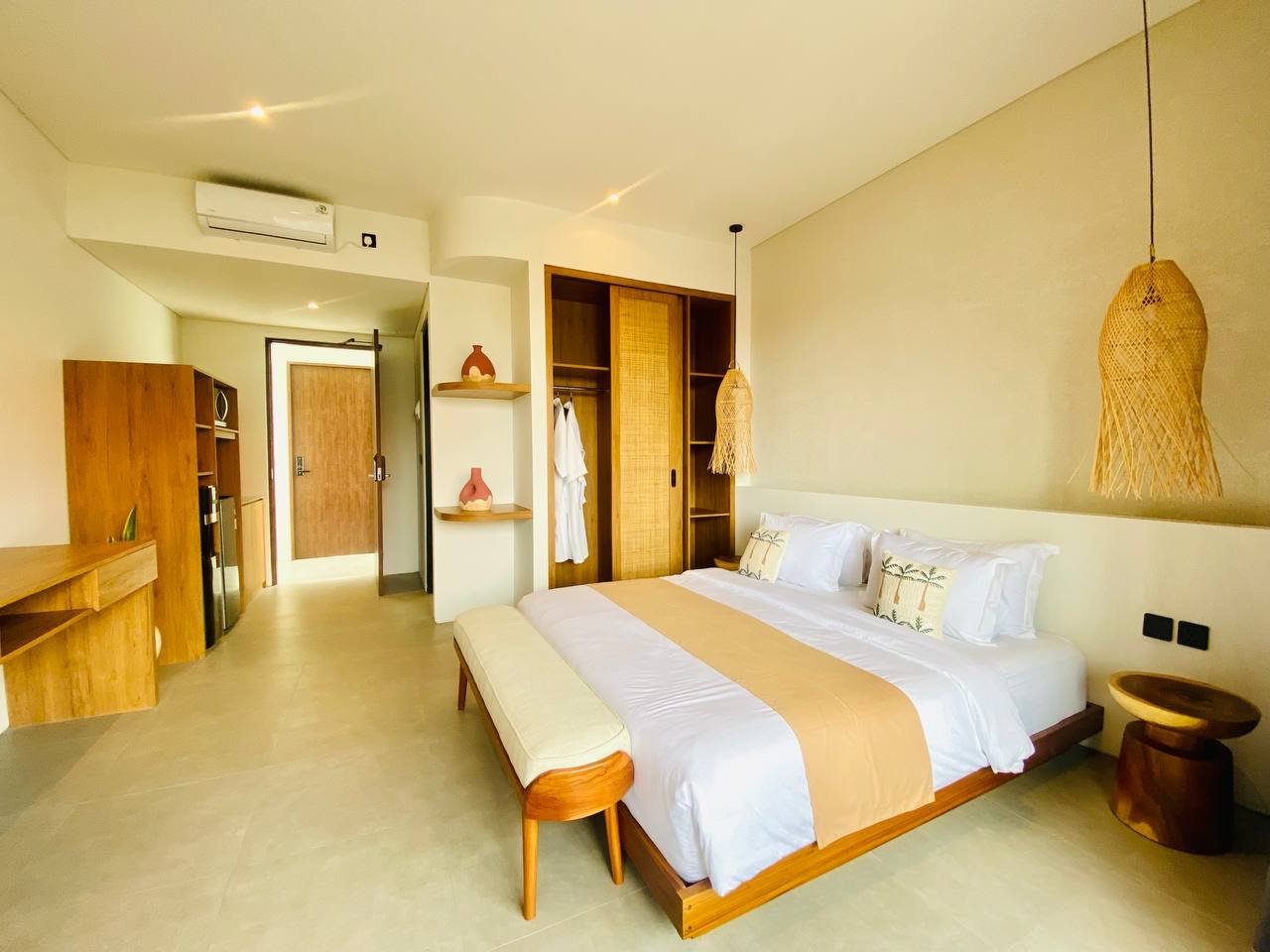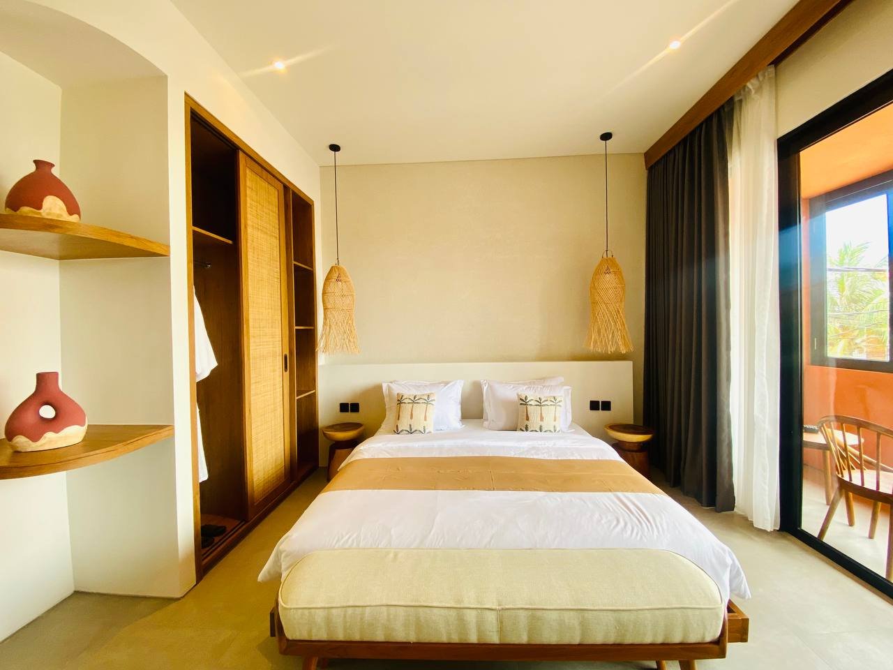 This studio apartment building, available for yearly rent, is located in the Pererenan Sempol area and is ready for immediate occupancy. It features a unique Maroccan-style design and is surrounded by popular spots like obsidian, day by day caffe, and elite fit. There are seven studio units situated on the third floor: four units offer a street view, and three units overlook the pool. Residents benefit from shared facilities including a shared washing machine on the second floor, a shared living room on the third floor, a shared pool on the ground floor, and a shared cooking area on the first floor.