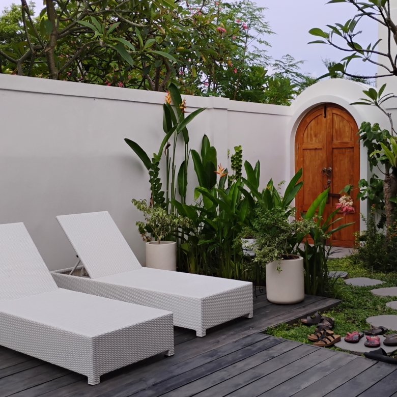- Private Pool (3 X 7m): Surrounded by a small, lush garden.