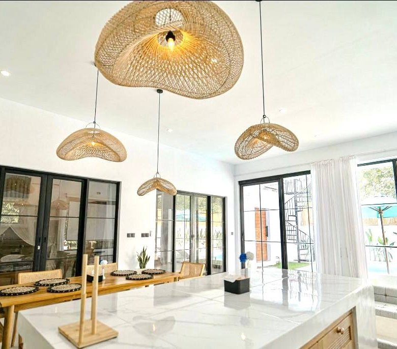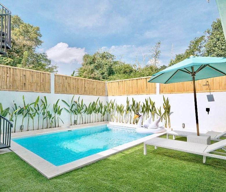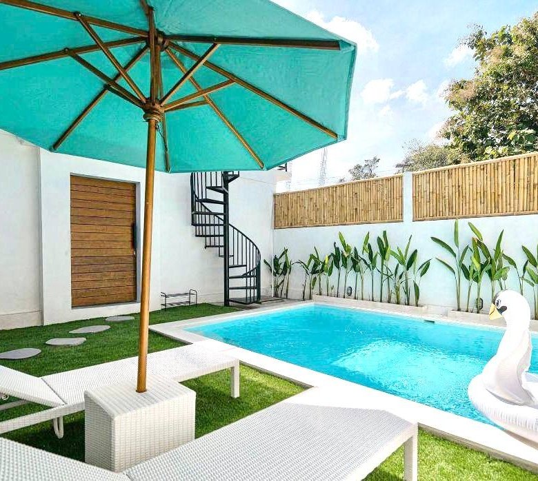 The property spans 250 square meters of land and 220 square meters of building space, featuring three spacious bedrooms, each equipped with air conditioning. The enclosed living and dining areas provide a comfortable and luxurious atmosphere, perfect for both relaxation and entertaining. The villa also includes an additional storage room and a private swimming pool measuring 3 x 5.5 meters. The villa is fully furnished, ensuring that you can move in and enjoy the comfort and convenience immediately. With a parking area suitable for both cars and bikes, the property is designed to meet all your needs. The electricity is powered at 5500 KWH, and the water source is a drilled well, providing reliable utilities for your stay.