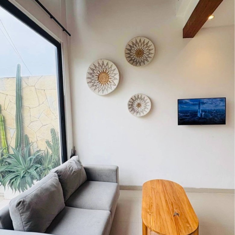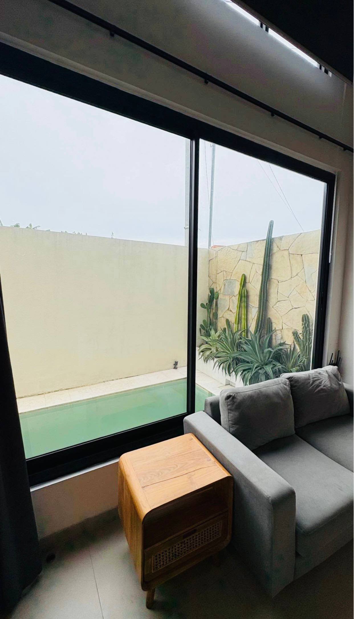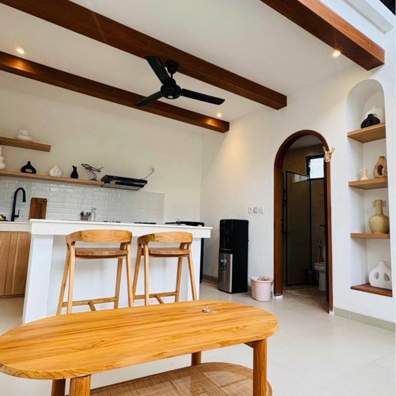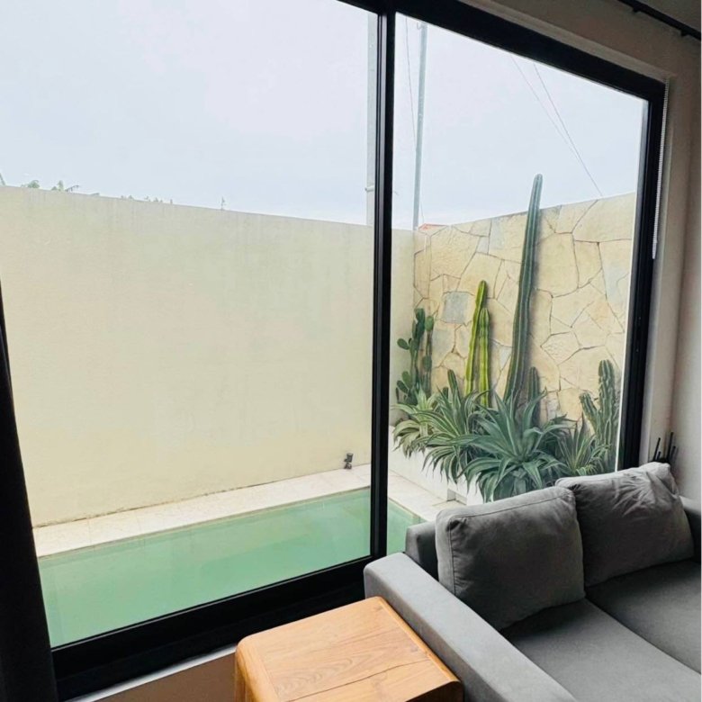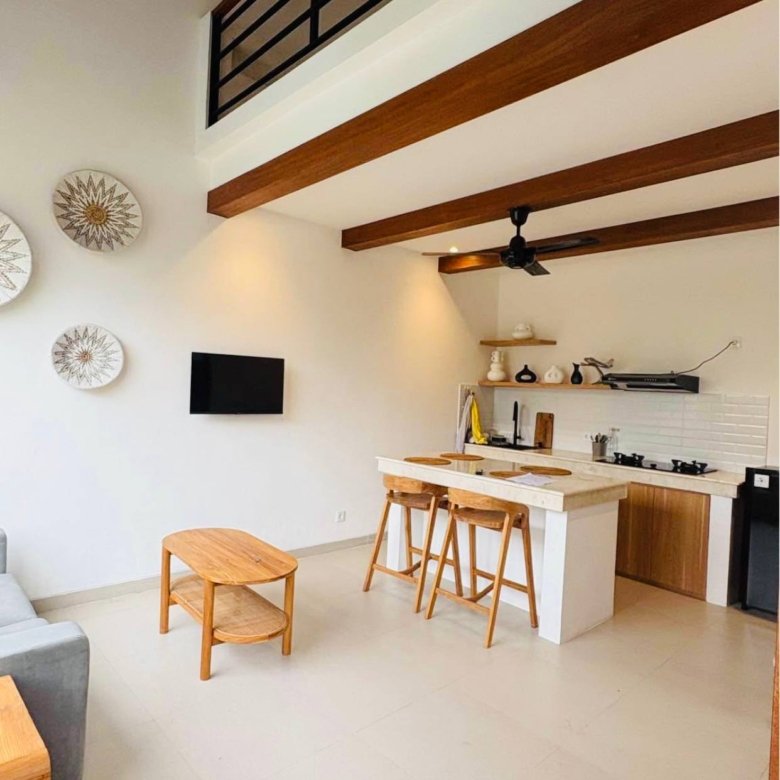 This stunning mezzanine-style villa in the heart of Kerobokan, Umalas, is now ready for monthly or yearly rental, offering a perfect blend of modern design and comfort. The property features a unique architectural layout overlooking a refreshing private pool, creating a serene atmosphere for your stay. Strategically located within walking distance of trendy cafes and restaurants, the villa also offers excellent accessibility, placing you just a quick ten-minute bike ride away from the vibrant energy of Berawa Beach.