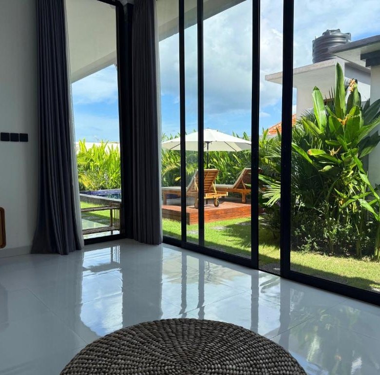 This modern villa in Canggu Padang Linjong is ready now for yearly rent. The area is surrounded by many cafes and restaurants, with Padang Linjong Beach just 5 minutes away, and is also close to Batu Bolong.