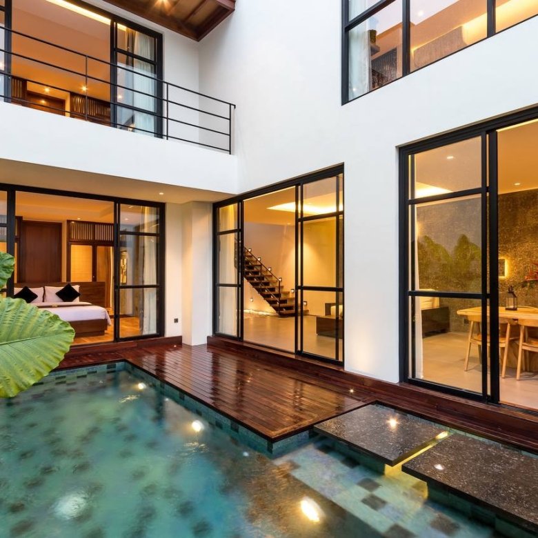 This luxurious modern Mediterranean-style villa is available for both monthly and yearly rent, ideally located in the heart of Berawa, Canggu. Just minutes from Atlas Beach Club, Finns Beach Club, Berawa Beach, and Montessori School Bali, this villa offers the perfect blend of luxury and convenience.