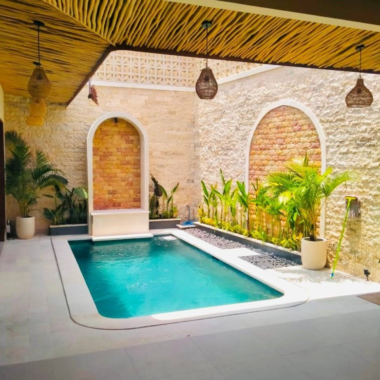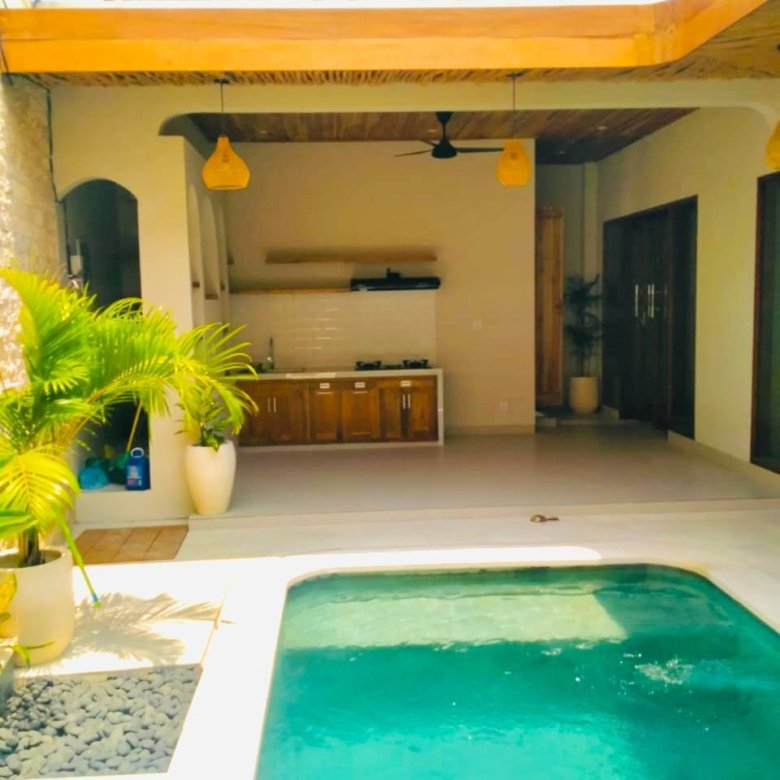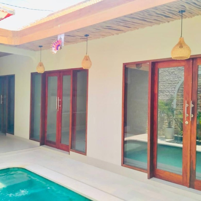 The villa features 3 spacious bedrooms, each equipped with its own bathroom and air conditioning unit to ensure comfort. The living and dining areas are designed with an open layout, creating a seamless flow throughout the home. Though the villa comes unfurnished, it includes essential amenities such as three AC units, a stove, a fan, and a water heater, allowing you to tailor the space to your personal taste. An additional storage room provides extra space for your belongings, while the 2.5 x 5-meter swimming pool offers a refreshing escape during Bali’s warm days. Convenience is a key feature of this property, with parking available for a bike and additional car parking in the owner’s garage at the front of the villa