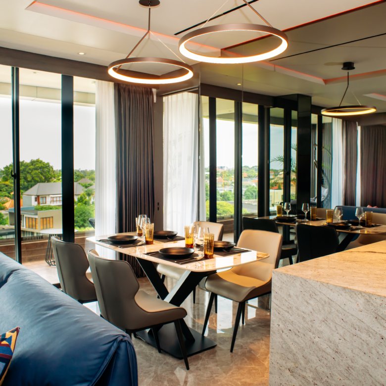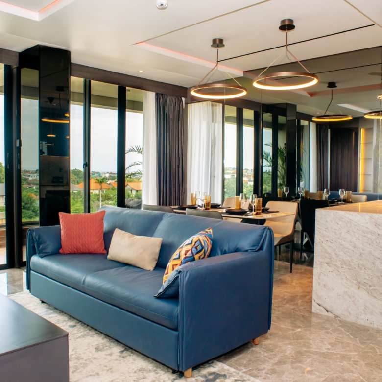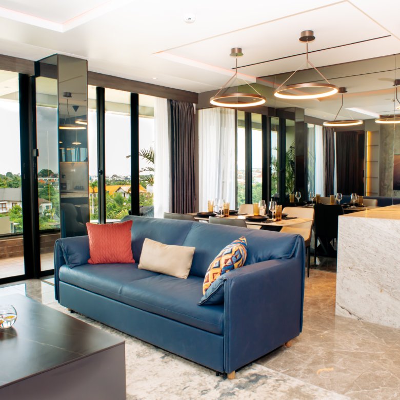 This luxury apartment complex in Umalas, Kerobokan, offers a range of fully furnished units, including 1-bedroom (48 sqm), 2-bedroom (96 sqm), and exclusive 4-bedroom penthouses. Located near top destinations such as Canggu Beach, Seminyak Beach, Finns Beach Club, Atlas Beach Club, and La Brisa Beach Club, the apartment is perfectly situated for enjoying Bali’s vibrant beach scene and nightlife.
