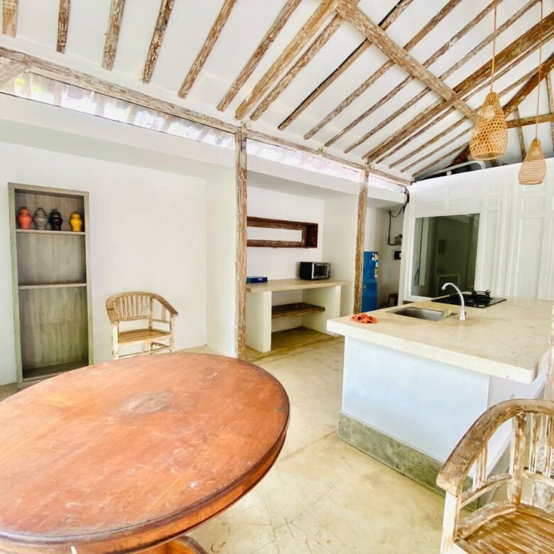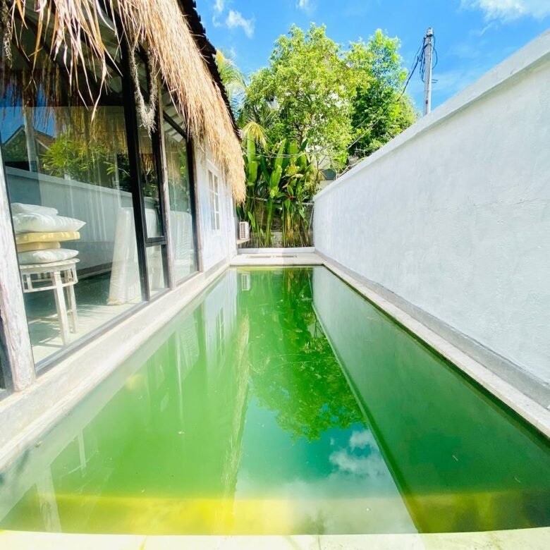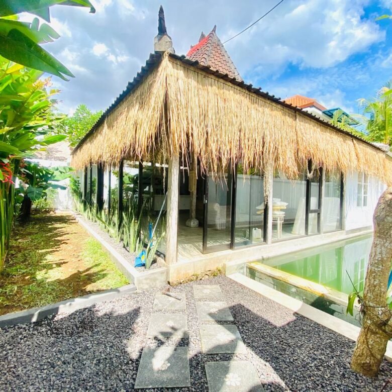 The villa is furnished with authentic pieces as seen in the photos and videos, creating an ambiance that reflects Bali’s rich cultural heritage. The living and dining areas are enclosed for privacy and comfort, while the villa’s design allows for seamless indoor-outdoor living. Enjoy serene views of the pool from the villa, which measures a refreshing 2.7 x 7 meters.