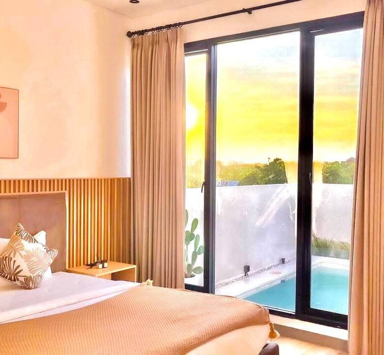 The villa comprises 1 bedroom and 1 bathroom, fully furnished to elevate your living experience. The living and dining areas are enclosed, providing privacy and a cozy atmosphere. Enjoy breathtaking views of the pool and stunning sunsets from the comfort of your home.