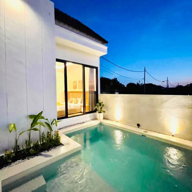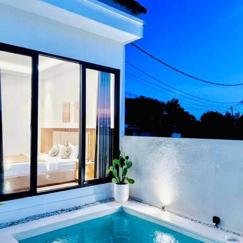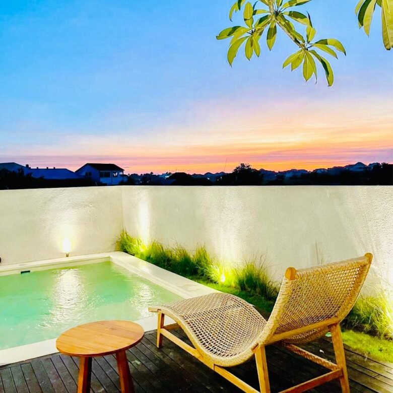 Essential amenities include 7500 electricity units, water sourced from drilled wells, and provisions for internet and TV connections. Located in vibrant Berawa, this villa offers proximity to popular destinations such as Berawa Beach (5 min), Finn’s Beach Club (5 min), Atlas Beach Club (5 min), Revolver Canggu (10 min), Nirvana (5 min), and Siloam Hospital (3 min).