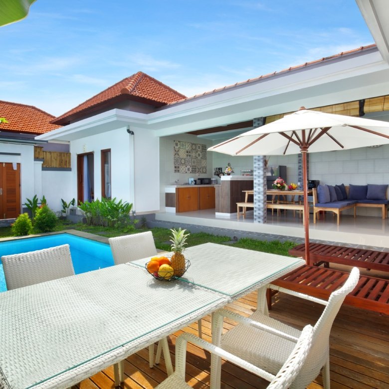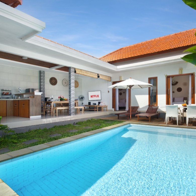 Located in the vibrant area of Umalas, the villa sits on a 250 sqm plot with approximately 150 sqm of living space, making it ideal for families or professionals seeking a tranquil retreat with easy access to Bali’s bustling hotspots. Enjoy close proximity to renowned destinations like ShiShi, The Forge, Mexicola, Kudeta, and Batu Bolong Beach, all within walking or short driving distance. Please note that the property offers motorcycle parking only.