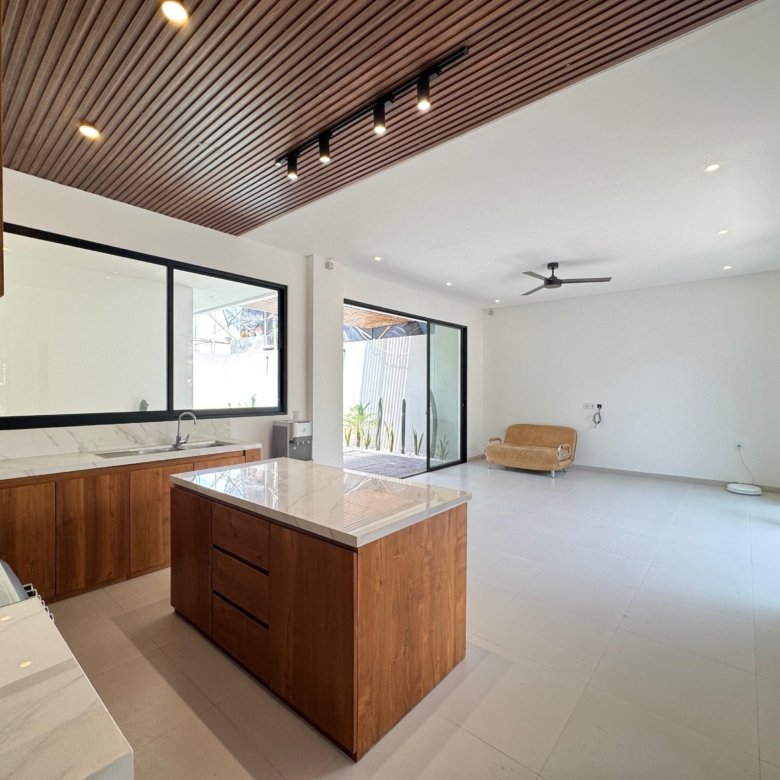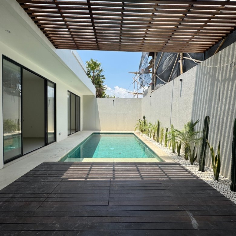 This brand new 3-bedroom villa is fully furnished, designed in a modern minimalist style, is now available for yearly rent. It features a spacious enclosed living room and kitchen area. Located in the highly sought-after heart of Pererenan, it offers convenient access for a lovely family stay. The villa is approximately 1.3 km from Pererenan Beach, which is just a 2-minute bike ride away. It’s also within walking distance to several famous restaurants and cafes in Pererenan, such as Thierry Pererenan Canggu, Gimme More Restaurant, Touche Cafe, and Bastardo Bali Restaurant. The villa includes a 3 x 6 meter swimming pool with a guest toilet, and it is pet-friendly.
