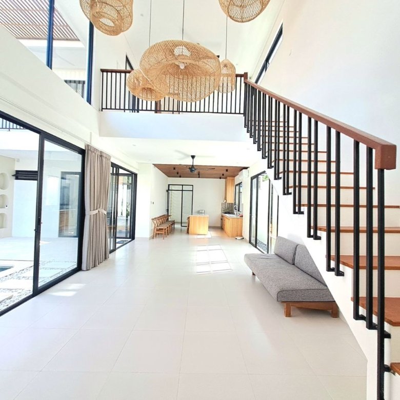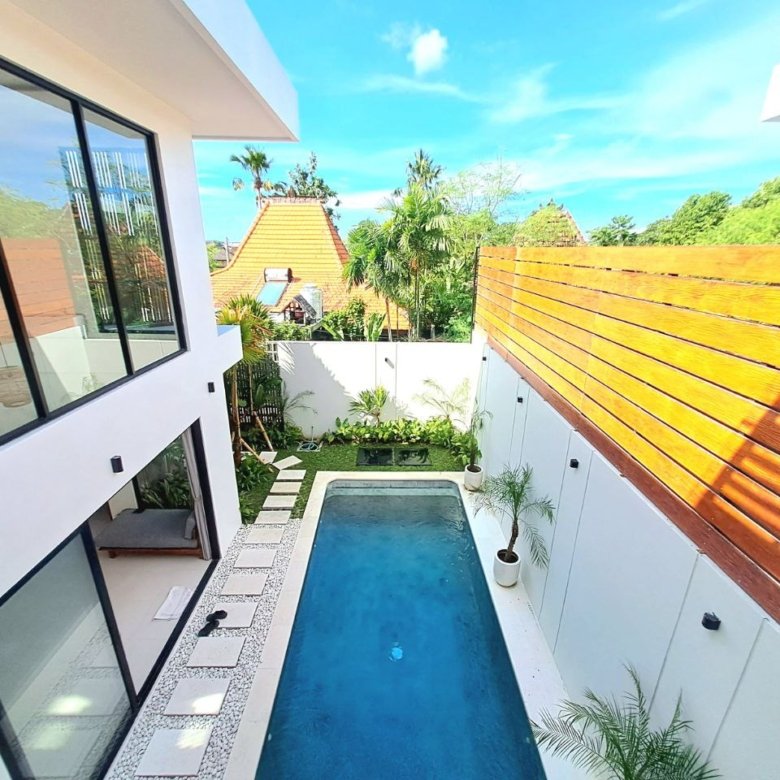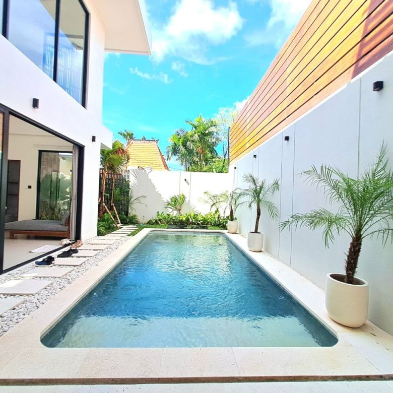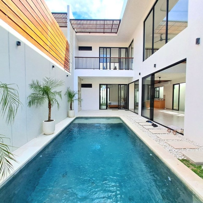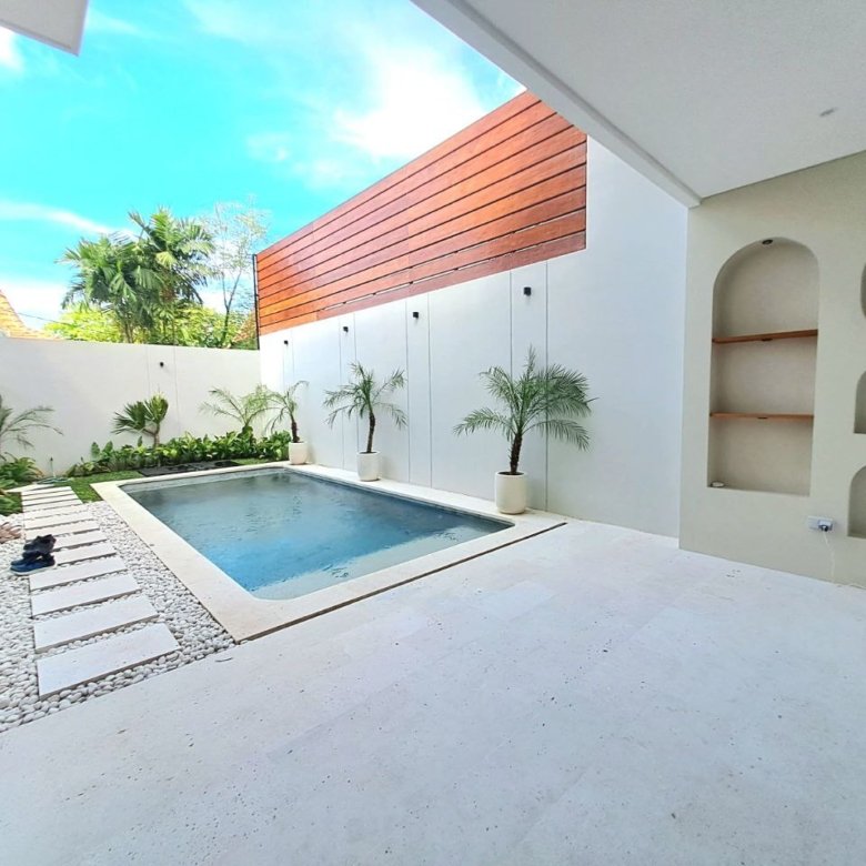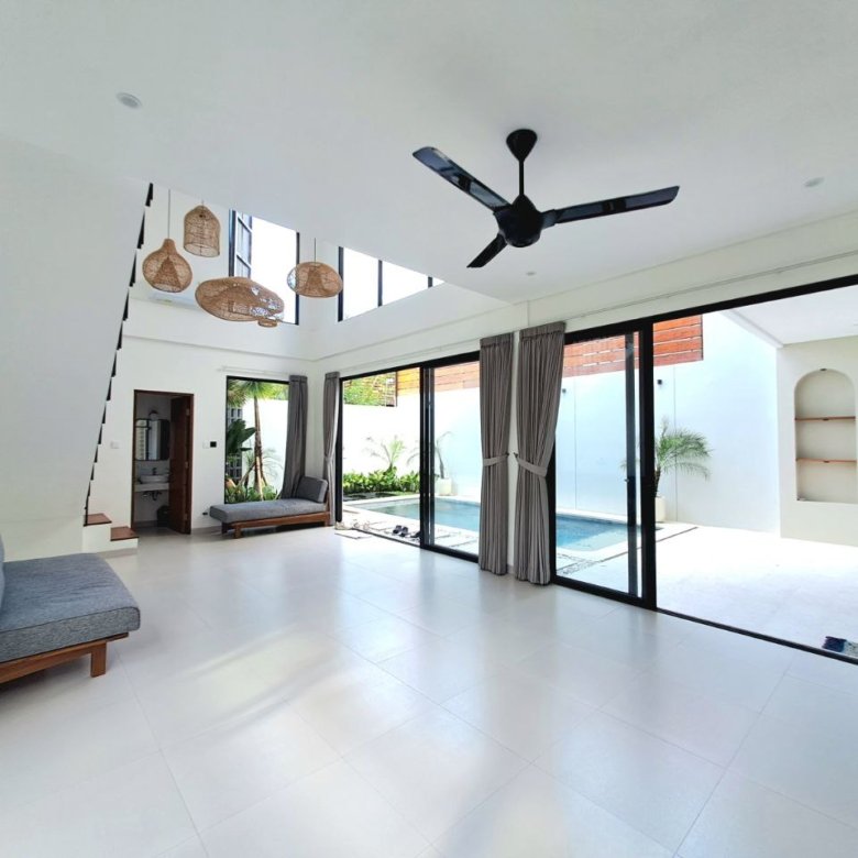 This brand-new three-bedroom villa, furnished and designed in a modern minimalist style, is now available for yearly rental. It features a spacious enclosed living room and kitchen area. Situated in the highly sought-after heart of Pererenan, this property offers convenient access for a delightful family stay. The villa is approximately 1.3 kilometers from Pererenan Beach, which is just a 2-minute bike ride away. It is also within walking distance to several renowned restaurants and cafes in Pererenan, such as Thierry Pererenan Canggu, Gimme More Restaurant, Touche Cafe, and Bastardo Bali Restaurant. The villa includes a 3×6 meter swimming pool with a guest toilet and is pet-friendly.